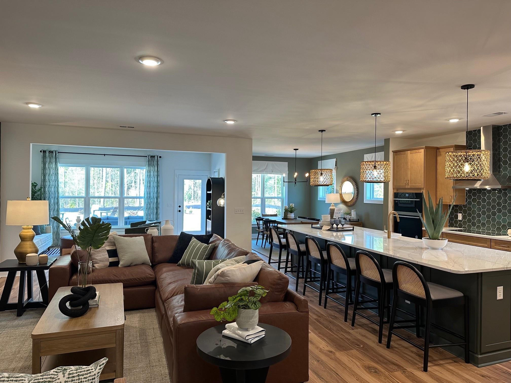 Welcome to the Sterling, a thoughtfully designed 1 level home in the heart of old Murrells Inlet. This versatile plan includes 3 bedrooms, 3 bathrooms, a private study with French doors on the main level, and a golf cart garage for added convenience. The true centerpiece of this home is the open-concept kitchen, great room, and dining area that wraps around a show-stopping 13-foot kitchen island. Abundant counter space and a walk-in pantry create a layout built for entertaining; this kitchen is as functional as it is impressive. Bedroom 3 is tucked away from the main living areas and includes its own private full bath. The spacious primary suite offers a huge walk-in closet and a spa-inspired en-suite, with a 5-foot walk-in tile shower with glass enclosure, dry-off seat, Moen rain and wall shower heads. This personalized Sterling boasts a Carolina room in lieu which increases the living space and adds a charming view of the wooded backyard. The upgraded Gourmet kitchen includes Level 4 Quartz countertops in Calacatta Royale, a Kohler white cast iron apron sink, Whirlpool wall oven/wall microwave, exhaust hood, under cabinet lights, soft close cabinet doors and drawers, wooden pantry shelves, a glass pantry door, a KitchenAid Induction cooktop, and the huge faux cabinet-wrapped kitchen island. Step outside to enjoy the natural beauty of this wooded .46-acre homesite, perfect for relaxing evenings or entertaining guests. Additional features include Level 3 Mowhawk REV Wood flooring throughout, upgraded 18x18 Daltile tile in all baths and the laundry room, upgraded Moen Plumbing fixtures throughout, a designer trim package, a Tray ceiling in the primary bedroom, upgraded Progress Lighting fixtures, faux wood window blinds, black Bellifield Moen bath plumbing fixtures, and a lawn irrigation system. Located in the sought-after Northbrook community, this home offers quiet solitude away from the hustle and bustle with easy access to Brookgreen Gardens, Huntington Beach State Park, minutes to 2 public boat launches, and 1 mile to the Murrells Inlet waterfront, combining convenience with comfort. As America’s number one energy-efficient homebuilder, we’re proud that in 2024 our homes achieved an average net HERS® score of 37 (with solar) and a gross score of 42—the lowest publicly reported among the top 30 U.S. homebuilders in Builder Magazine’s Top 100 list (ranked by 2024 closings). DISCLOSURE: Photos are of the Sterling Model Home. Anticipated completion date June-July