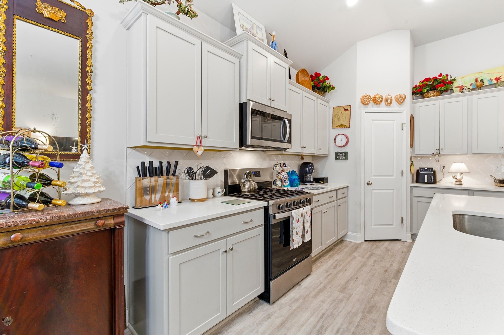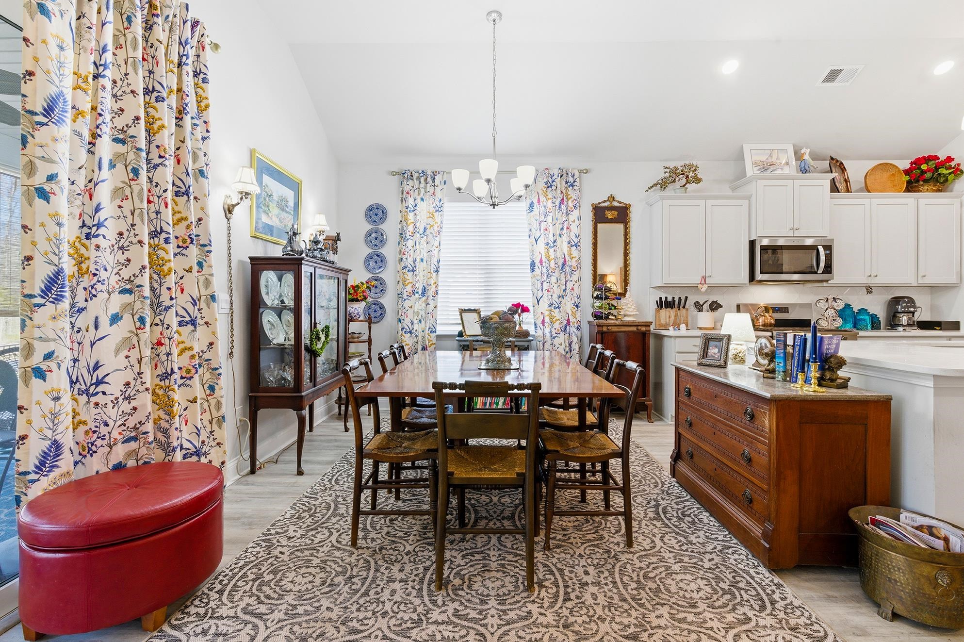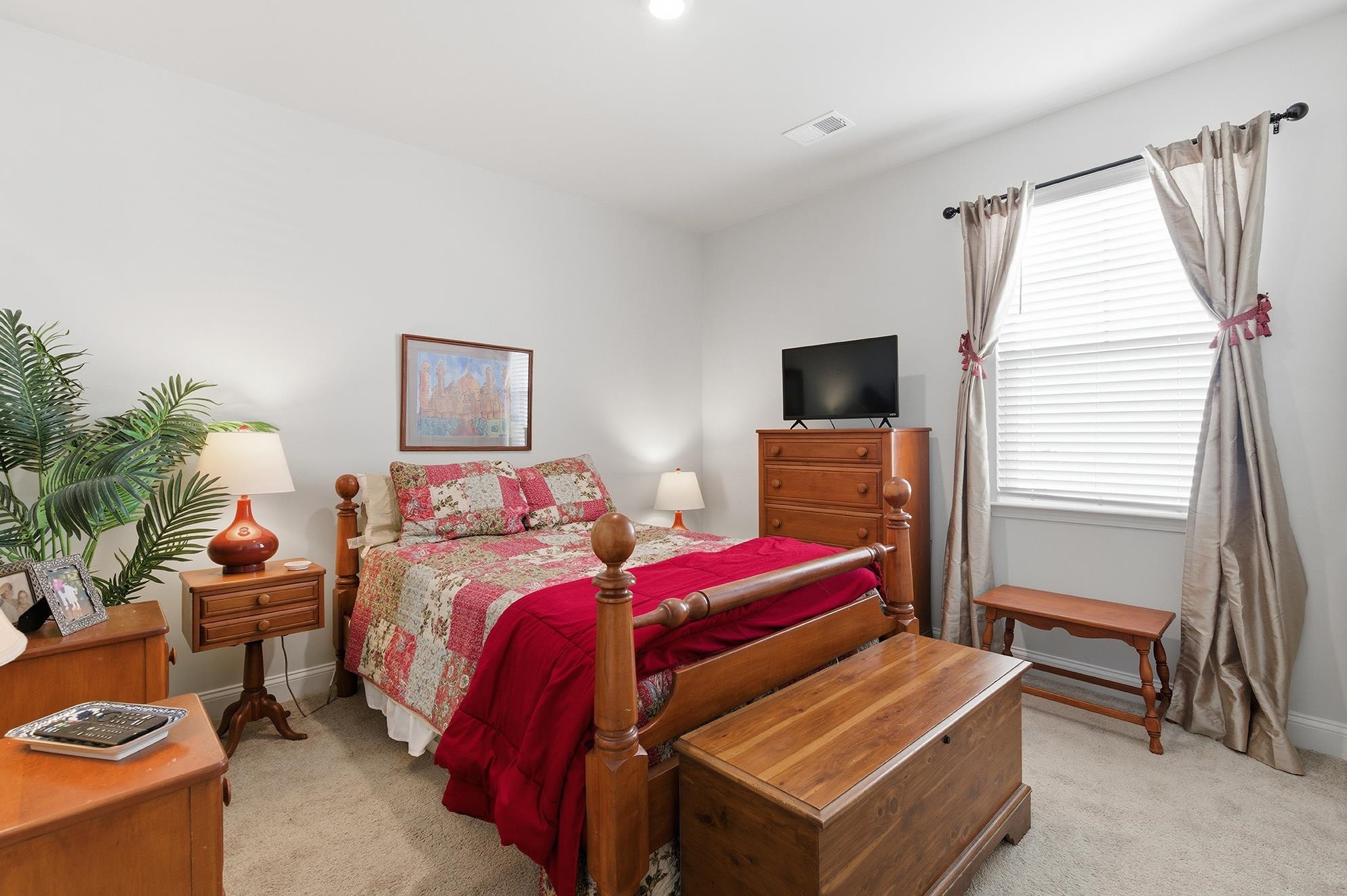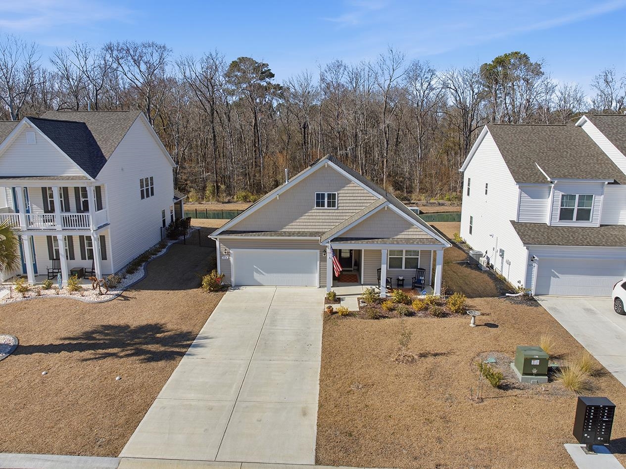 Welcome home to a charming rocking chair front porch that warmly greets your guests and sets the tone for relaxed Southern living. Step inside to a spacious foyer that flows seamlessly into the open-concept main living area. Just off the entry, you’ll find a convenient mudroom and utility room with direct access to the oversized garage. The heart of the home features a bright and airy great room with expansive sliding glass doors that extend your living space onto a large, screened porch — truly making outdoor living part of your everyday lifestyle. The porch includes two tropical ceiling fans, perfect for enjoying Coastal Carolina breezes year-round. The kitchen is designed for both everyday living and entertaining, offering: Stainless steel appliances Gas range and oven Built-in microwave Deep stainless-steel sink with garbage disposal Expansive counter space Oversized island with eat-in bar seating Walk-in pantry Abundant cabinet storage The adjoining dining area provides a welcoming space for gatherings with family and friends. Comfort is ensured year-round with: Natural gas heating system Tankless water heater for quick, efficient hot water Energy-efficient electric central air conditioning This thoughtfully designed home offers 4 bedrooms, including a spacious owner’s suite overlooking the tranquil pond. The primary bedroom features trey ceilings, a tropical ceiling fan, and two walk-in closets for ample storage. The primary bathroom includes: Large walk-in shower Double vanity sinks Extra-large linen closet Two guest bedrooms are tucked into their own hallway, providing added privacy and convenient access to a beautifully appointed full bath with a deep soaking tub and shower combination. The fourth bedroom offers flexibility and can serve as a home office or additional guest room, complete with a large closet. Outdoor Living The backyard is designed for beauty and relaxation: Decorative black aluminum fencing Large brick-tiled patio Professionally landscaped pond views (maintained by HOA) Wooded backdrop providing natural privacy Frequent visits from tropical birds and local wildlife Enjoy your morning coffee on the screened porch or unwind on the spacious brick patio while overlooking the serene pond setting. Additional exterior features include: Irrigation system French drains with added piping for proper yard drainage Disclosure: Some photos may include digital enhancements for marketing purposes, including virtual removal of furnishings and personal items.