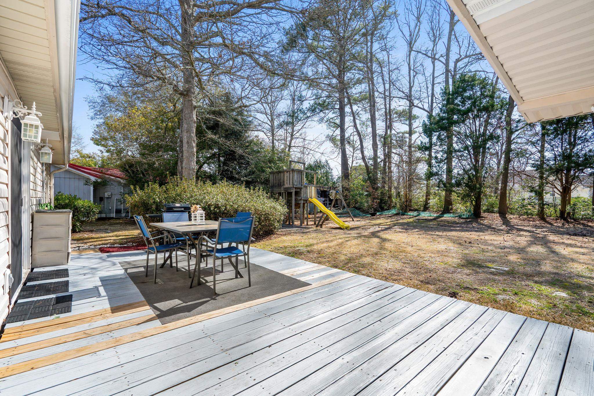 Lovely 4 bedroom 2 bath ranch home in the very popular neighborhood of Waterway Estates in Surfside Beach, SC. A large approximately 75 foot wide by 175 foot deep lot affords lots of yard for outdoor recreation. This home has 1485 square feet of heated and air conditioned space and a 15 foot by 12 foot screened porch on the back of the home. Next to the screen porch is a wood deck for outdoor cookouts and picnics. The home features an eat in kitchen with new stainless appliances. The LG glass top stove has an air fryer built in. The formal dinning room is easily accessed from the kitchen and the rest of the home. An extremely large laundry room contains a Whirlpool washer and dryer and a 4 year old commercial 46 gallon water heater; in addition, there are pull down stairs to access the attic. The home has two linen closets for storage of all your bath and bedding accessories. All 4 bedrooms are centrally located and extremely well lit. This great, easy living space home is 1.3 miles from the beach and has the wonderful feature of a voluntary HOA. Have your real estate agent show you this fantastic home today.