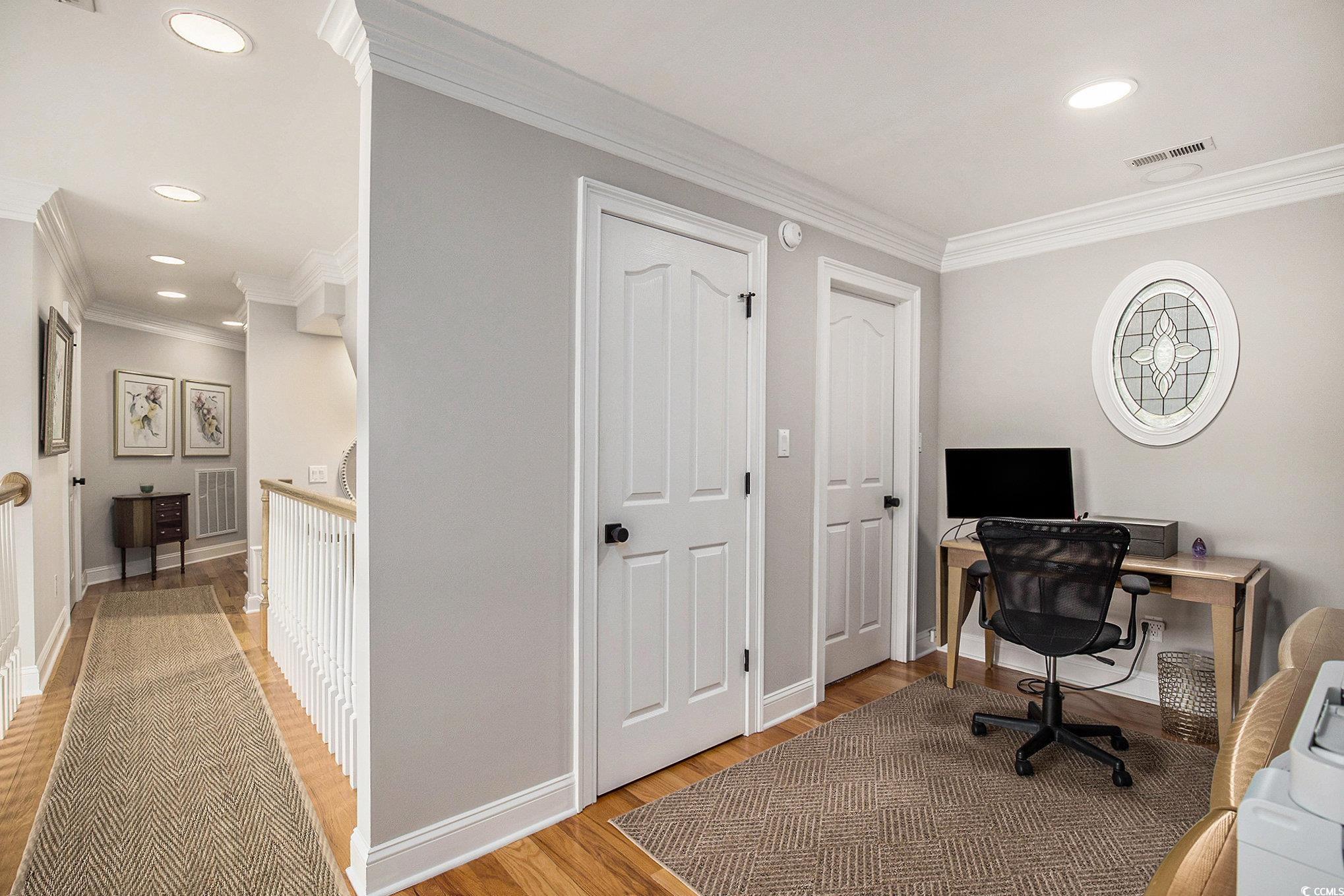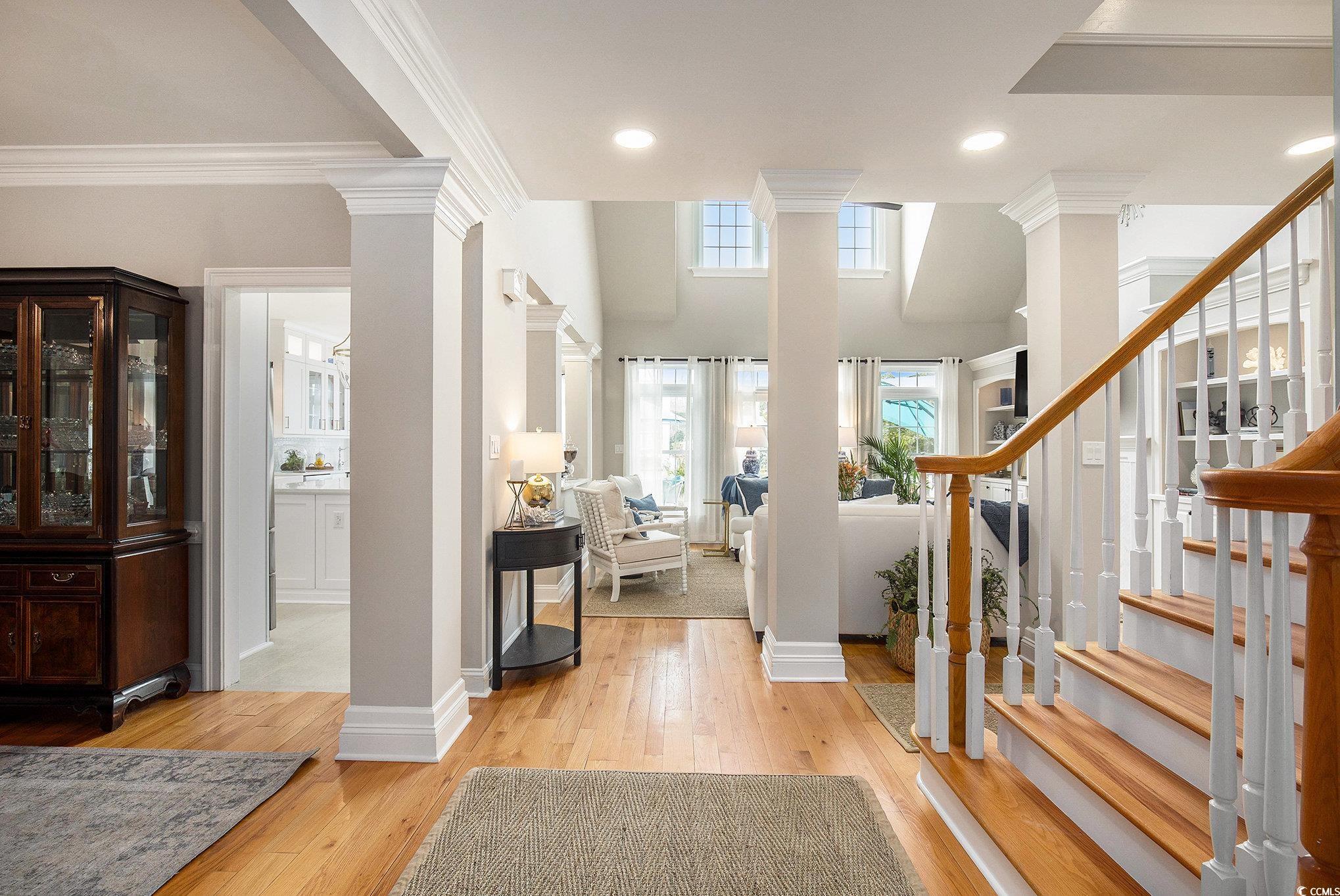 "Custom Builder's Personal Home" in Vereen's Landing. This true Southern Living Plan features a sprawling wrap-around porch overlooking a 100+ year-old Live Oak and vibrant azaleas on a .66 acre pond view lot. The 3500 sq ft interior is bathed in natural light and features authentic 3/4" Oak floors and a 16' vaulted ceiling in the Great room. Newly designed Chef's Kitchen with a 10' Quartz island, White Shaker cabinets, built -in pantries, and a dedicated coffee bar with beverage cooler. Luxurious Primary Suite includes a private sitting area with pond views, a newly designed spa-like bath, and a custom closet. This home has been meticulously updated : New windows, 5 -year- old roof, new hot water heater, R38 insulation, and a full crawlspace encapsulation. Enjoy community boat ramp access to the ICW and a golf-cart-friendly ride to the Marshwalk. Listing Broker/ Owner is a SC Licensed Broker All measurements and information to be verified by Selling Agent