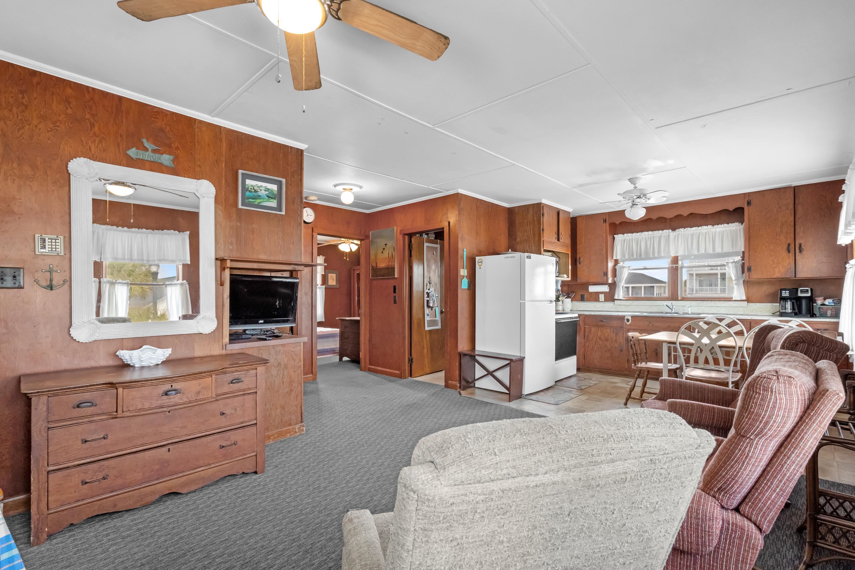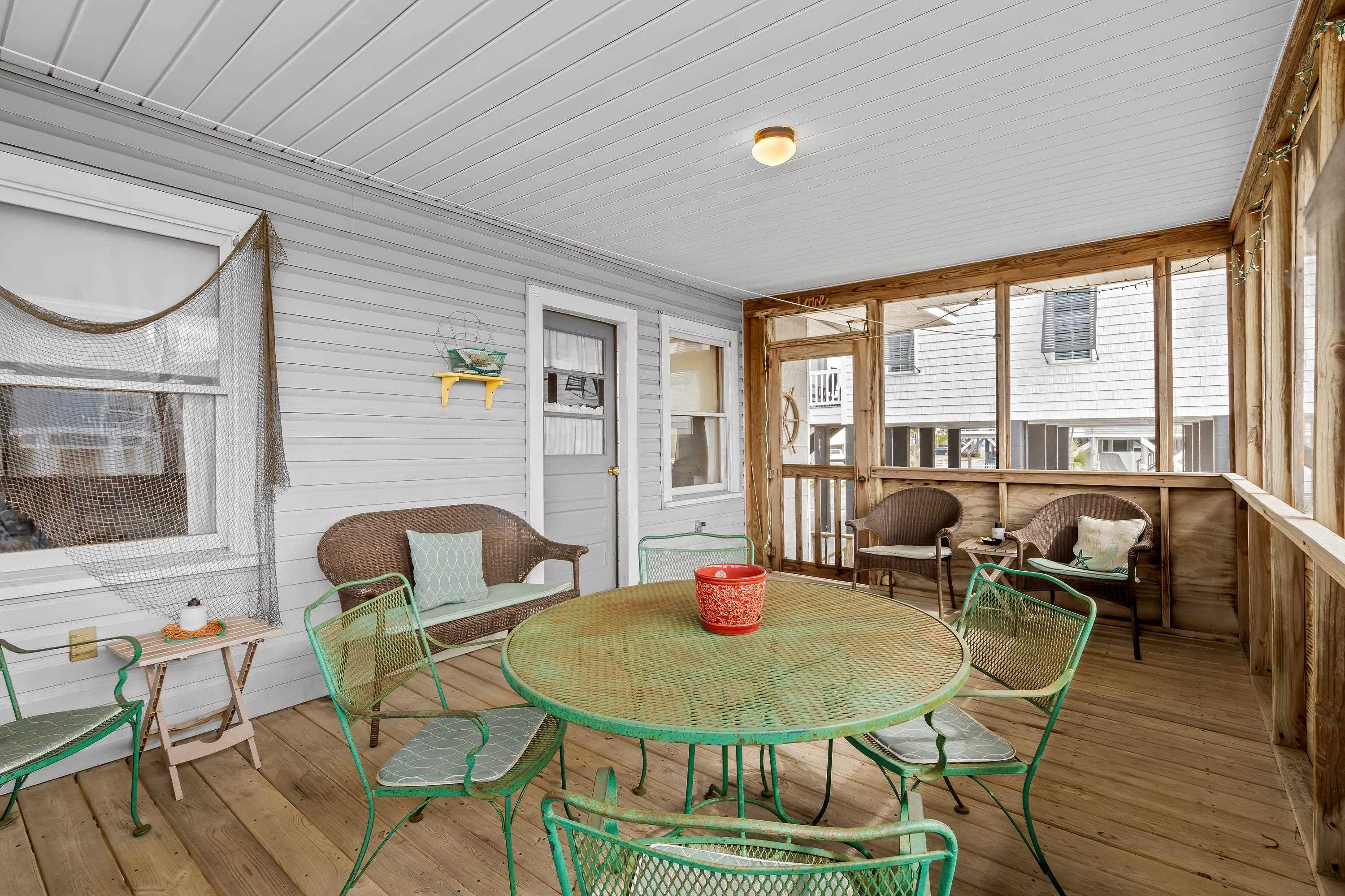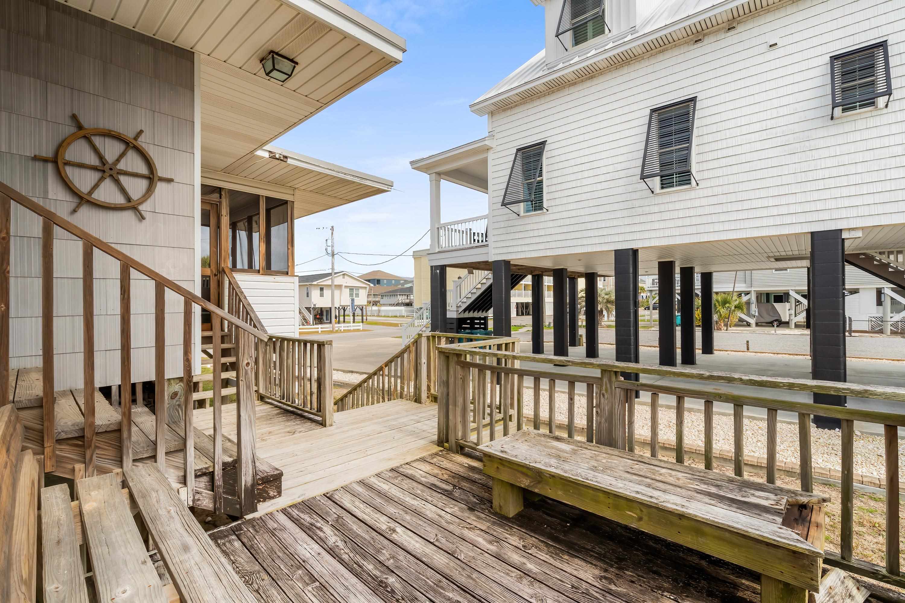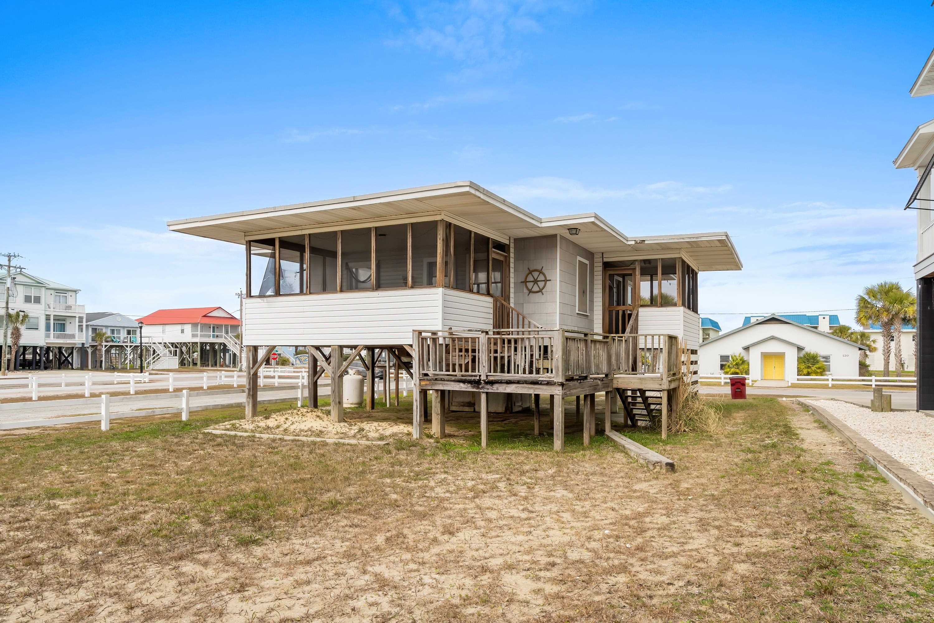 Coastal opportunity in Garden City just moments from the Atlantic shoreline. This classic raised beach home is perfectly positioned within walking distance to the ocean and sits on an oversized parcel with slight water views and convenient beach access. Inside, the home offers two bedrooms, one full bath, and an additional half bath, providing a comfortable footprint for a vacation retreat or rental property. A welcoming screened porch invites you to unwind and enjoy the coastal air, while the large open deck creates the perfect setting for outdoor gatherings or relaxing in the sun. The generous lot size opens the door to future possibilities — whether you envision renovating, expanding, or building a custom beach residence. With its prime location and development flexibility, this property presents a rare chance to invest in one of Garden City’s most desirable seaside settings. Ideal as a personal getaway, income-producing property, or future homesite, this is coastal living with long-term potential.