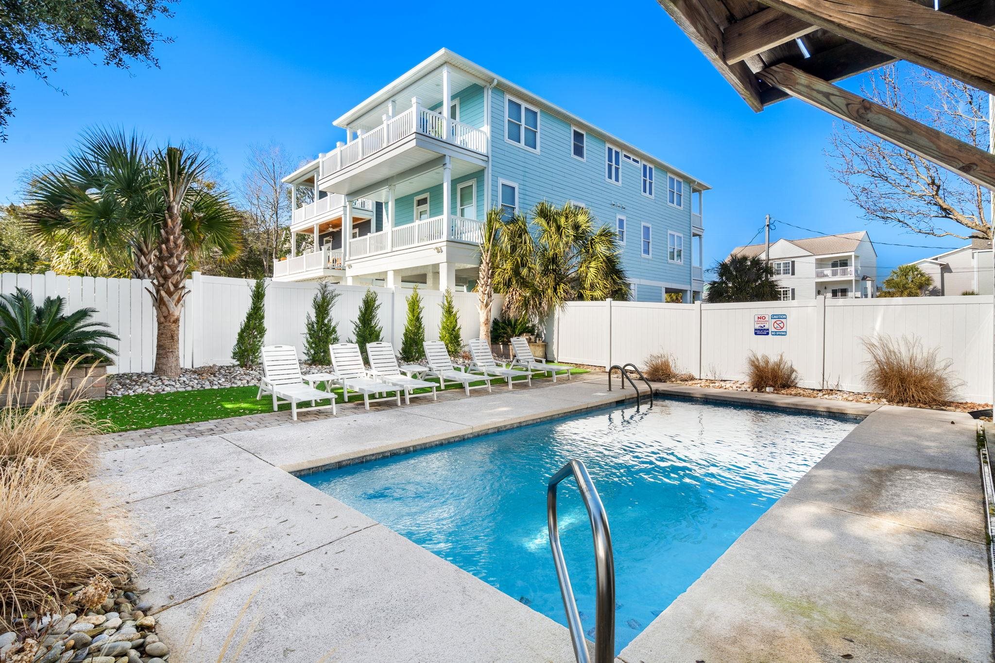 Welcome to your perfect coastal getaway with ocean views! This beautifully 6 bedroom 4.5 baths maintained raised beach home offers the ideal blend of comfort, style, and true second row location just across the street from the beach! Featuring a spacious open-concept living and dining area filled with natural light, the home is designed for easy coastal living and entertaining. The inviting living room centers around a cozy fireplace and flows seamlessly to a large dining space and well-appointed kitchen with ample seating. Step outside onto multiple covered balconies where you can relax with your morning coffee or unwind in the evening while enjoying the coastal breeze. The elevated construction provides generous covered parking and storage underneath the home. The backyard is designed for relaxation and fun, featuring a private pool area with plenty of space for lounging and entertaining. Whether you're hosting guests or enjoying a quiet afternoon by the water, this outdoor space is perfect for making the most of beach living. Located just steps from the beach, this home is ideal vacation getaway, or investment property. With its charming coastal curb appeal, spacious layout, and fantastic outdoor amenities, this property offers the ultimate beach lifestyle. Don’t miss the opportunity to own your slice of paradise!