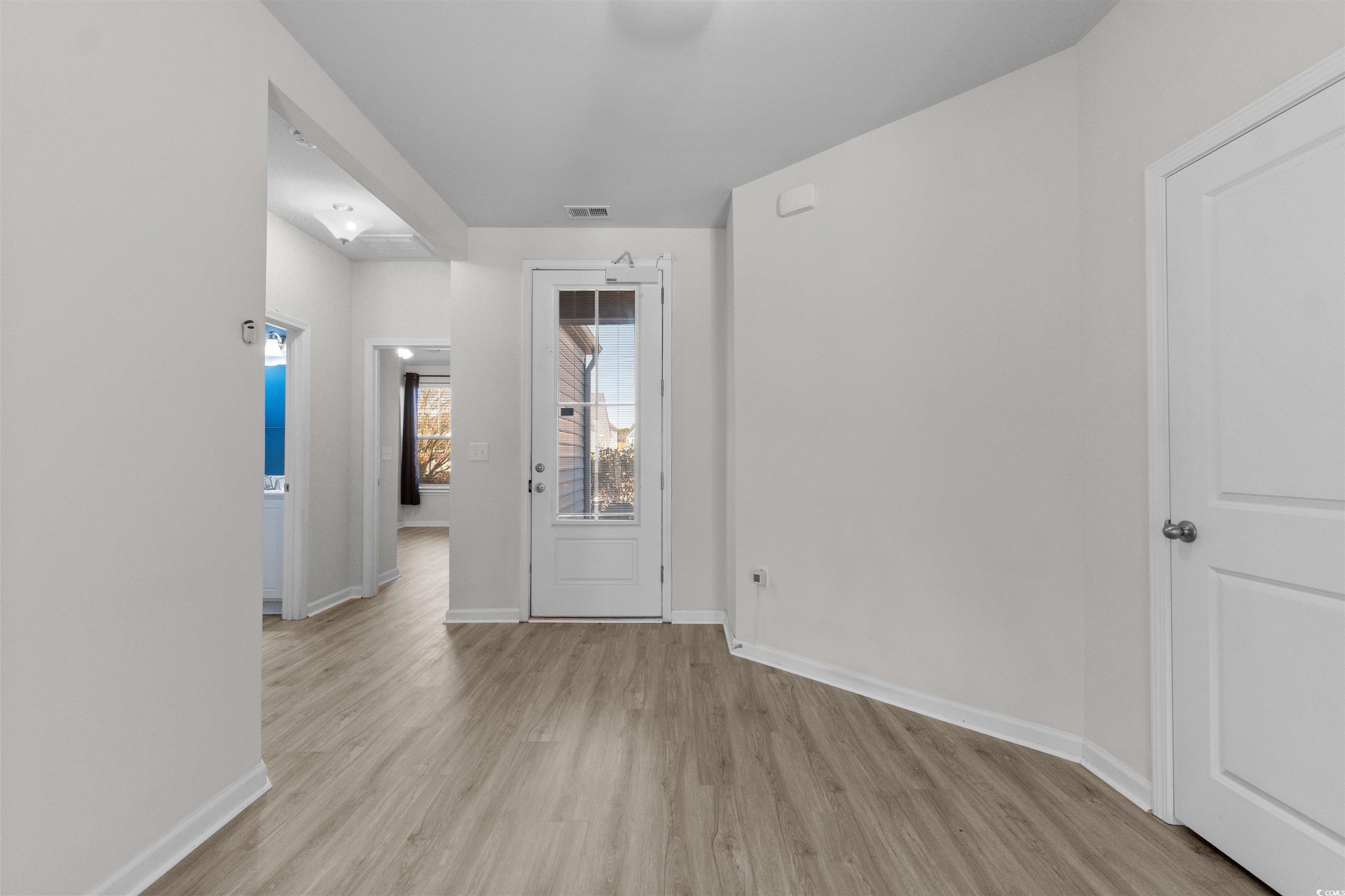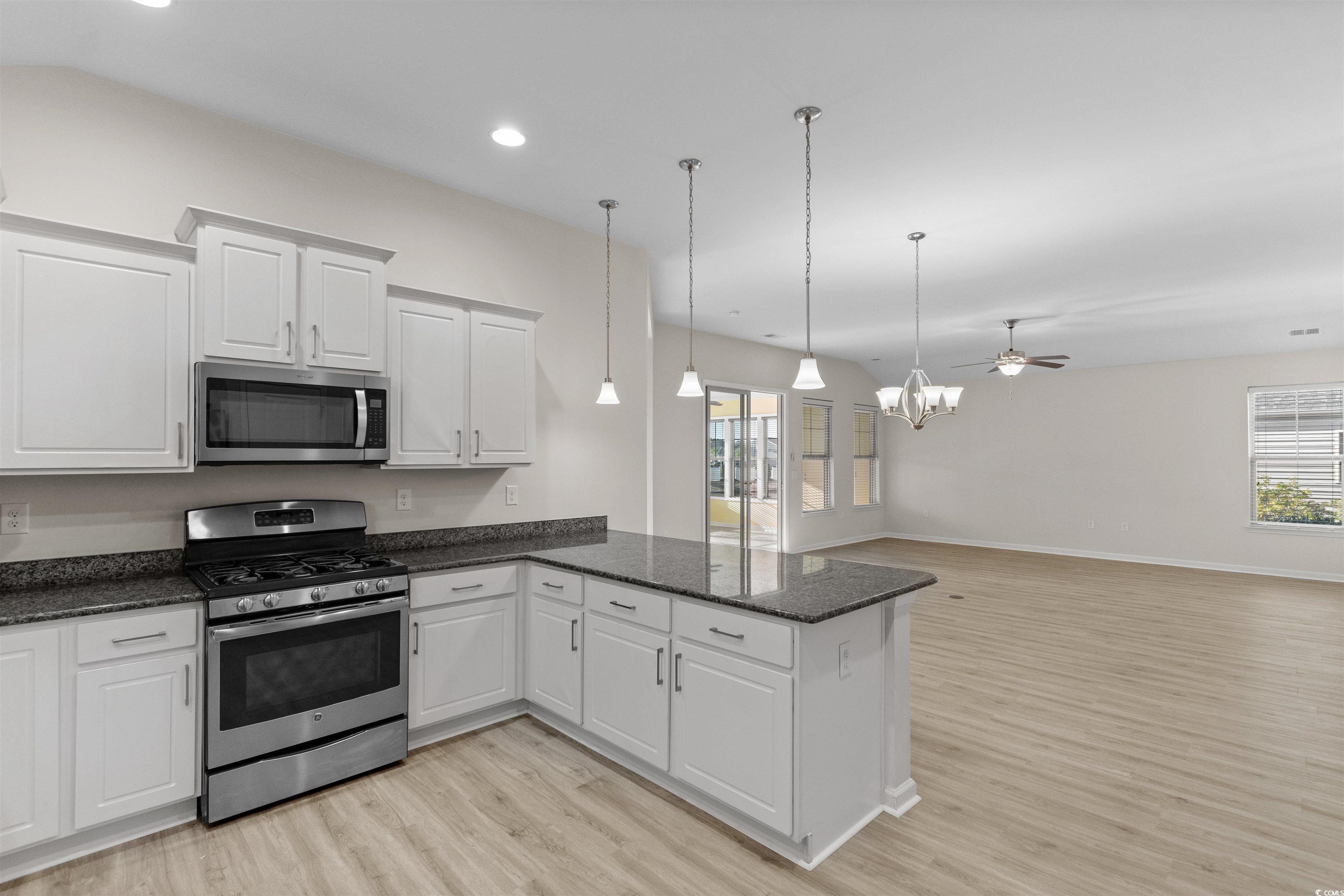 Located in the sought-after The Lakes community and within the St. James School District, this well-maintained 3-bedroom, 2-bath home offers comfortable living with a functional and inviting layout. The open-concept main living area features vaulted ceilings and flows seamlessly into a light-filled Carolina room overlooking a peaceful pond, creating the perfect space to relax or entertain. New LVP flooring throughout the entire home provides a fresh, cohesive look, while the split-bedroom floor plan offers added privacy for owners and guests. The fenced backyard is ideal for pets, play, or outdoor enjoyment and includes an irrigation system to keep the lawn looking its best year-round. The garage is equipped with a mini-split system, making it a versatile space for a workshop, gym, hobby area, or additional comfort while working or storing items. A spacious laundry and utility room adds everyday convenience. Ideally located just 4 miles from the beach, 10 miles from the airport, and close to restaurants, shopping, and everyday amenities, this home offers the perfect combination of comfort, convenience, and coastal lifestyle.
