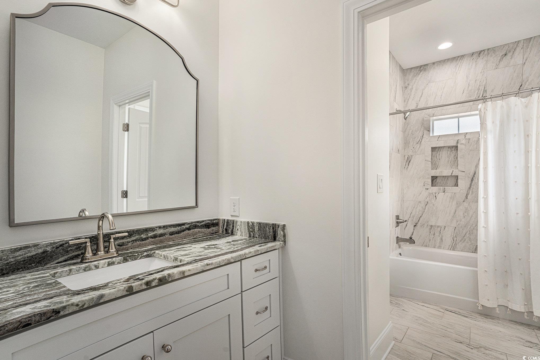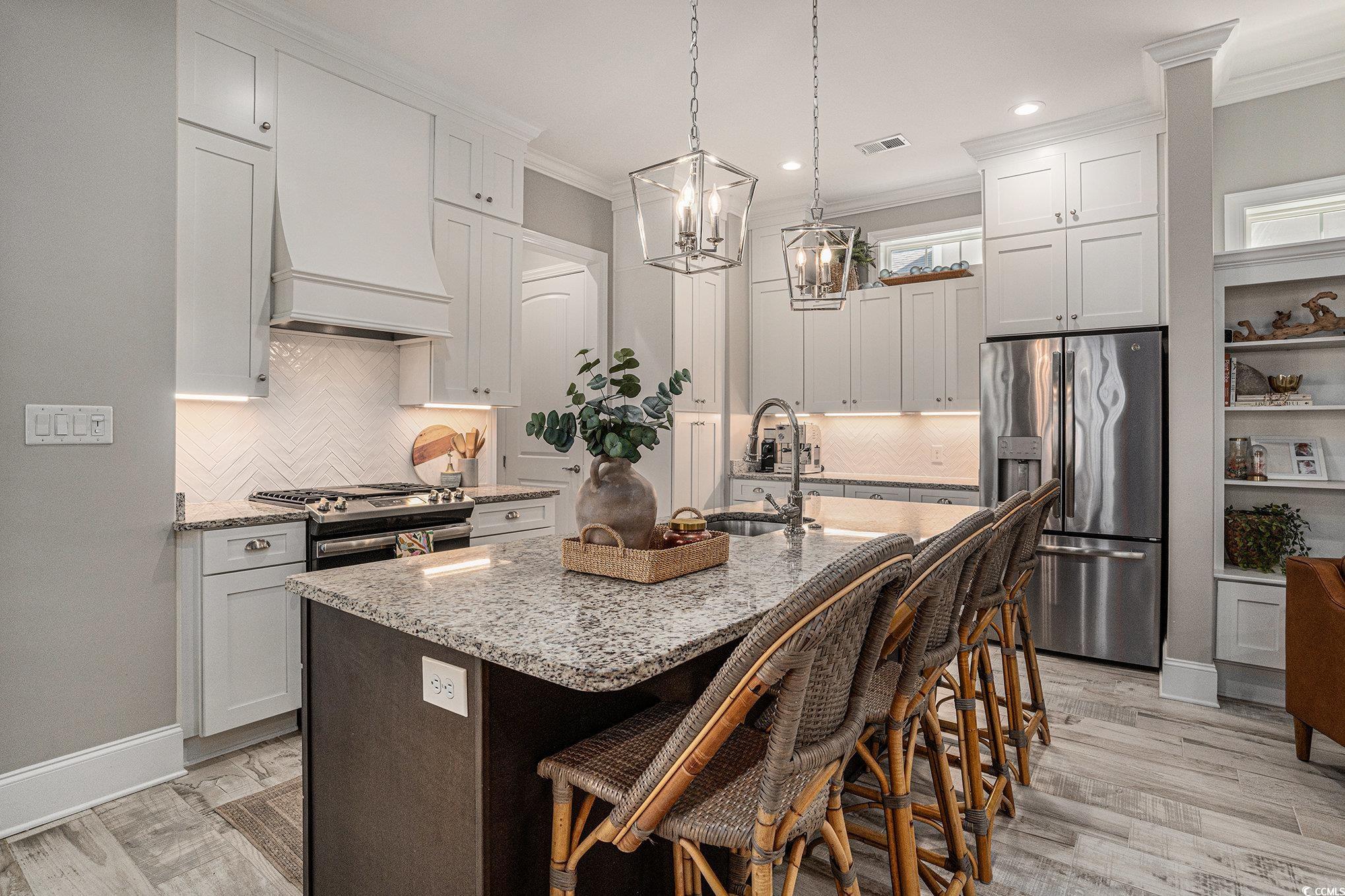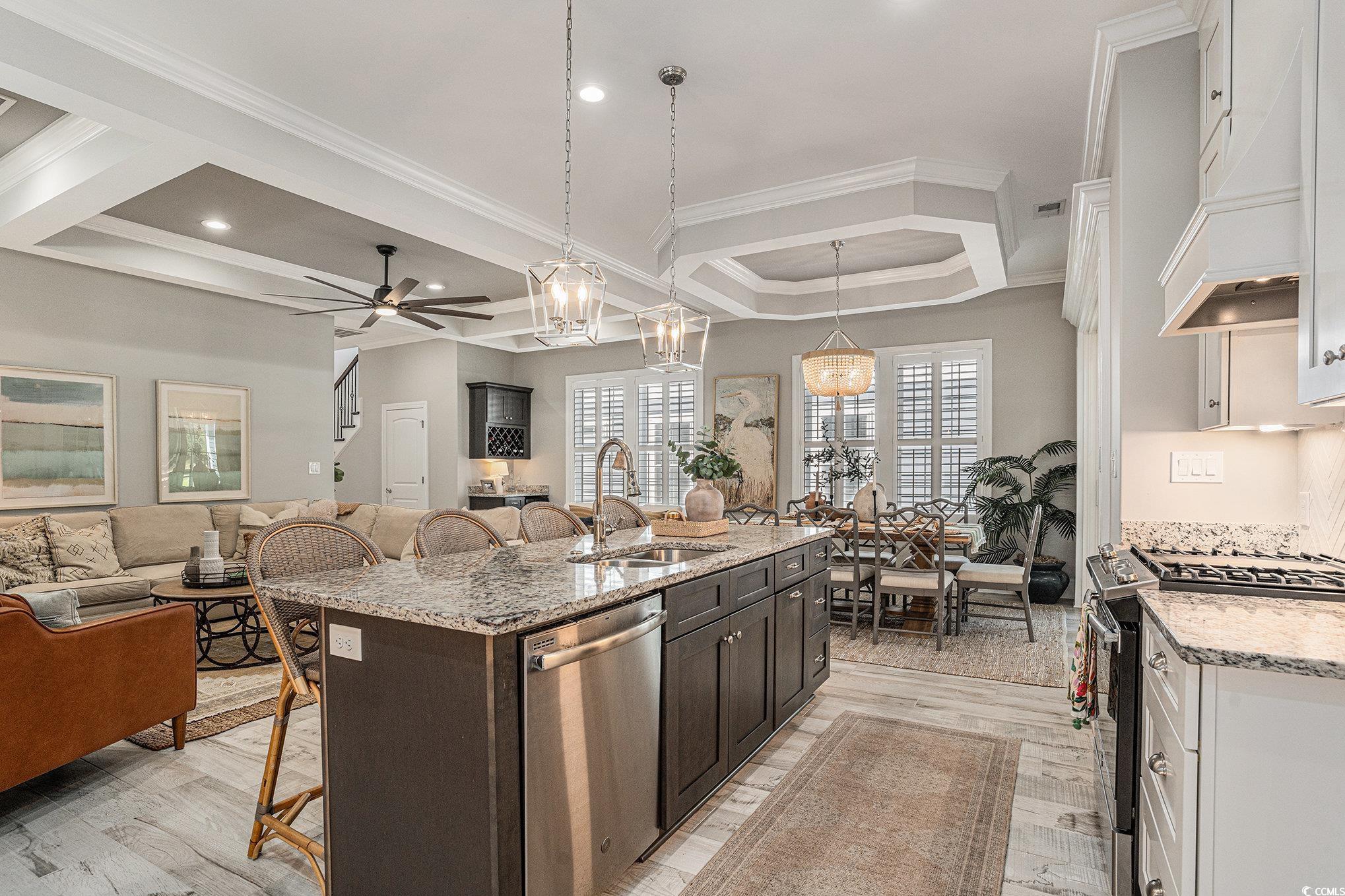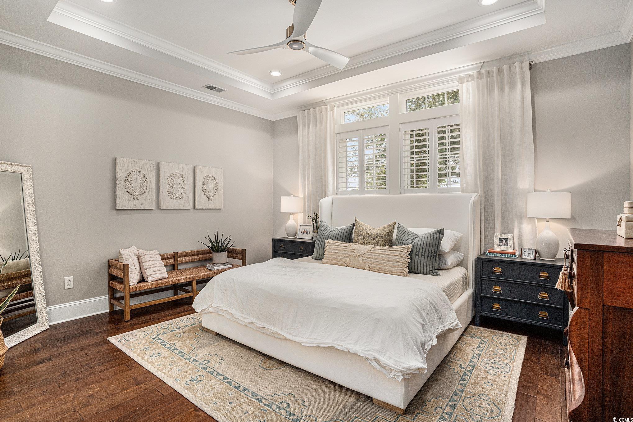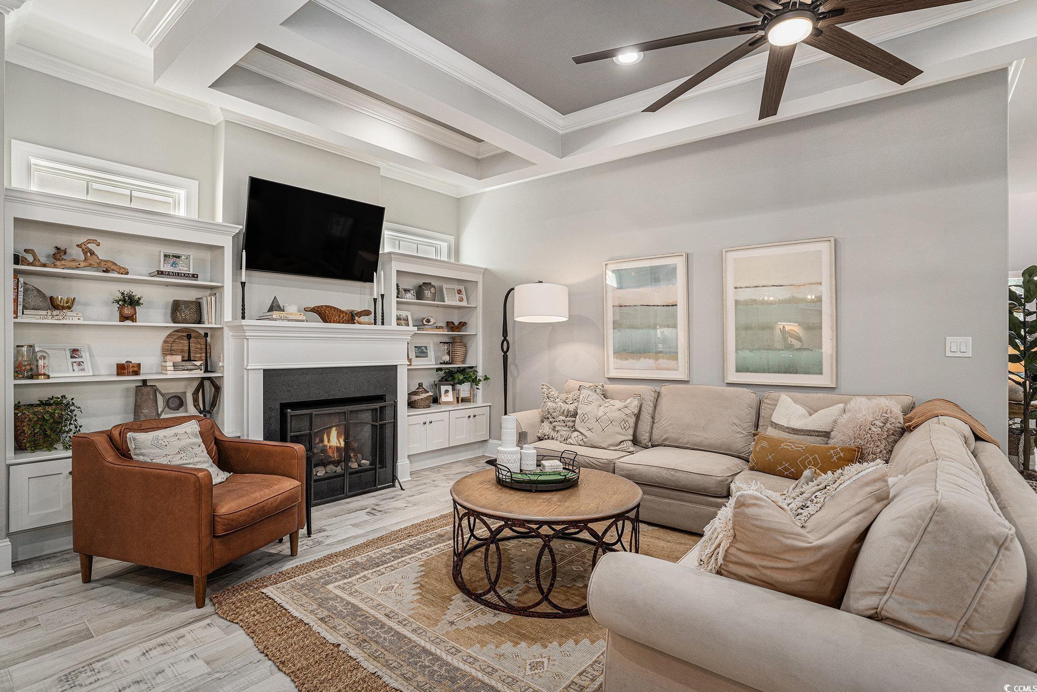 This is the home you have been waiting for!!! Beautiful Custom-Built home in Waterway Palms Plantation, this home was constructed in 2019 and has just about every custom feature imaginable! Starting with the wood look tile flooring in the entry, living and kitchen, and engineered hardwood flooring in the primary and guest bedrooms, the quality in materials is a step above today's industry standards of laminate and LVP. Custom Coffered ceilings features in the living and dining areas and a trey ceiling in the Primary suite carry this custom feel throughout the home. Matching granite counters in the kitchen and baths, custom Kitchen hood vent and premium stainless steel appliances finish it all off. Not only does the home have quality finishes but the layout will exceed your expectations for livability with the Primary Suite on the first floor yet still has plenty of room for an open concept kitchen, dining, and living room. Heading up stairs you are greeted with a large landing with seating and even a small granite counter workspace, this landing flows into two guest bedrooms sharing a jack and jill bath and then a completely separate guest bedroom with ensuite and access to the front balcony(this guest suite is currently used as an office) No expenses spared on exterior features, from the front porch entry to the large screened porch directly off the dining/living area out to a shared exterior seating area and an oversized rear entry garage. This home really does have it all. Out back is easy access to an enormous common area lawn and even walking and biking trails, Not to mention Waterway Palms Plantation's world class amenities. This incredible facility includes 2 level clubhouse, oversized swimming pool, tennis/pickleball courts, gazebos, verandas, a playground, a workout facility, common gathering areas, a common prep kitchen, boat launch on the ICW including day docks and boat storage. This home checks a lot of boxes and the neighborhood checks even more! All of this while being just a short drive to all area beaches and all the shopping and dining that Myrtle Beach has to offer. Do not delay, a home of this caliber will not last long!!!