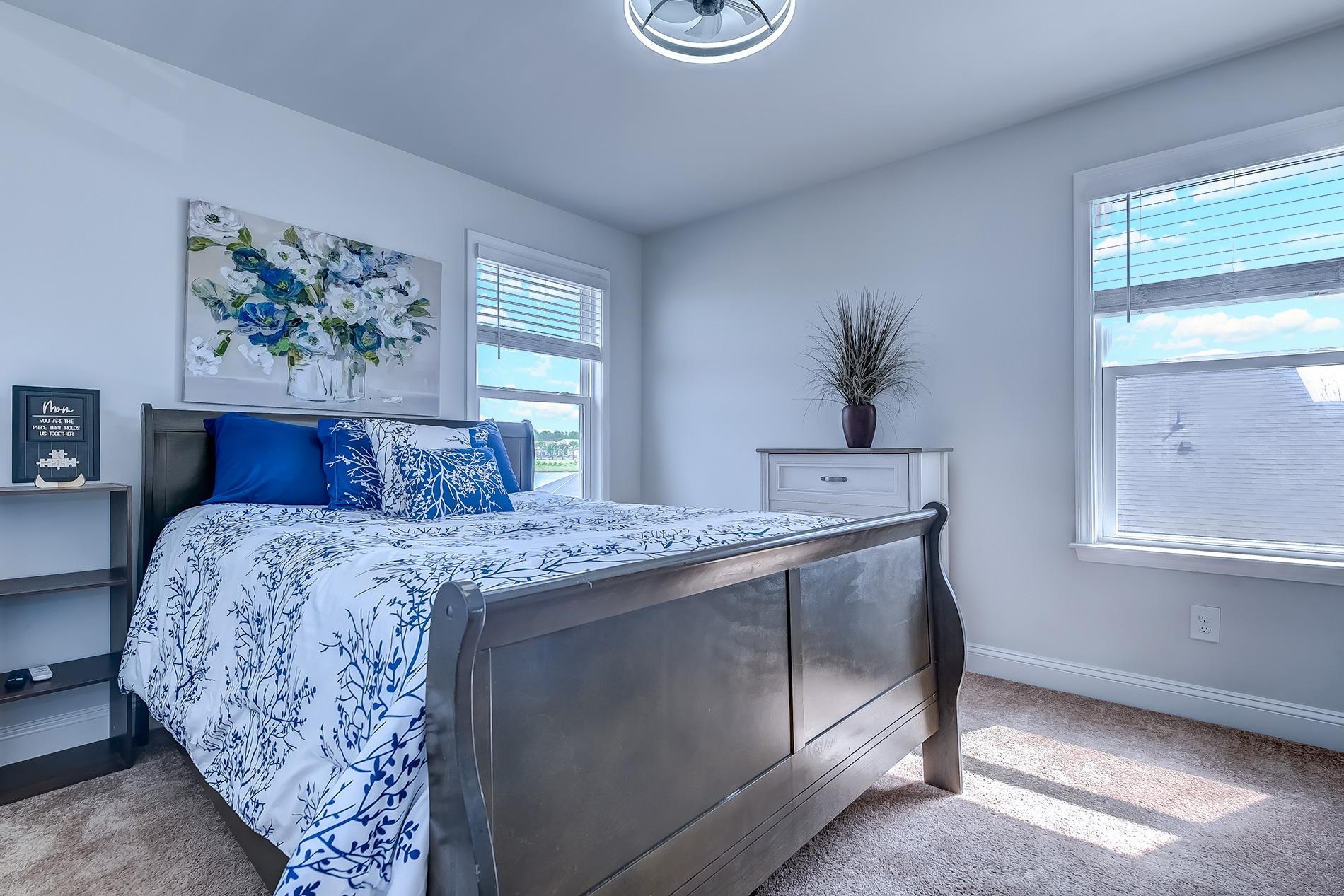 AMAZING opportunity to own a 3 bedroom 3 bathroom SMART home with a dedicated office/flex room AND a bonus room! Step inside under your lovely covered porch and into the foyer where you will be greeted with a French door entry into your private office. Continuing in, the wide-open floorplan begins with a chef's kitchen, massive granite island with bar seating, stainless steel appliances, pantry, and loads of upgraded cabinetry. The great room also contains your living/dining room areas with ample space for a large table, and multiple sofas. Also on the first floor is the primary bedroom with ensuite featuring double sinks, tiled shower, linen closet, and walk-in-closet. Laundry is located just across from the primary, and around the corner, there is another first floor bedroom and full bath, perfect for older guests. Upstairs opens into a loft/bonus room/second living room and you'll also find the 3rd bedroom, with a double closet (and gorgeous views of the lake), the 3rd full bathroom, and a large utility closet with loads of extra storage space. Above the 2 car garage there is fully floored attic space with pull-down stair access. Other notable upgrades include a 5 speaker built in surround sound, extended gathering room, higher end fixtures and appliances, and an upgraded trim package. Outside, you can enjoy the sunsets under the covered patio, or grill up some dinner in your fully-fenced backyard, which opens directly to the walking path leading to the amenity center. Del Webb of North Myrtle Beach is a 55 + ACTIVE ADULT/lifestyle community featuring indoor and outdoor pool, cabanas, outdoor kitchen, 2 firepits, pickleball courts, billiards table, putting green, game room, extensive paved trails, sidewalks, bocce area, fitness center and a community center with weekly community events as well as party space available for you to host your own events! Enjoy low HOAs with yard-maintenance, cable, and internet INCLUDED. All this in the heart of North Myrtle Beach, just minutes from shopping, dining, grocery, hospitals, entertainment, championship golf, and only a GOLF CART RIDE to the BEACH! Call today for your private showing.
