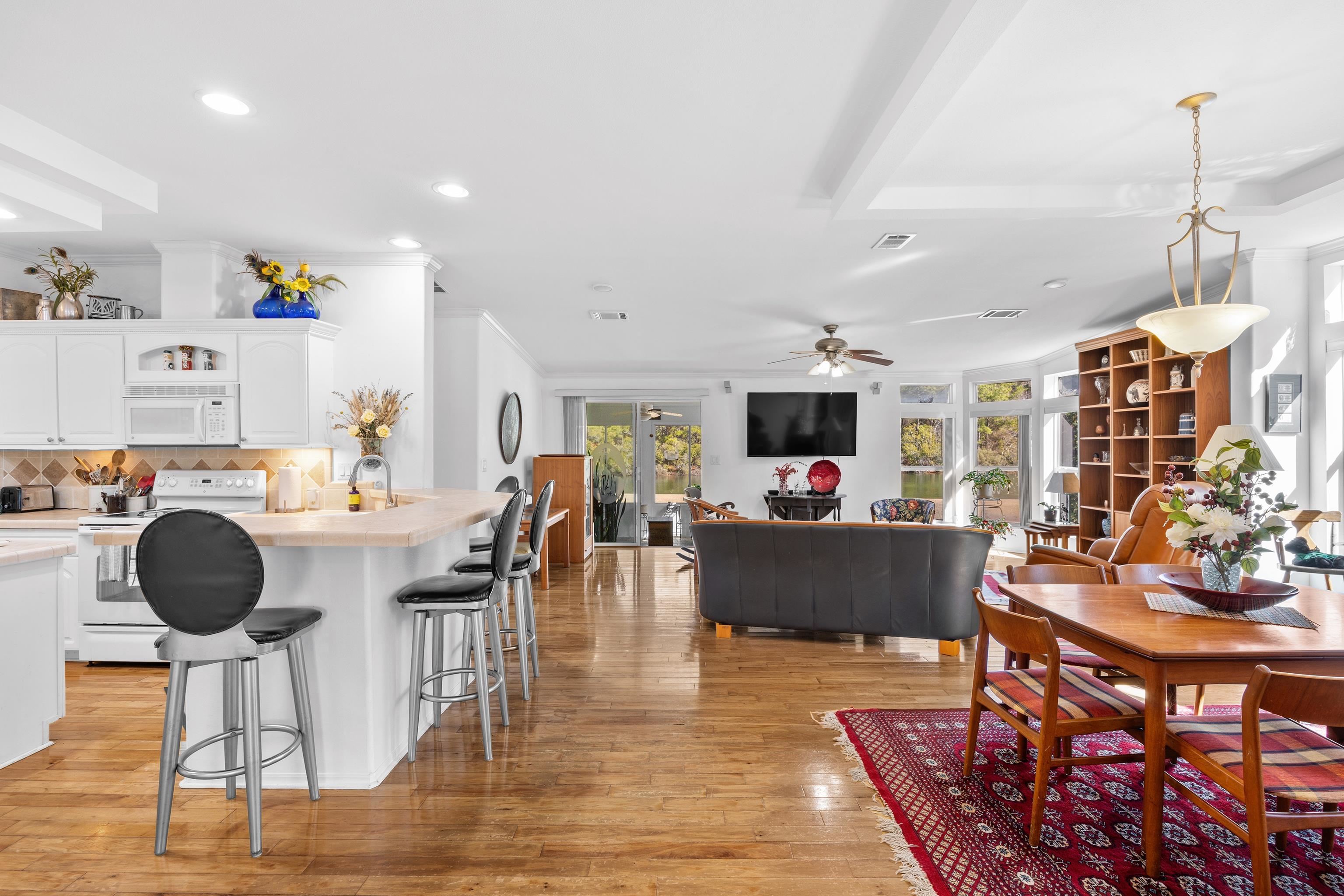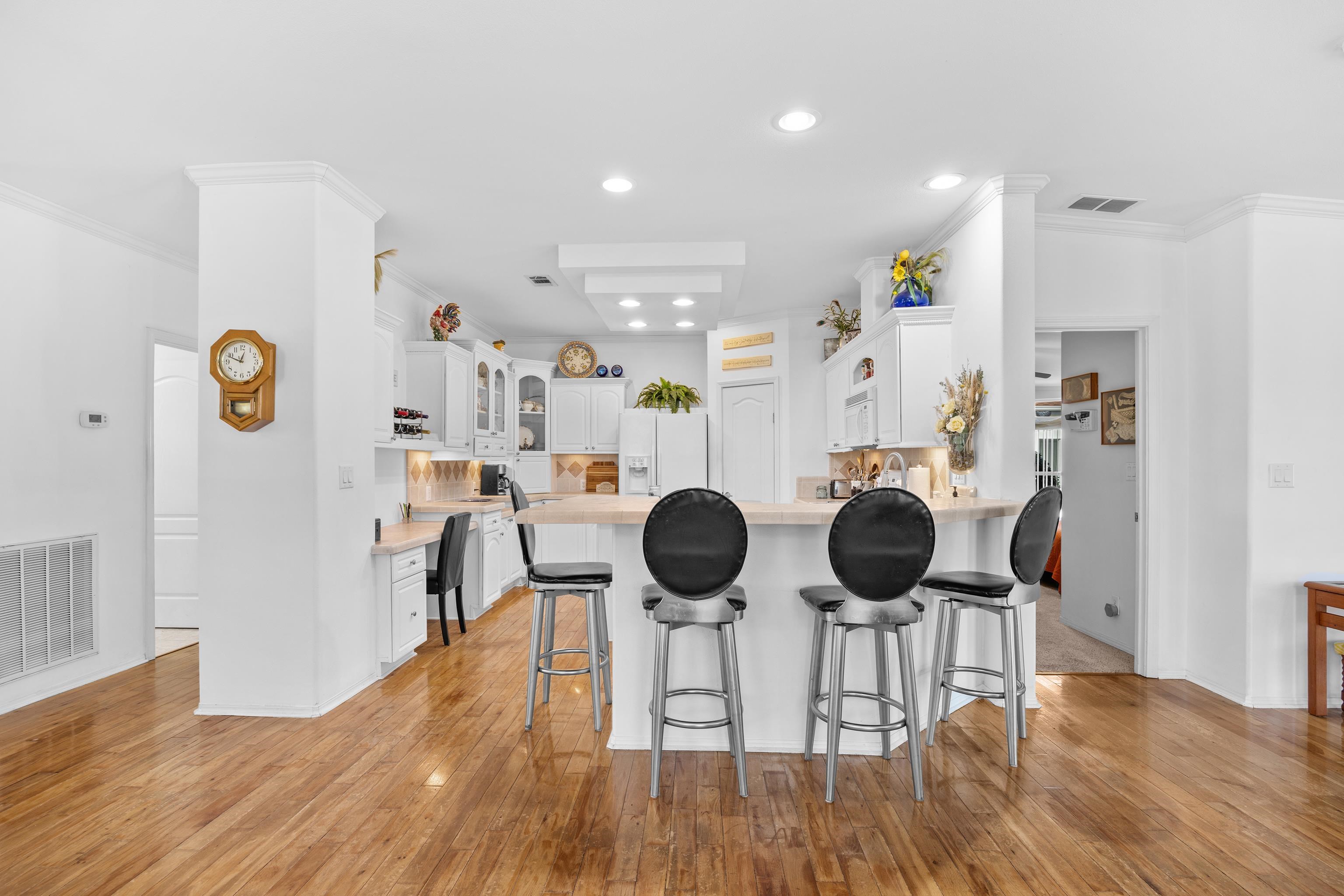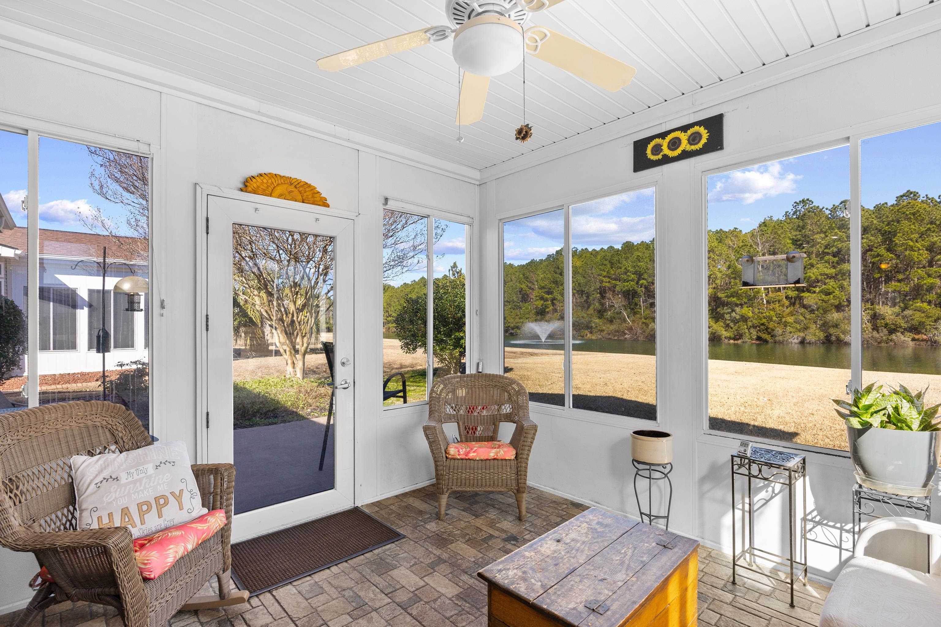 Exceptional 3-bedroom, 2-bath home with a 2-car garage, ideally located directly across from the community center that features an abundance of resort-style amenities. The home boasts tons of natural light and benefits from thoughtfully placed windows that capture serene lake views from the backyard. Interior finishes are bright and inviting. The layout includes a versatile sunroom that functions equally well as a home office or sitting area, plus a private back patio that provides an ideal setting for dining, peaceful relaxation, or entertaining guests. Practical features and thoughtful details enhance everyday comfort, and the property’s prime location affords easy access to community recreation and social spaces. Move-in ready and well-suited for buyers seeking a combination of convenience, lifestyle amenities, and scenic outdoor views.