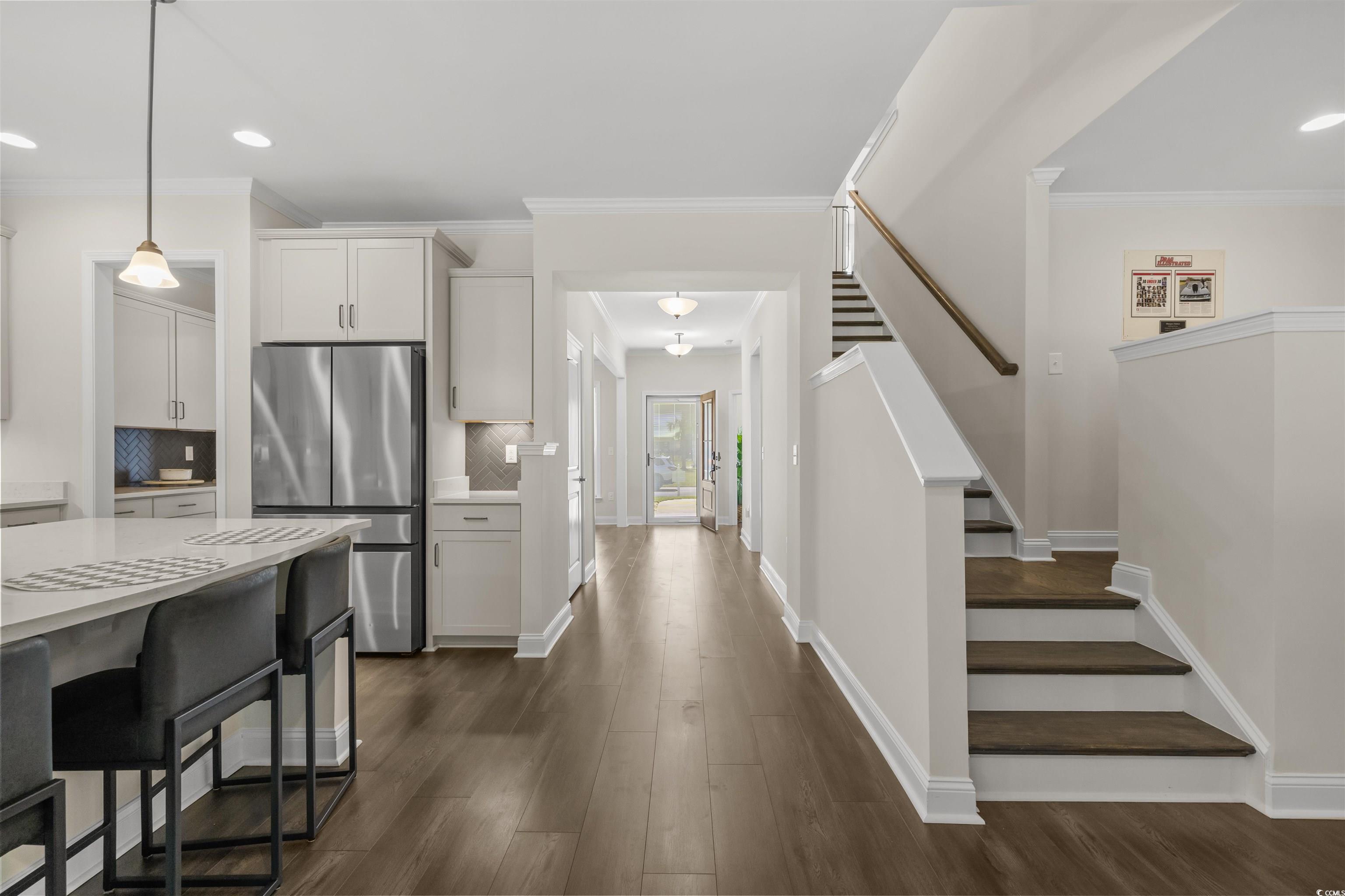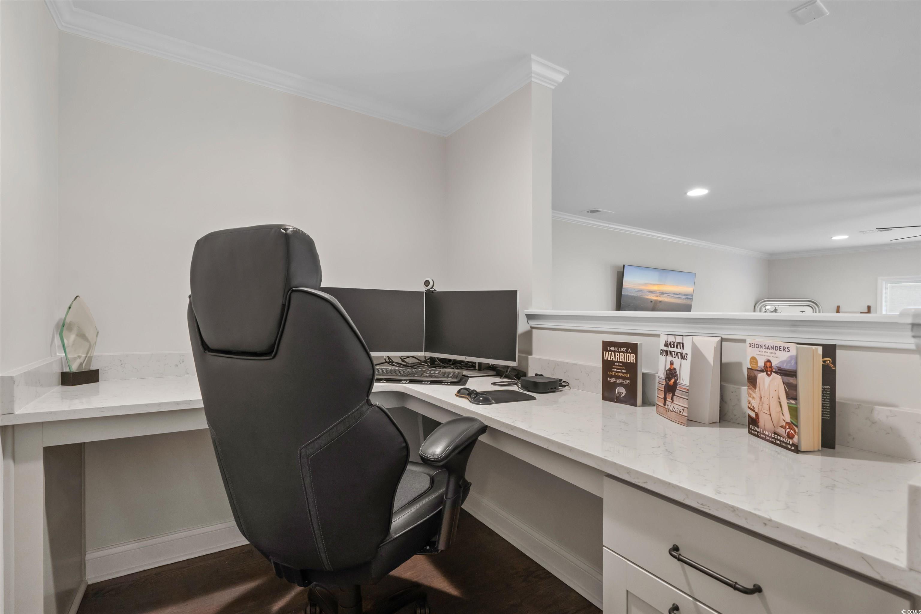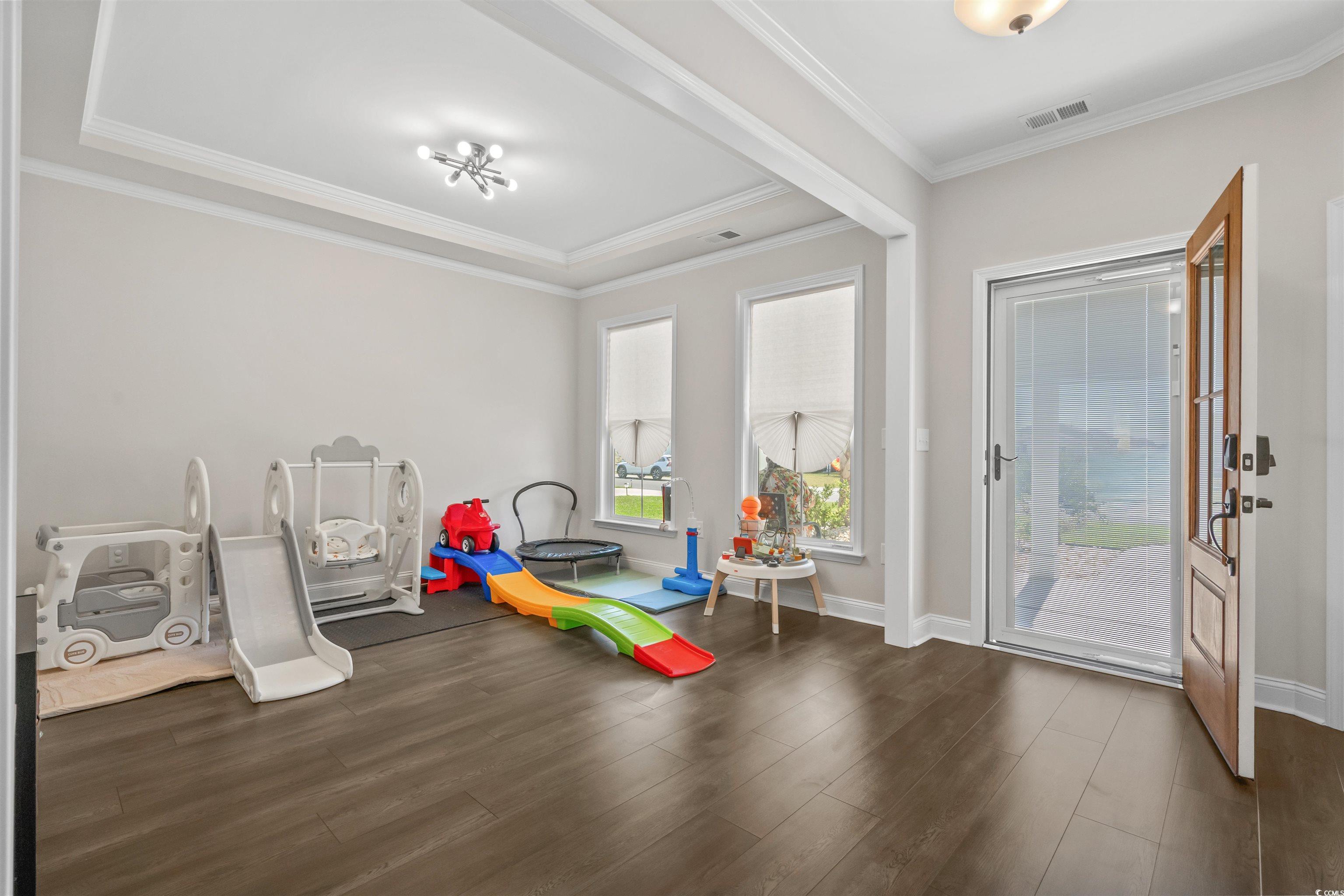 Welcome to this remarkable 4-bedroom, 3.5-bathroom home located in the highly desirable Berkshire Forest community in Carolina Forest! Boasting a spacious and thoughtfully designed layout, this home offers comfort, functionality, and elegant details throughout. As you arrive, you’ll be greeted by beautiful landscaping and a charming front porch, perfect for enjoying quiet mornings. Step inside to find a formal dining room with elegant tray ceilings to your right—currently used as a playroom—and a private office with a stylish glass door to your left. The heart of the home is the chef-inspired kitchen, fully equipped with stainless steel appliances, a work island, an expansive walk-in pantry, and abundant cabinet space—a true dream for any culinary enthusiast! The master suite is a serene retreat, featuring tray ceilings, a double-sink vanity, walk-in shower, garden tub, and a massive walk-in closet. Upstairs, you'll find a spacious loft-style living area, a second office/flex space, and three additional bedrooms. Step out onto the second-story balcony overlooking the front yard—a perfect spot to unwind. The yard includes a new irrigation system to make lawn care effortless. But the home is just the beginning—Berkshire Forest offers resort-style amenities including: multiple community pools, clubhouse & recreation center, tennis courts, playground, fitness center, and a scenic lake with walking trails for peaceful strolls and relaxation! This is more than just a home—it's a lifestyle. Don’t miss your chance to be part of this vibrant and welcoming community. Schedule your showing today!