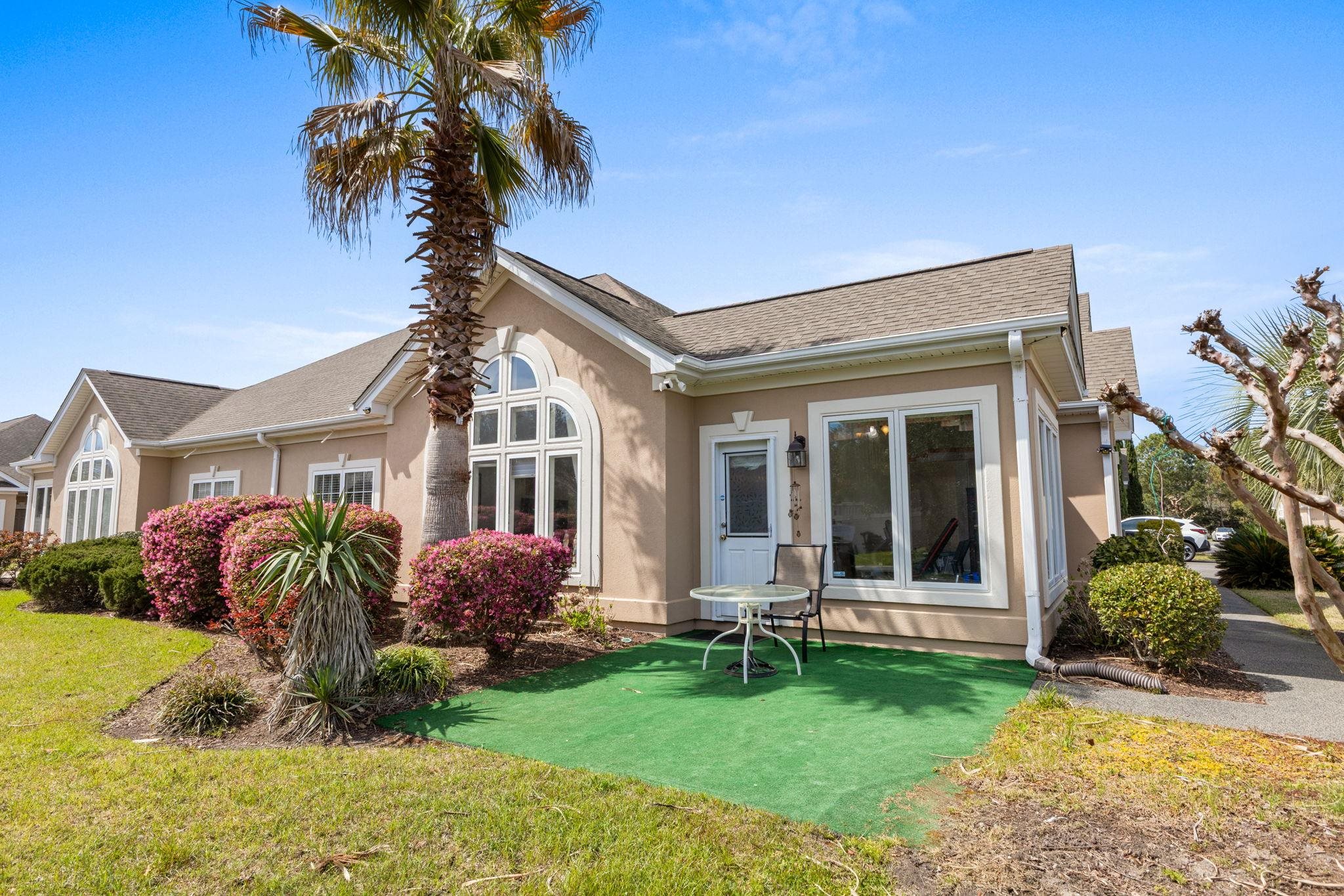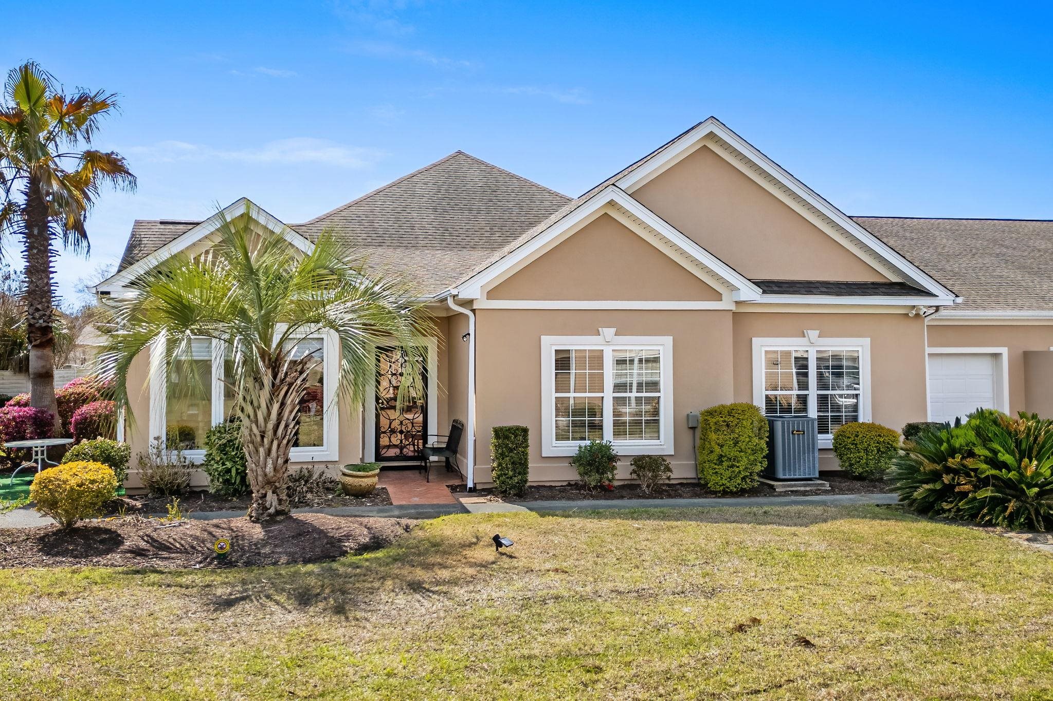 You will not find another one like this in the community. This beautifully updated 3-bedroom, 2-bath end-unit carriage home truly stands out. Ideally located less than a mile from the sandy shores of the Atlantic Ocean and the coveted “Golden Mile,” you’re just a short golf cart ride to the beach while still enjoying a private, tucked-away setting. Positioned in one of the best spots in the complex, this home offers a rare, spacious backyard, unlike many others that back up to neighboring units or face the road. From the moment you step through the custom front storm door, you’ll notice the pride of ownership and thoughtful upgrades throughout. Inside, the open and airy floor plan is filled with natural light and highlighted by vaulted and tray ceilings, creating a bright and inviting living space. The oversized kitchen features updated granite countertops, stainless steel LG appliances, two pantries, and abundant cabinet storage, perfect for everyday living and entertaining. The split-bedroom layout provides privacy, with a spacious primary suite offering a tray ceiling, large walk-in closet, and a beautifully updated bath with double vanity and walk-in shower. The second bath includes a relaxing jacuzzi tub. A versatile Carolina room/office adds even more flexible living space. One of the standout features is the converted walk-up attic, transforming what is typically storage into a bonus room ideal for a den, library, or additional living area, while still offering ample storage throughout the home, including oversized closets. Enjoy truly low-maintenance living with an HOA that covers internet, basic cable, pest control, lawn care, and annual exterior and driveway pressure washing. This immaculate, move-in-ready home offers the perfect blend of privacy, upgrades, and proximity to everything Myrtle Beach has to offer making it a rare opportunity you don’t want to miss.