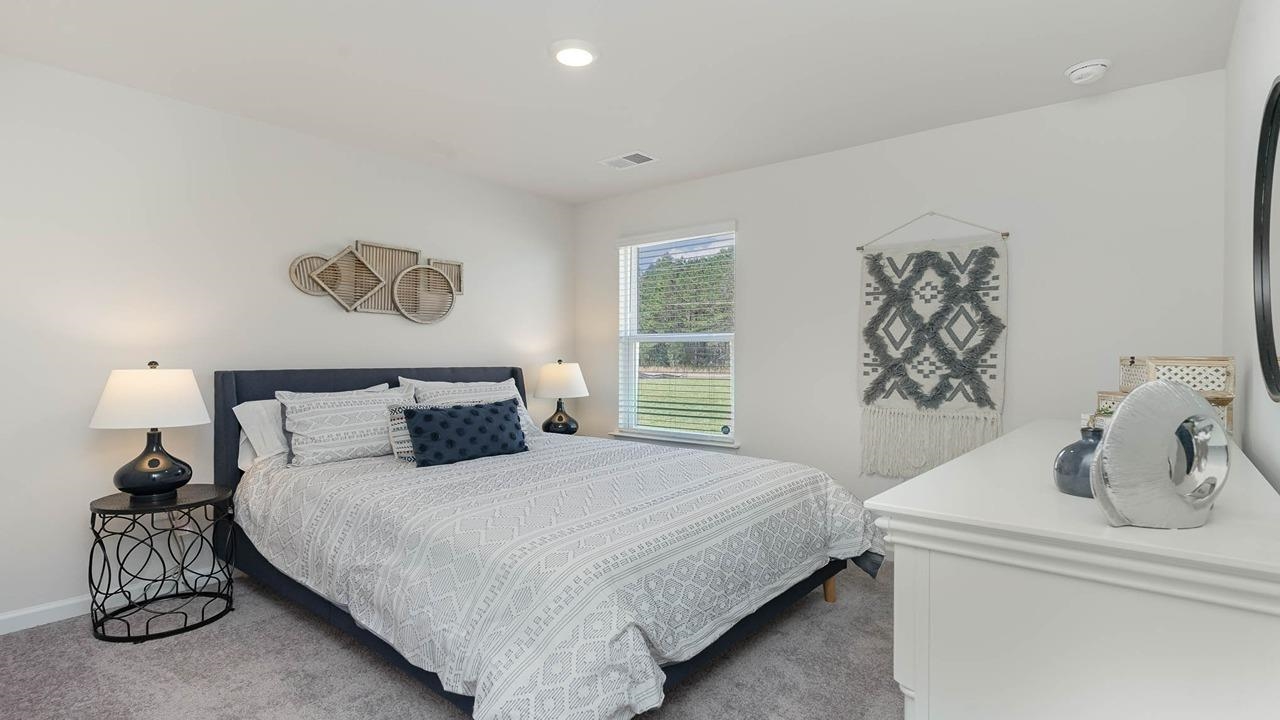 This thoughtfully designed one level home is one of our most popular floor plans! With an open concept living room, dining room and kitchen, this home is bright, spacious, and designed for entertaining guest or comfortably interacting with family. The kitchen features granite countertops, 36" cabinets, a walk in corner pantry, stainless steel appliances including a refrigerator, and island with breakfast bar! Your primary suite awaits off the back of the home with a spacious walk-in closet and master bath with double sinks, a linen closet and 5' shower. Three secondary bedrooms are at the front of the home providing separation from the primary suite. Enjoy the coastal air from the back porch as you wind down in the evening! Blinds will be included throughout the house on all standard sized windows. 2 car garage with garage door opener. This is America's Smart Home! Each of our homes comes with an industry leading smart home technology package that will allow you to control the thermostat, front door light and lock, and video doorbell from your smartphone. *Photos are of a similar Cali home. Pictures, photographs, colors, features, and sizes are for illustration purposes only and will vary from the homes as built. Home and community information, including pricing, included features, terms, availability and amenities, are subject to change and prior sale at any time without notice or obligation. Square footage dimensions are approximate. Equal housing opportunity builder.