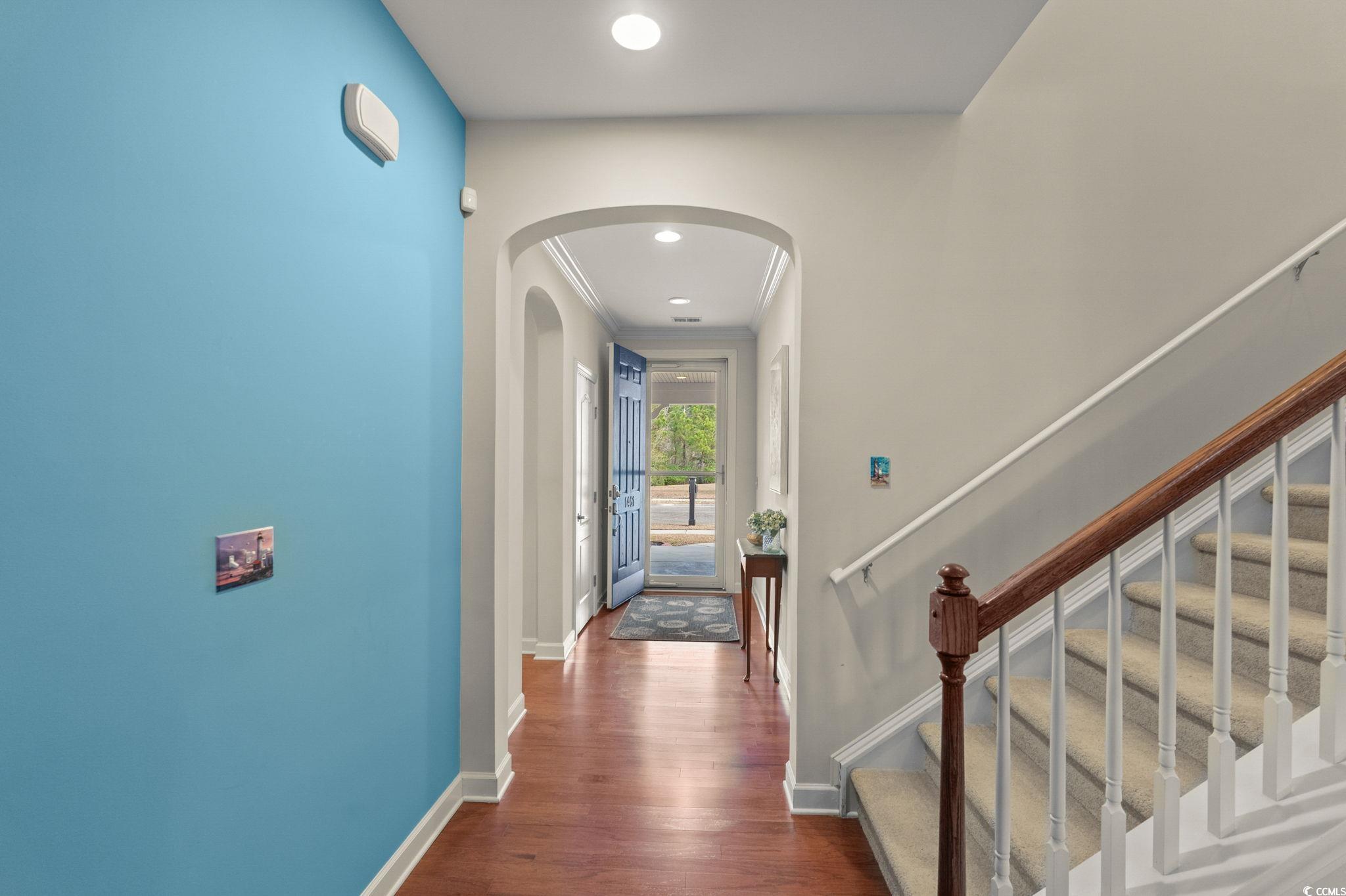 Fantastic Price - Welcome to 1461 Thames Ct., located in the highly sought-after community of Emmens Preserve within Market Common. This charming Crepe Myrtle floor plan offers 4 bedrooms, 3 baths, and a 2-car garage, all powered by natural gas—including a gas fireplace, tankless Rinnai water heater, and gas range for cooking. Enjoy outdoor living with both covered front and rear porches, plus a fully fenced backyard. The thoughtfully designed split floor plan features three bedrooms on the main level. The spacious primary suite with ensuite bath includes a linen closet, large walk-in closet, double sink vanity, garden tub, and a glass-enclosed shower. Two generous guest bedrooms are located at the front of the home and share a full bath. Upstairs, you’ll find a flexible and expansive fourth bedroom or bonus room with its own walk-in closet and full bath—perfect for guests, a home office, or media space. The kitchen has a pantry, dual-basin sink, lots of cabinets and offers ample room for an eat-in area and a built-in desk, ideal for cookbooks or a home office nook. A formal dining room showcases chair rail and timeless wainscoting enhancing this home's entertaining flow and provides additional space for gatherings. The laundry room is just off the garage and has shelving to create a "drop zone" and offers a walk-in pantry for additional storage. Sliding doors lead to the extra-long covered rear porch, complete with a designer ceiling fan and Edison string lights—an inviting space for grilling, entertaining, or relaxing. Situated at the end of the street, this home enjoys added privacy and street parking. Emmens Preserve is known for its resort-style amenities, including a clubhouse, pool, miles of walking and biking paths (including the scenic Woodland Path), playground, picnic area, outdoor pavilion with kitchen, putting green, bocce ball court, dog park, and golf-cart-friendly access to the beach and downtown Market Common. Schedule your showing today and experience the lifestyle this beautiful home has to offer