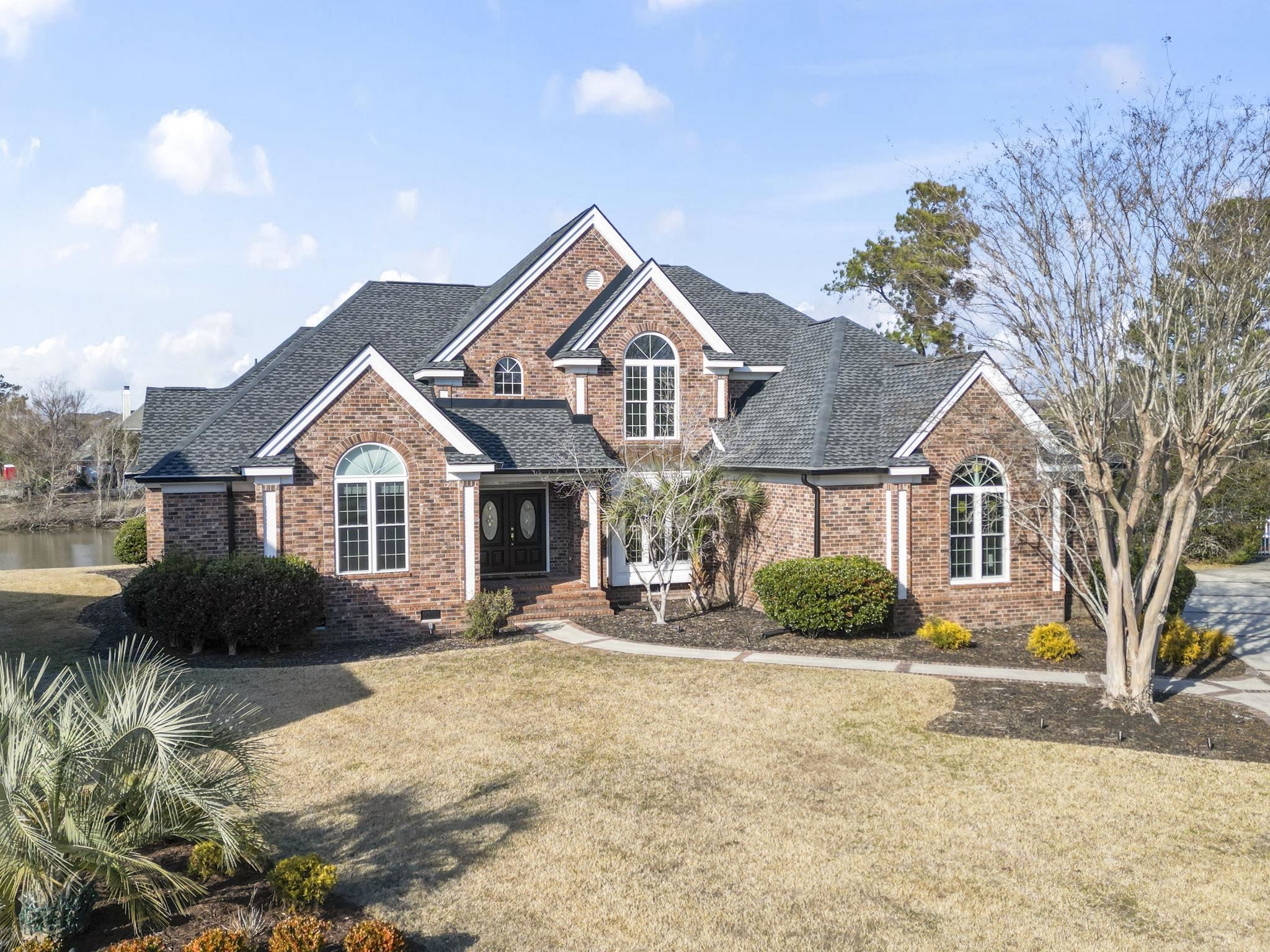 Discover a rare opportunity in Plantation Point - a beautifully updated, well-maintained all-brick 4-bedroom, 4.5 bath home set on a wide 0.81 cul-de-sac lot overlooking Birdfield Lake. Step inside the grand foyer and you're welcomed by a sweeping staircase, crystal chandelier, and immediate sightlines to the water through oversized floor-to-ceiling windows. The main living areas showcase inlaid "picture frame" hardwood flooring, abundant natural light, and a layout designed for both entertaining and every day living. The fully renovated kitchen (2025) is the heart of the home - featuring brand-new upper and lower cabinetry, granite countertops, tile backsplash, farmhouse sink and a new double oven, all designed to maximize storage and prep space. Fresh paint throughout the home, including the garage, creates a clean, move-in ready feel. The main-level primary suite offers peaceful lake views, tray ceilings and a wall of windows that flood the room with natural light. The spacious en-suite bath features a jacuzzi-style tub, dual walk-in closets and plenty of room to unwind. The main level also includes the formal dining room and adjacent dedicated, private office space as well as a family room off the kitchen with fireplace and custom built-in entertainment center. Upstairs, generously sized bedrooms, two full baths, a cedar-lined hallway closet and multiple walk-in storage areas provide flexibility for family, guests or additional home office space. Major recent upgrades add long-term value and peace of mind: brand, new roof with 50-year "gold" level warranty and gutters with leaf guard protection (2025); four new Pella floor-to-ceiling windows (2025); new 200 gallon propane tank; marine-certified bulkhead retaining wall (2024); lawn irrigation and landscaping lighting. The backyard space is a true blank canvas ready to be enhanced with plenty of space for a custom pool, outdoor kitchen and additional patios overlooking the water. Located in one of Myrtle Beach's most established and desirable neighborhoods, this Plantation Point property combines privacy, water views and extensive upgrades in a way that's increasingly hard to find. Make plans today to schedule your exclusive showing!