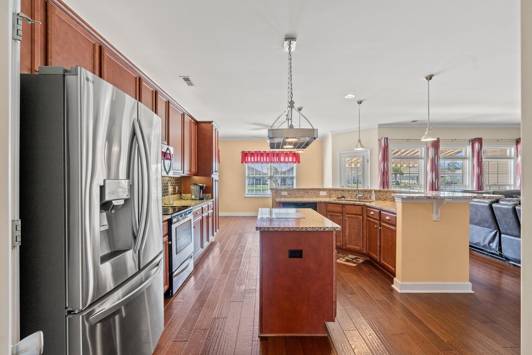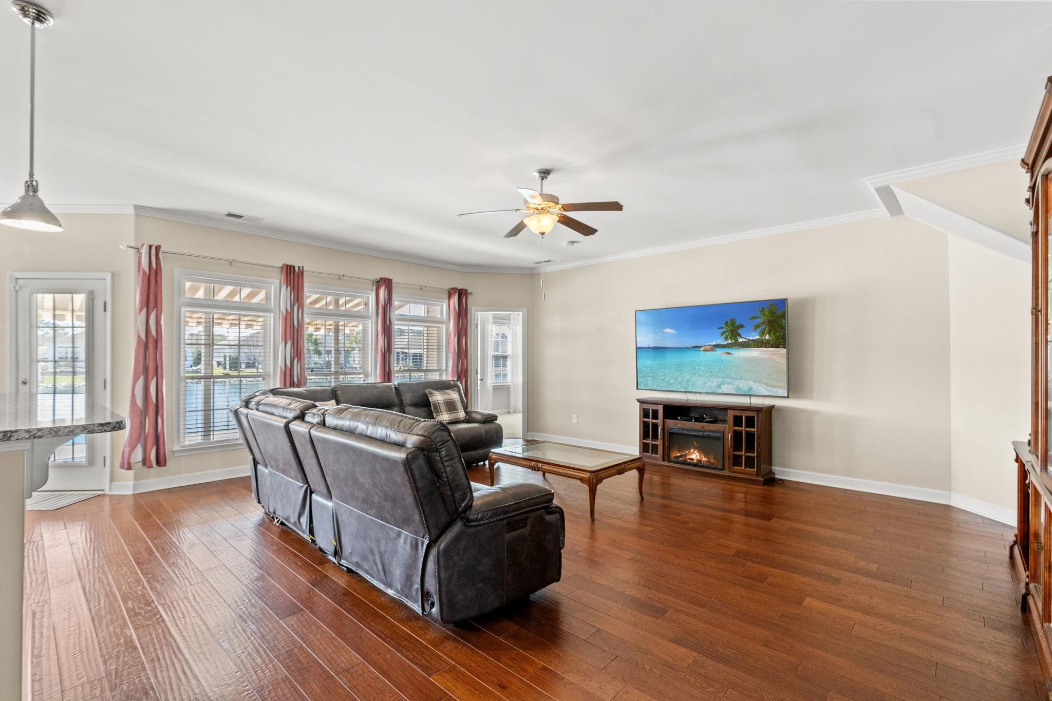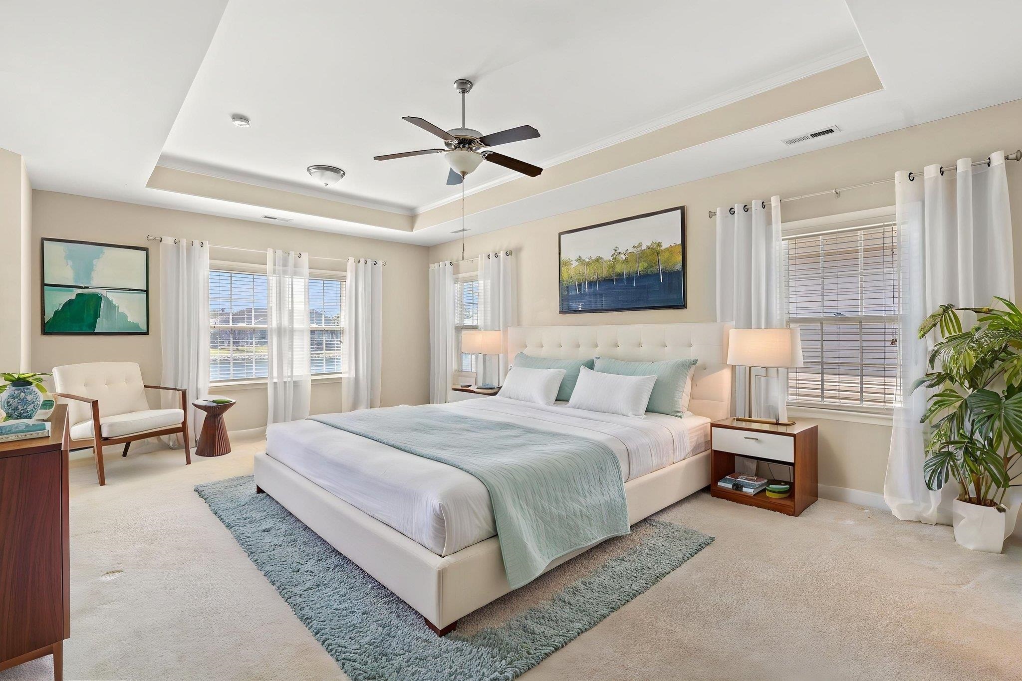 Welcome to this beautifully maintained former model home set on a peaceful lake with four elegant water fountains—perfect for relaxing views every day. This spacious home features a large primary suite with a walk-in closet and a well-appointed bathroom, including a walk-in shower, garden tub, dual sinks, and a private toilet area with a bidet. The kitchen offers 42-inch cabinets, a center island, breakfast bar, and a bright breakfast nook, with an easy flow into both the formal dining room and the open living area—ideal for entertaining. Upstairs, enjoy a generous bonus room, easily accessed with the included Acorn Super Glide stair lift. Recent updates include a refrigerator (2023). The outdoor space is just as impressive, with a covered porch and patio featuring an electric SunSetter shade, plus a built-in PVC sleeve ready for your umbrella. Additional highlights include crown molding throughout, above and below cabinet lighting, a 2-car attached garage, and manual blinds on the back porch. This home offers comfort, style, and beautiful waterfront living—move-in ready and waiting for you. Measurements conducted by a third party. Buyer and/or buyer’s agent is responsible for verification.