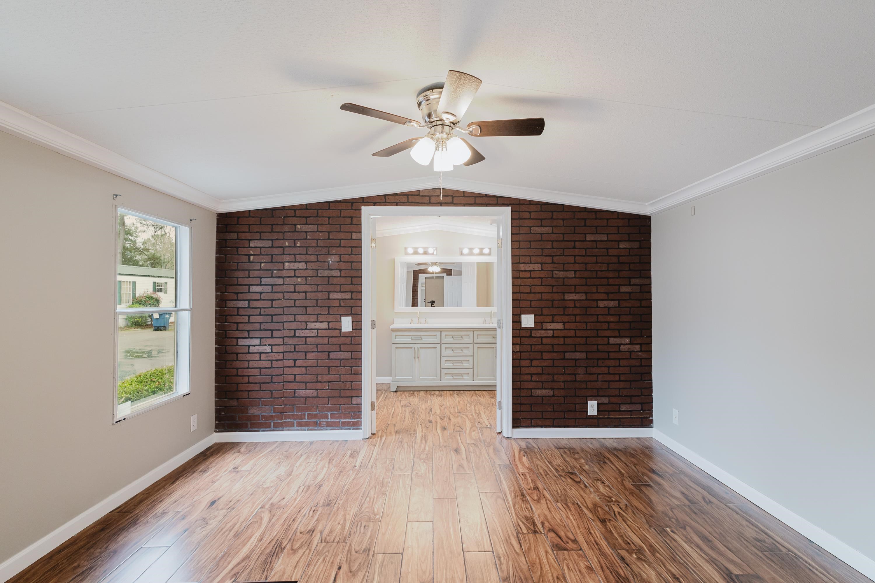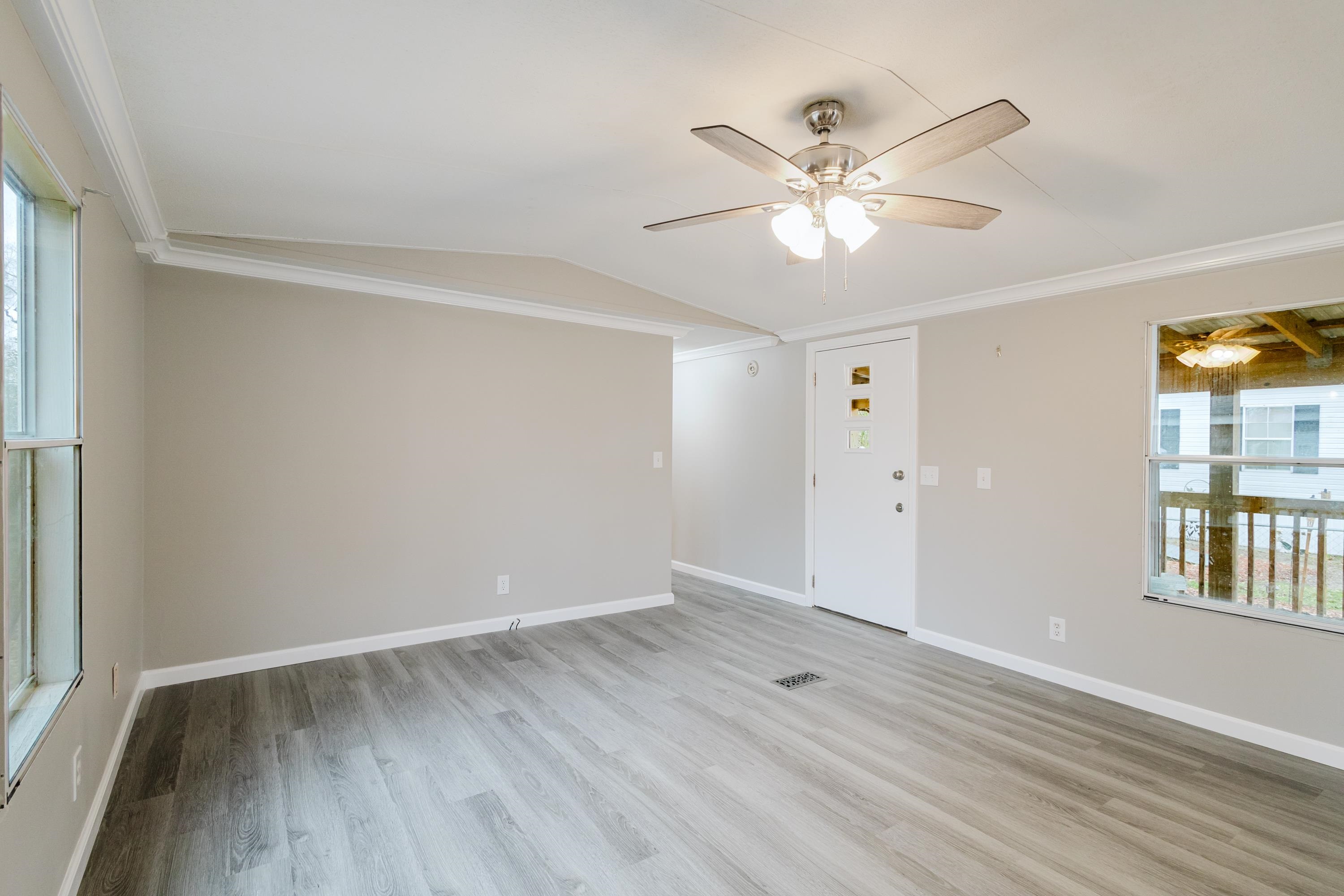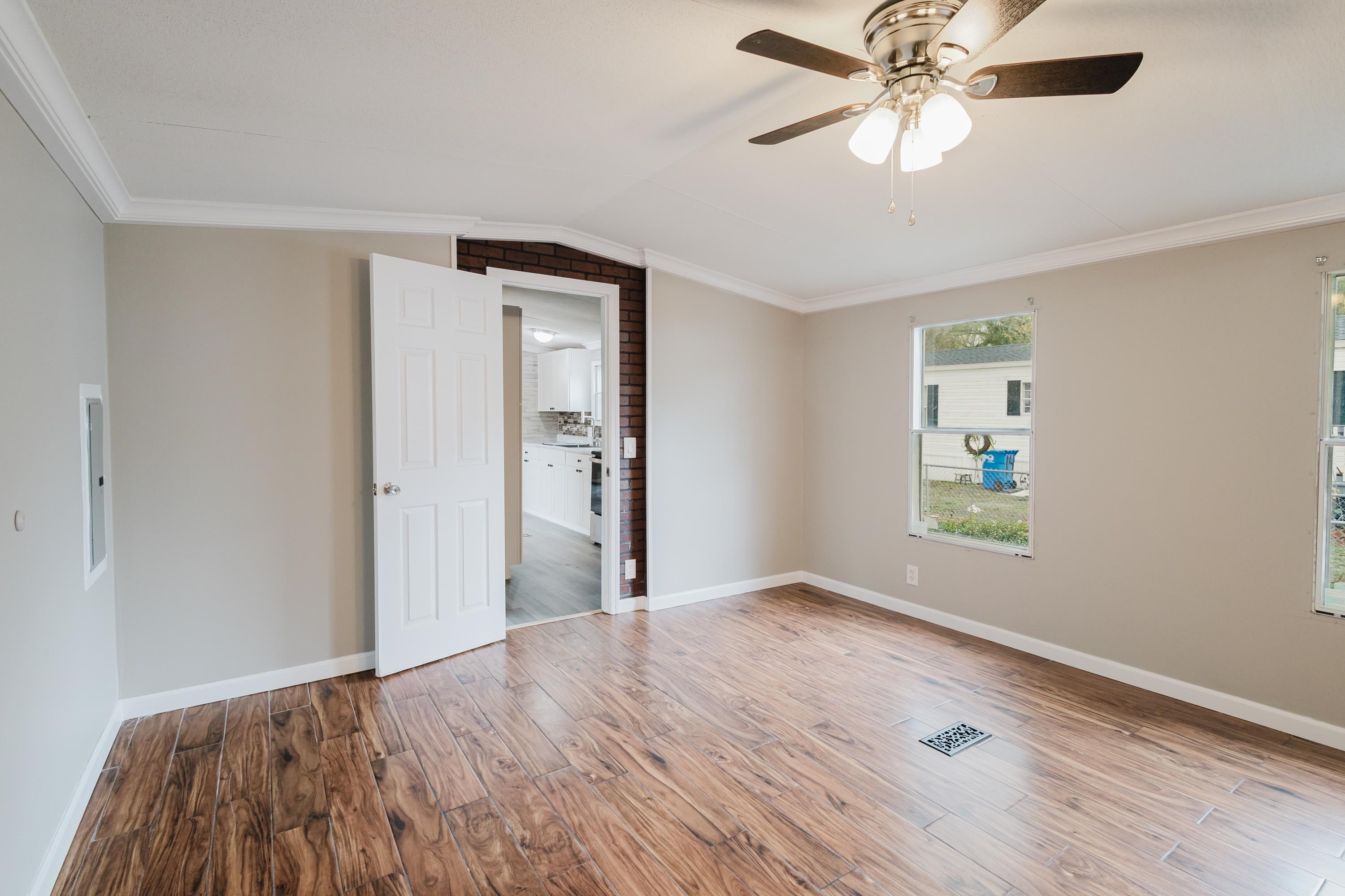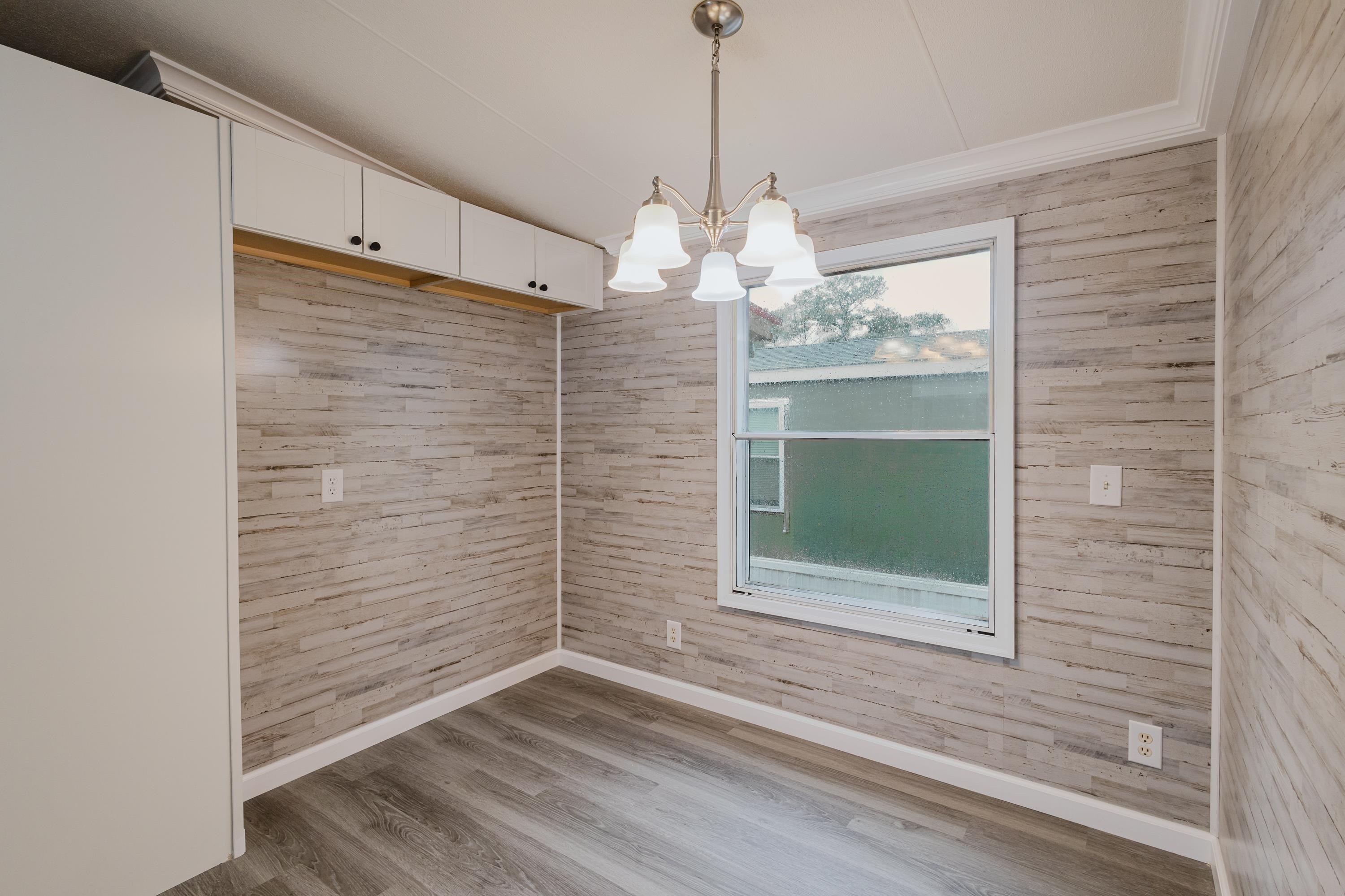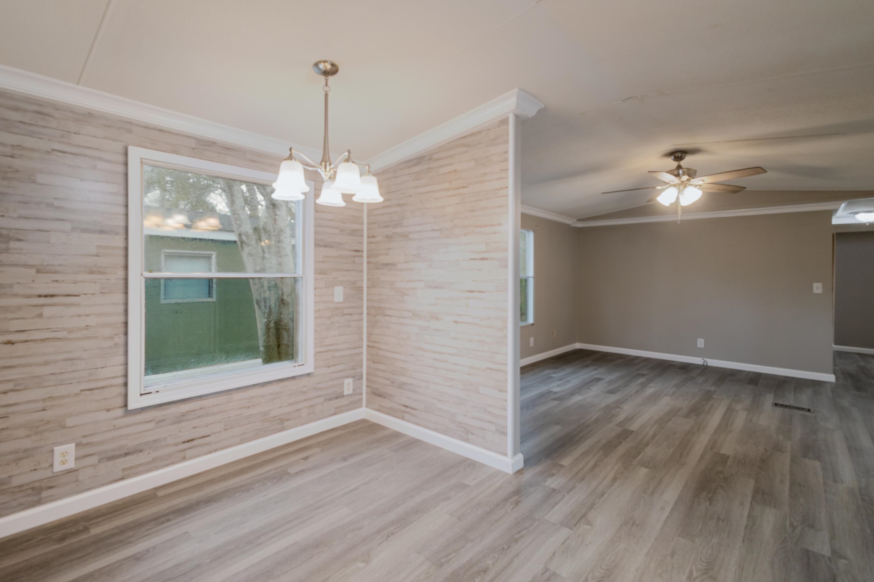 This beautifully renovated 2 bedrooms and 2 bathrooms mobile home is located just 5 minutes from the beach, making it perfect for coastal living or a vacation retreat. The home features a bright and spacious layout with brand-new laminated flooring throughout, crown molding, and updated lighting that gives the entire space a modern, fresh feel. The kitchen has been fully updated with stainless steel appliances, a stylish backsplash, and new cabinetry (with protective film still in place), giving the next owner a like-new experience. Enjoy relaxing outdoors on the large covered front porch or the covered back porch, perfect for entertaining or unwinding after a day at the beach. The property also includes a wired fence along the front side and a durable metal roof for added security and convenience. Additional features include ceiling fans in the living room and bedrooms, a double-sink vanity in the master bathroom, and plenty of natural light that makes the home feel open, airy, and welcoming. A great opportunity to own a move-in-ready home close to the coast!
