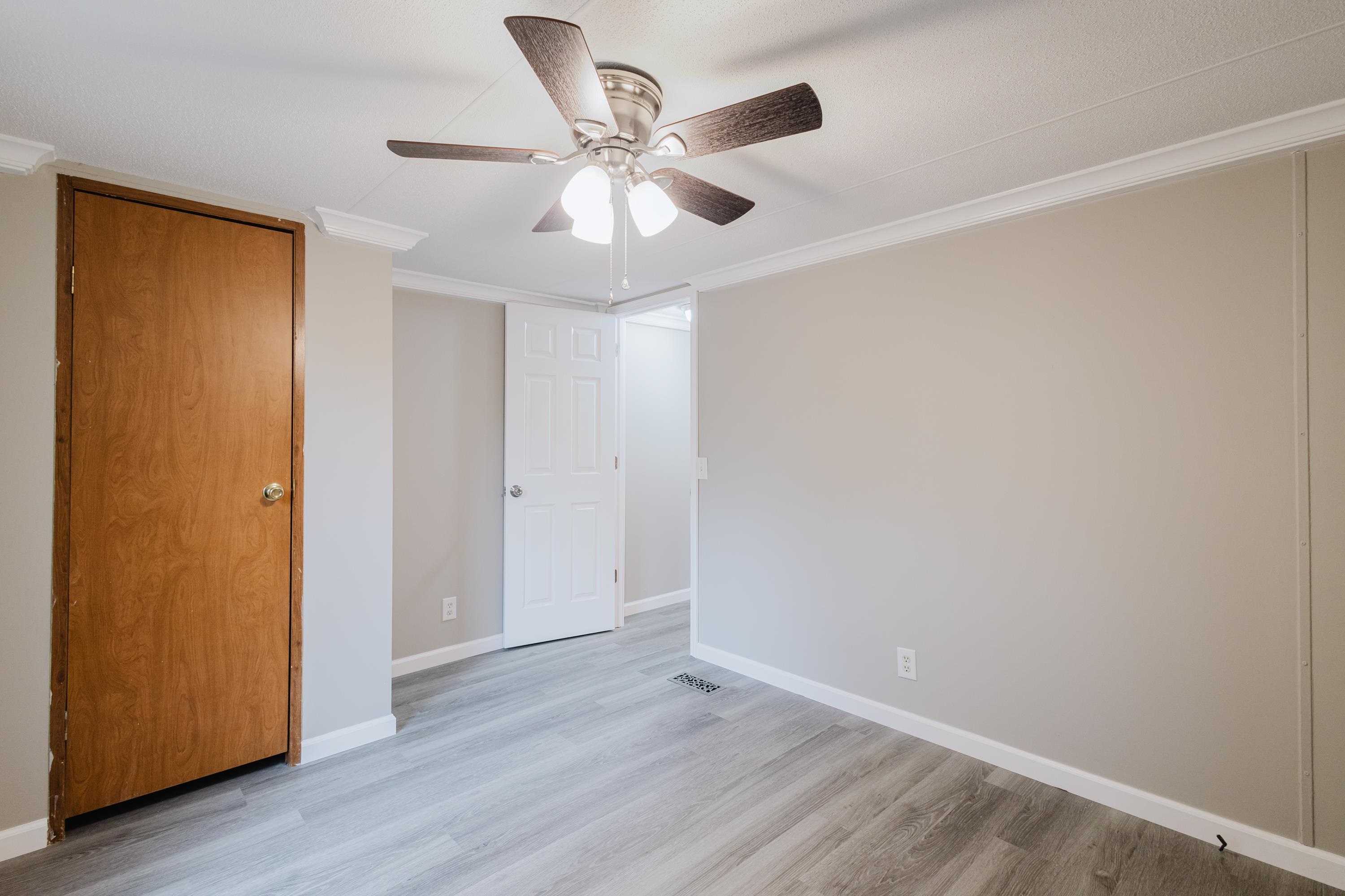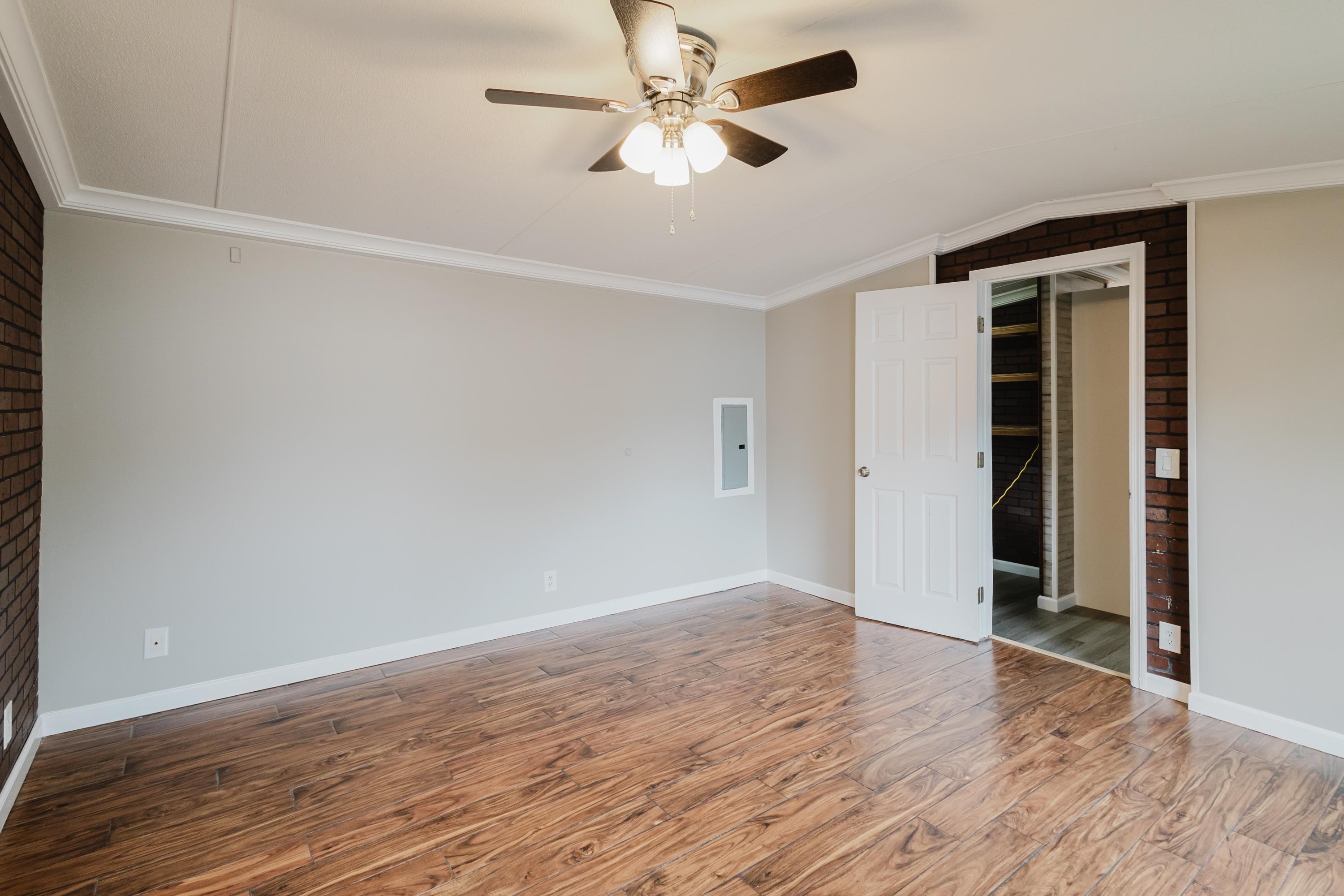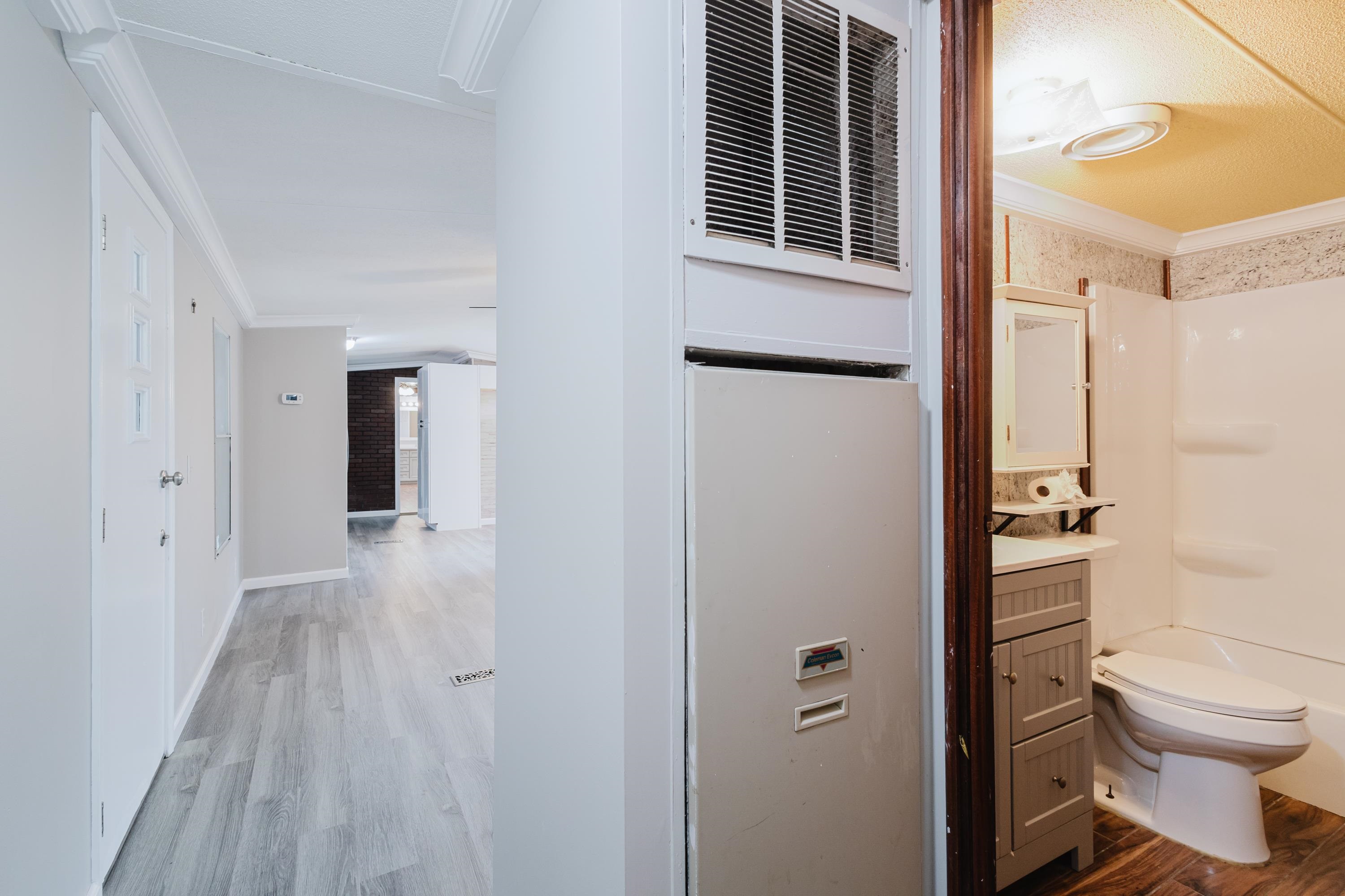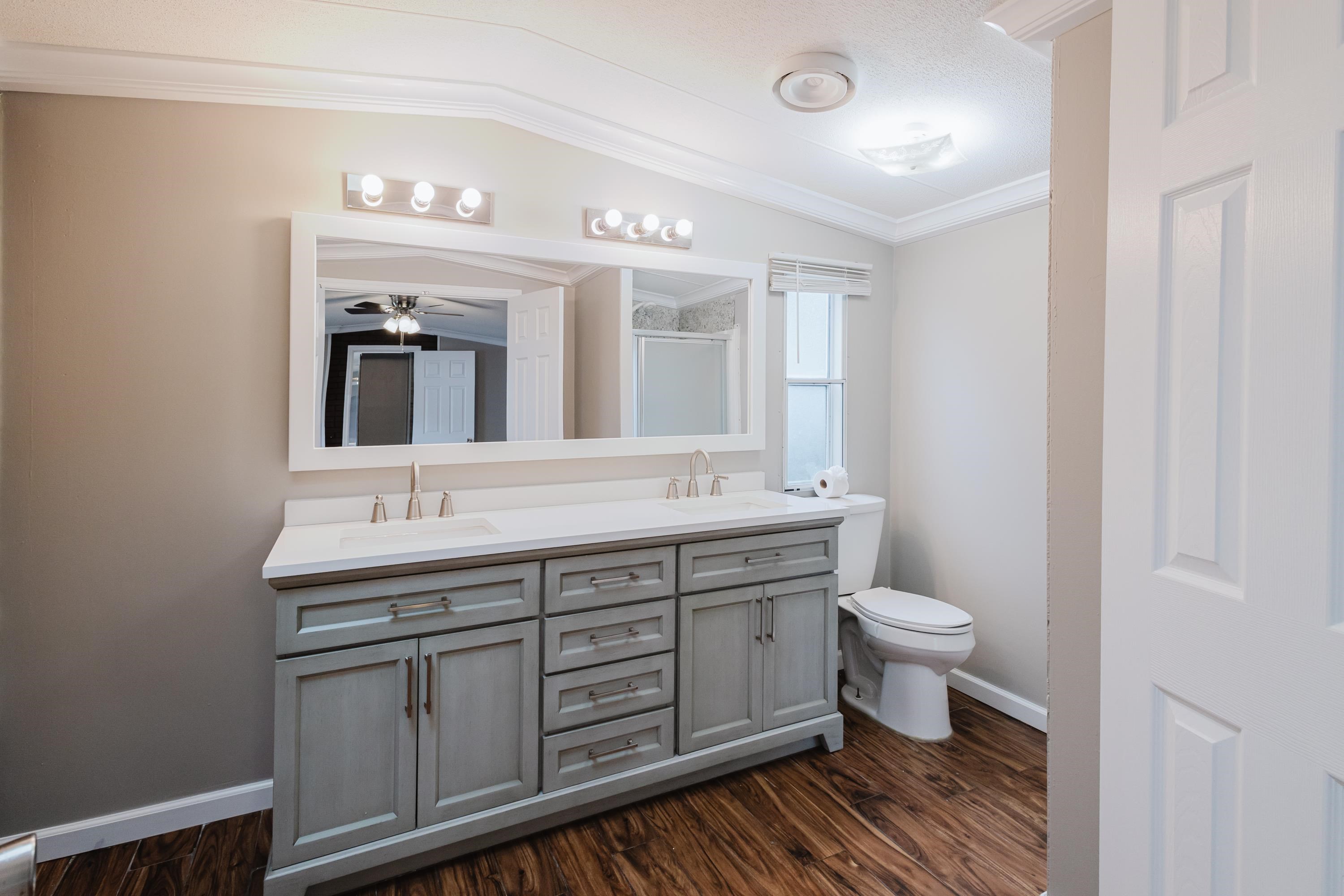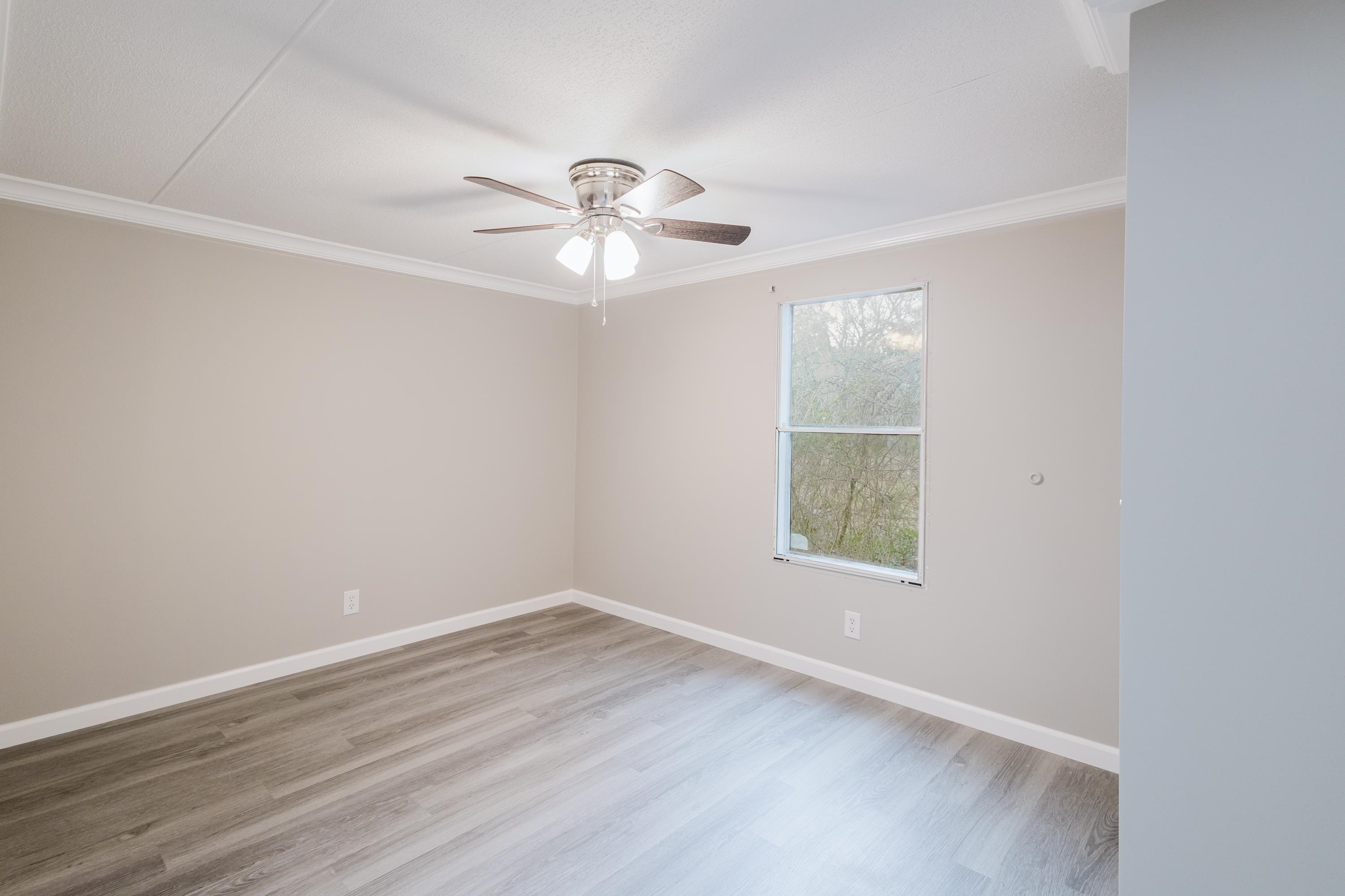 This beautifully renovated 2 bedrooms and 2 bathrooms mobile home is located just 5 minutes from the beach, making it perfect for coastal living or a vacation retreat. The home features a bright and spacious layout with brand-new laminated flooring throughout, crown molding, and updated lighting that gives the entire space a modern, fresh feel. The kitchen has been fully updated with stainless steel appliances, a stylish backsplash, and new cabinetry (with protective film still in place), giving the next owner a like-new experience. Enjoy relaxing outdoors on the large covered front porch or the covered back porch, perfect for entertaining or unwinding after a day at the beach. The property also includes a wired fence along the front side and a durable metal roof for added security and convenience. Additional features include ceiling fans in the living room and bedrooms, a double-sink vanity in the master bathroom, and plenty of natural light that makes the home feel open, airy, and welcoming. A great opportunity to own a move-in-ready home close to the coast!