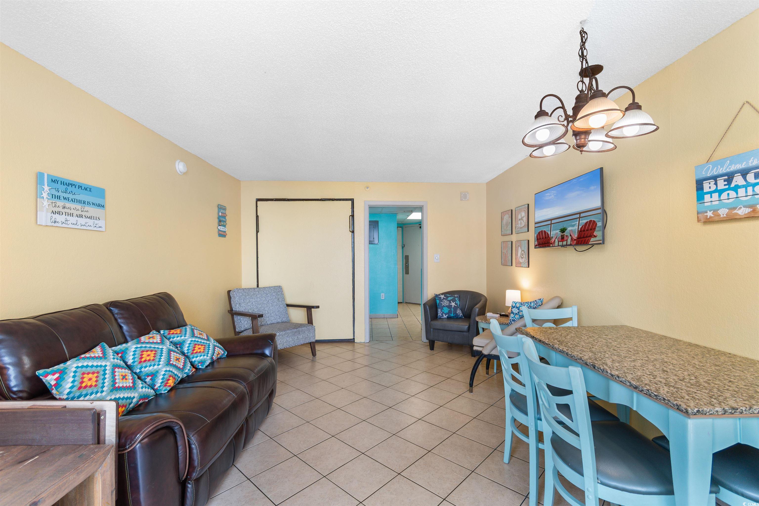 Wake up to ocean views and salty breezes in this true one-bedroom condo right along the shores of Myrtle Beach! With not one, but two private balconies, you'll have the perfect spot to sip your morning coffee or unwind after a day in the sun. The space features fun beachy décor, two queen beds in the bedroom, and a convenient Murphy bed in the living area, perfect for maximizing comfort. The kitchen is equipped for easy meal prep between beach trips. This unit has a strong rental history and has been a favorite for seasonal stays. Whether you're looking for an investment opportunity or your own getaway, this one is full of possibilities! The resort offers plenty to enjoy on-site, including indoor and outdoor pools, a lazy river, a small water park area, and convenient laundry facilities. Whether you're relaxing poolside or splashing with the crew, there's something here for everyone to enjoy between beach strolls.