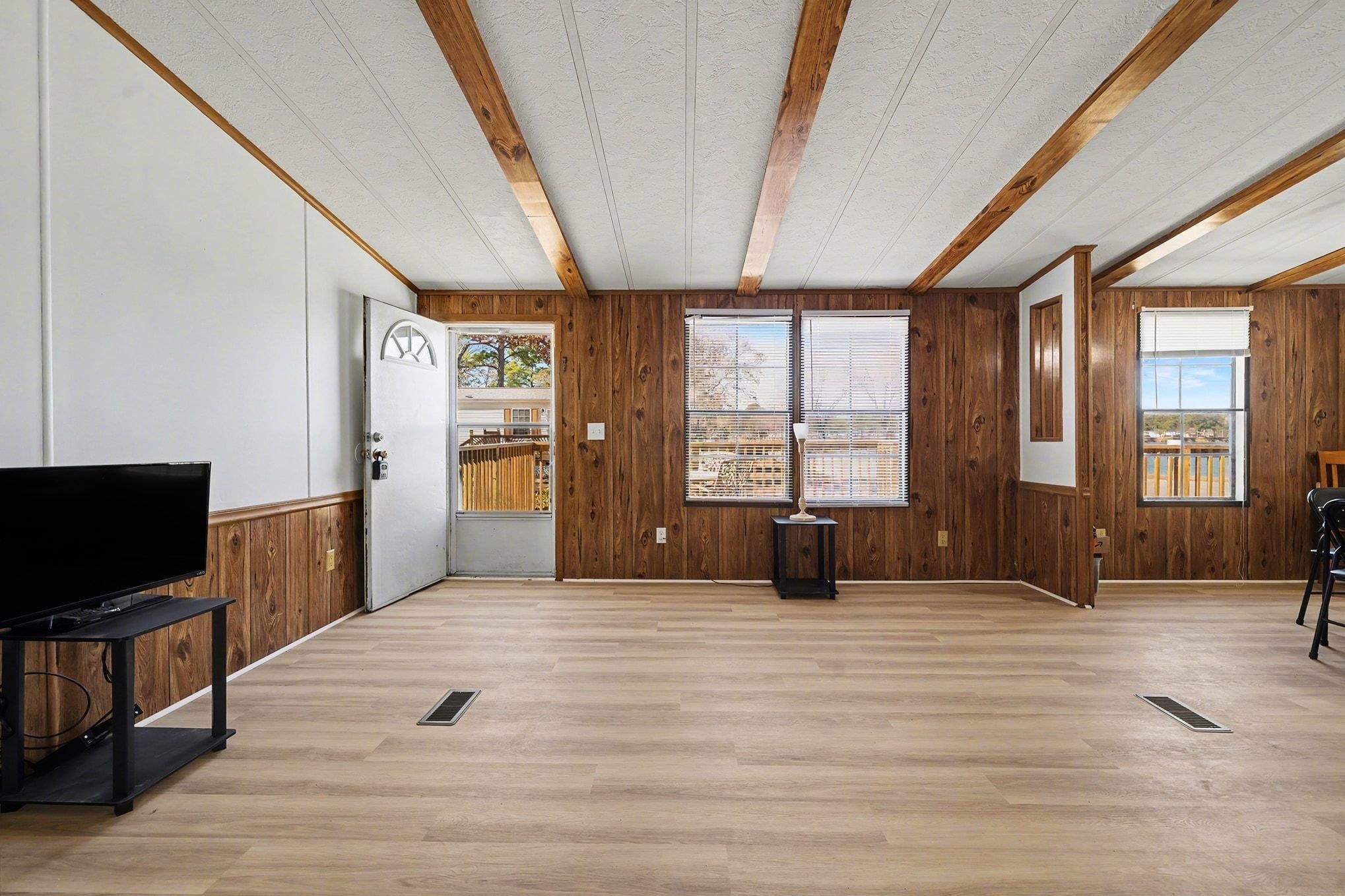 Discover relaxed lakefront living in this beautifully updated 3-bedroom, 2-bath manufactured home in the sought-after Crystal Lake community. Nestled along a scenic 40-acre lake, this property offers stunning water views from every room, abundant local wildlife, and direct access to fishing, swimming, and boating just steps away. Despite its tranquil setting, you’re only minutes from downtown Myrtle Beach, Myrtle Beach State Park, and the Atlantic Ocean. Inside, you’ll find extensive upgrades throughout, including brand-new luxury vinyl plank flooring, new cabinetry, and a fully redesigned kitchen featuring granite countertops and new stainless steel appliances. The spacious primary suite includes a completely remodeled bathroom accented with quartz surfaces, while all bedrooms feature walk-in closets for ample storage. A dedicated dining area enhances the home’s functional, open layout. Modern updates continue with a new HVAC system, new ductwork, and a new water heater, ensuring comfort and efficiency year-round. The main bathroom has also been remodeled, featuring a desirable walk in shower, new vanity Step outside to enjoy a fenced back and side yard, multiple storage buildings, and front and rear decks perfect for relaxation or entertaining. The front deck (approx. 13’ x 18’) includes an accessibility ramp, while the rear deck (approx. 9’ x 16’) overlooks the peaceful lake surroundings. Move-in ready and meticulously maintained, this home is ideal as a primary residence, vacation getaway, or investment opportunity on Myrtle Beach’s picturesque lakefront.