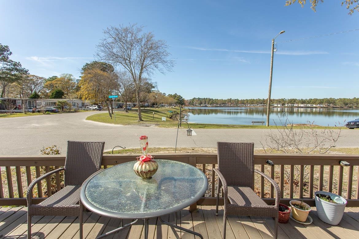 You are going to WANT THIS HOME once you experience the view of the pond from your front deck! In one of the most desired manufactured home communities at the beach, Crystal Lake, this home is ON THE LAKE! And it is close to EVERYTHING, including being close to the beach, Myrtle Beach State Park, great schools, shopping and restaurants and entertainment galore. Come check it out SOON as this home will not last long. Seller has done some upfitting in recent years. LVP flooring, Range, Fridge, Microwave, sink plumbing/ sink and faucet - which all convey including the washer and dryer. The roof has had upkeeping through the years. The Trane HVAC and the hot water heater were installed 2019. Window, Door, Flooring, Insulation, Sealing, Fencing in 2022. Carport 2016. Range, Fridge, and Microwave installed 2025.