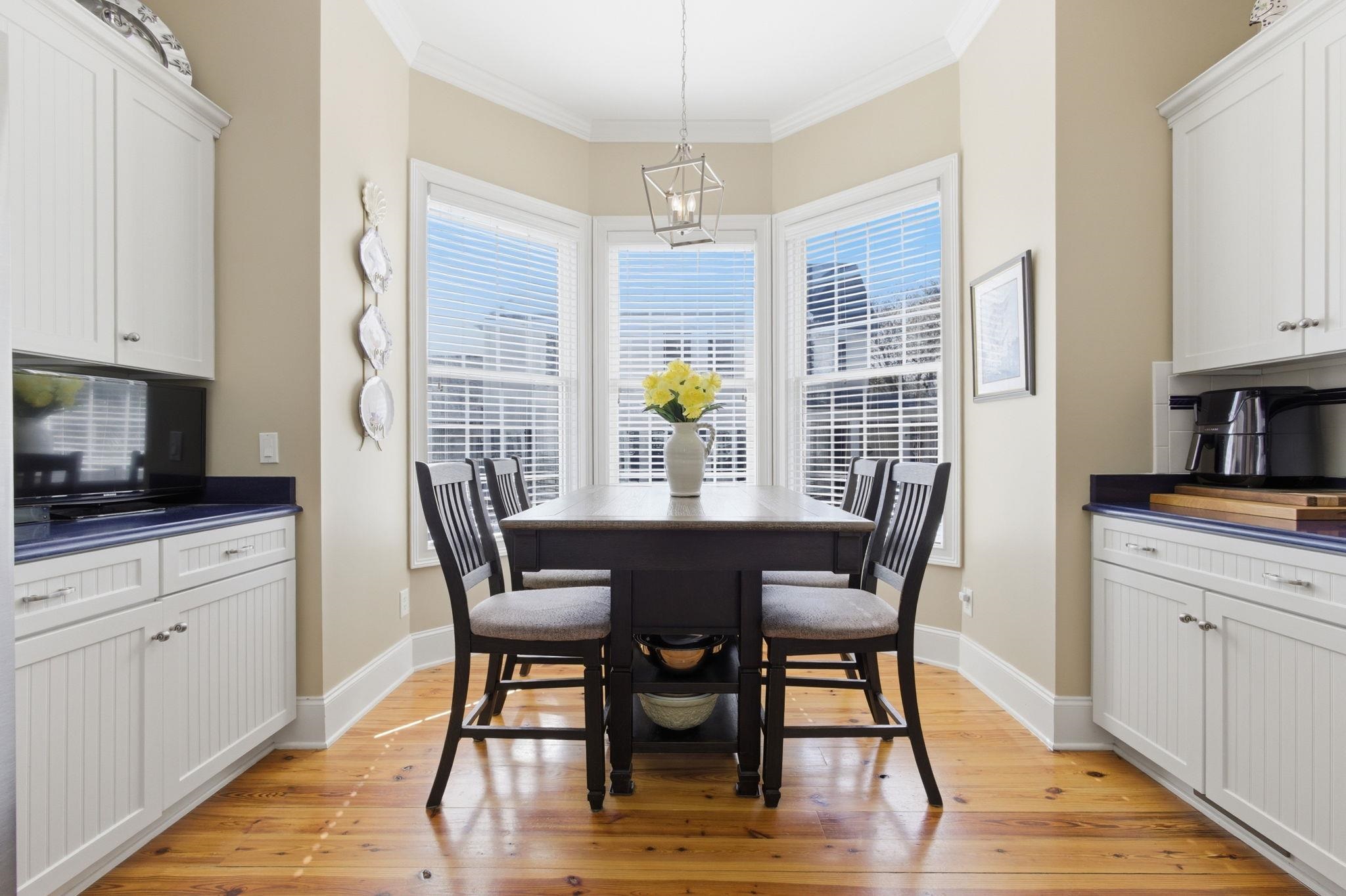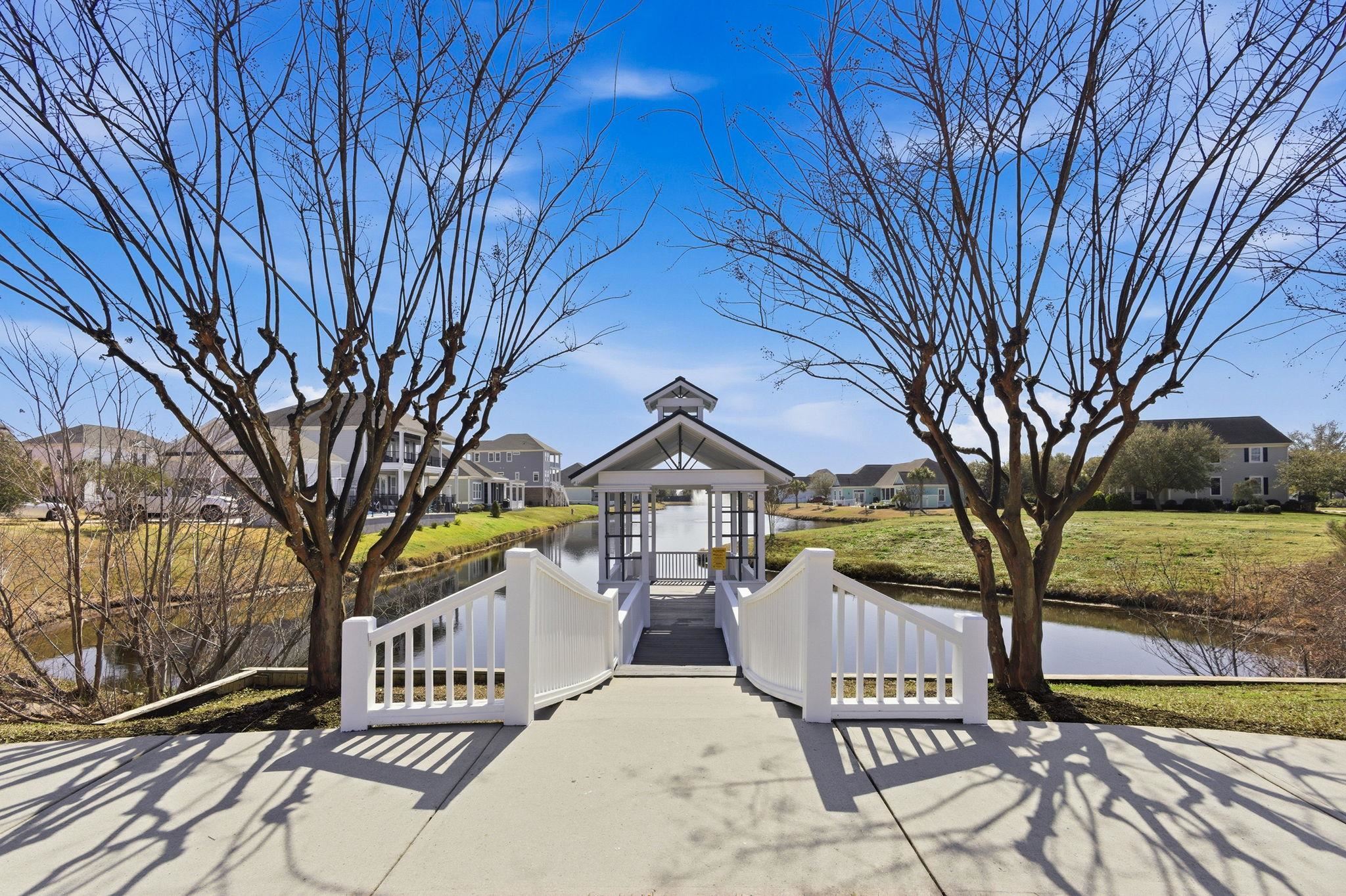 Experience the charm of a true Charleston-style home in the highly desirable Charleston Landing community in the Cherry Grove section of North Myrtle Beach, just minutes from the beach and accessible by golf cart or low-speed vehicle. This beautifully maintained home showcases classic Lowcountry architecture with heart of pine and knotty pine flooring, crown molding, and elegant traditional details throughout. The spacious kitchen features Aquarium solid surface countertops, KraftMaid cabinetry, tile backsplash, bar seating for two, Bosch dishwasher, stainless steel stove and microwave (replaced 2 years ago), LG refrigerator new in 2026, pantry, coffee bar area, and a charming bay window breakfast nook. A formal dining room with detailed molding provides an elegant space for gatherings, while the inviting living room offers knotty pine flooring, double ceiling fans, and a gas fireplace. The primary suite features crown molding, a walk-in closet with custom built-ins, and a spa-inspired bathroom with heart of pine flooring, double sink vanities with granite countertops, a corner jetted tub, glass-enclosed standing shower with new glass door, linen closet, and private toilet closet. The main level also includes a half bath with pedestal sink and a laundry room with tile flooring, granite countertop workspace, and additional storage. Upstairs offers three bedrooms, two bathrooms, a hallway linen closet, and porch access, while the third floor bonus space with vaulted ceilings and carpet flooring provides flexible living or recreation space along with a large storage closet. Additional features include a metal roof with approximately a 70-year lifespan, two HVAC systems (upstairs replaced Jan 2026), two water heaters, termite bond with Strand Pest Control, sprinkler system, arbor-covered back porch, and a detached two-car garage with pull-down attic storage—a rare feature as this was one of the first homes built in the community. Located in Charleston Landing, one of North Myrtle Beach’s most sought-after coastal communities, residents enjoy beautiful Charleston-inspired homes, elegant landscaping, a neighborhood pool overlooking the marsh, clubhouse, playground, basketball court, gazebo-lined ponds, and a peaceful atmosphere with no short-term rentals allowed. The adjacent lot is also available for purchase, offering a rare opportunity for added privacy or future expansion in this luxury coastal community just minutes from beaches, golf, shopping, and dining in North Myrtle Beach.