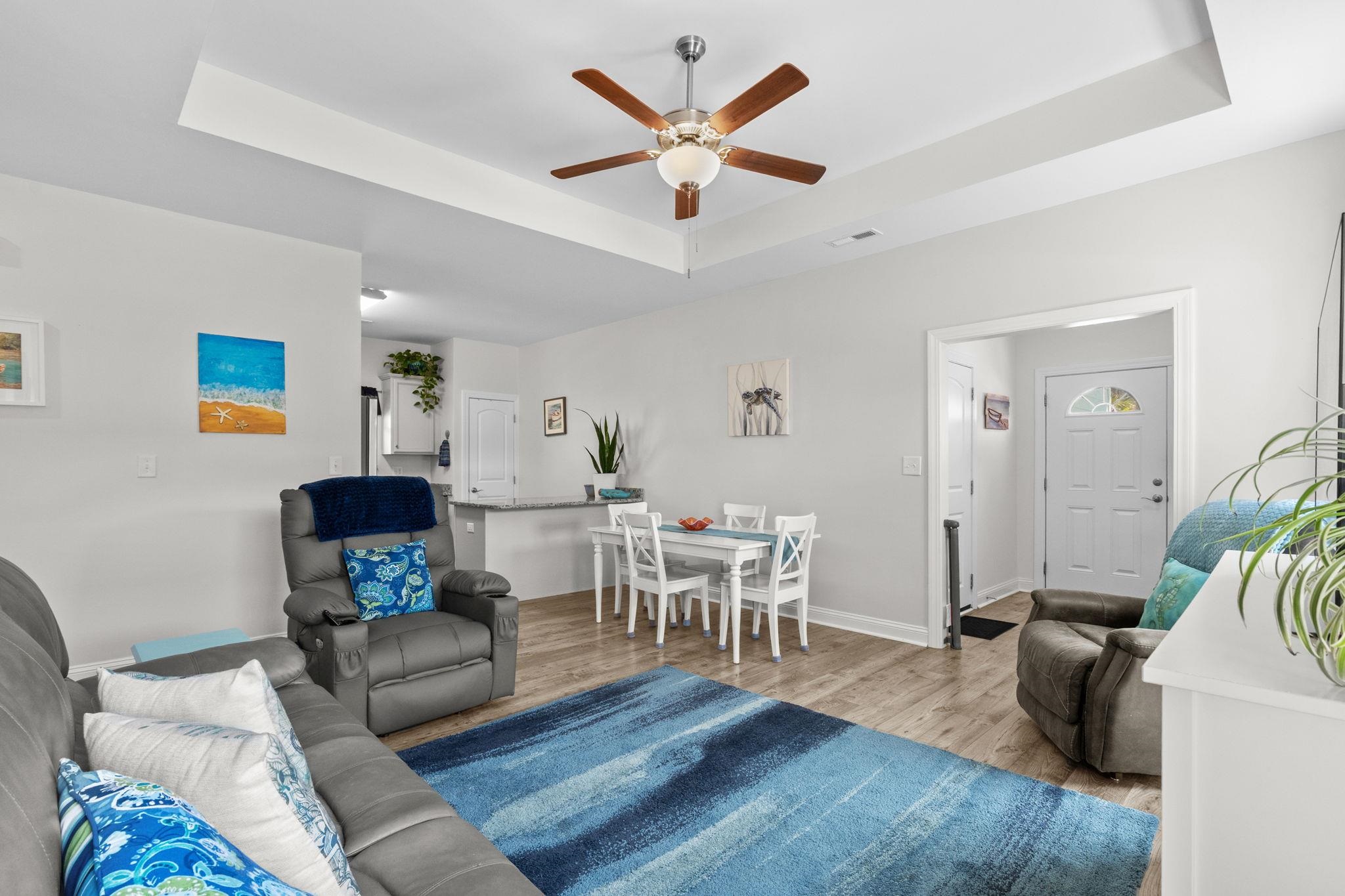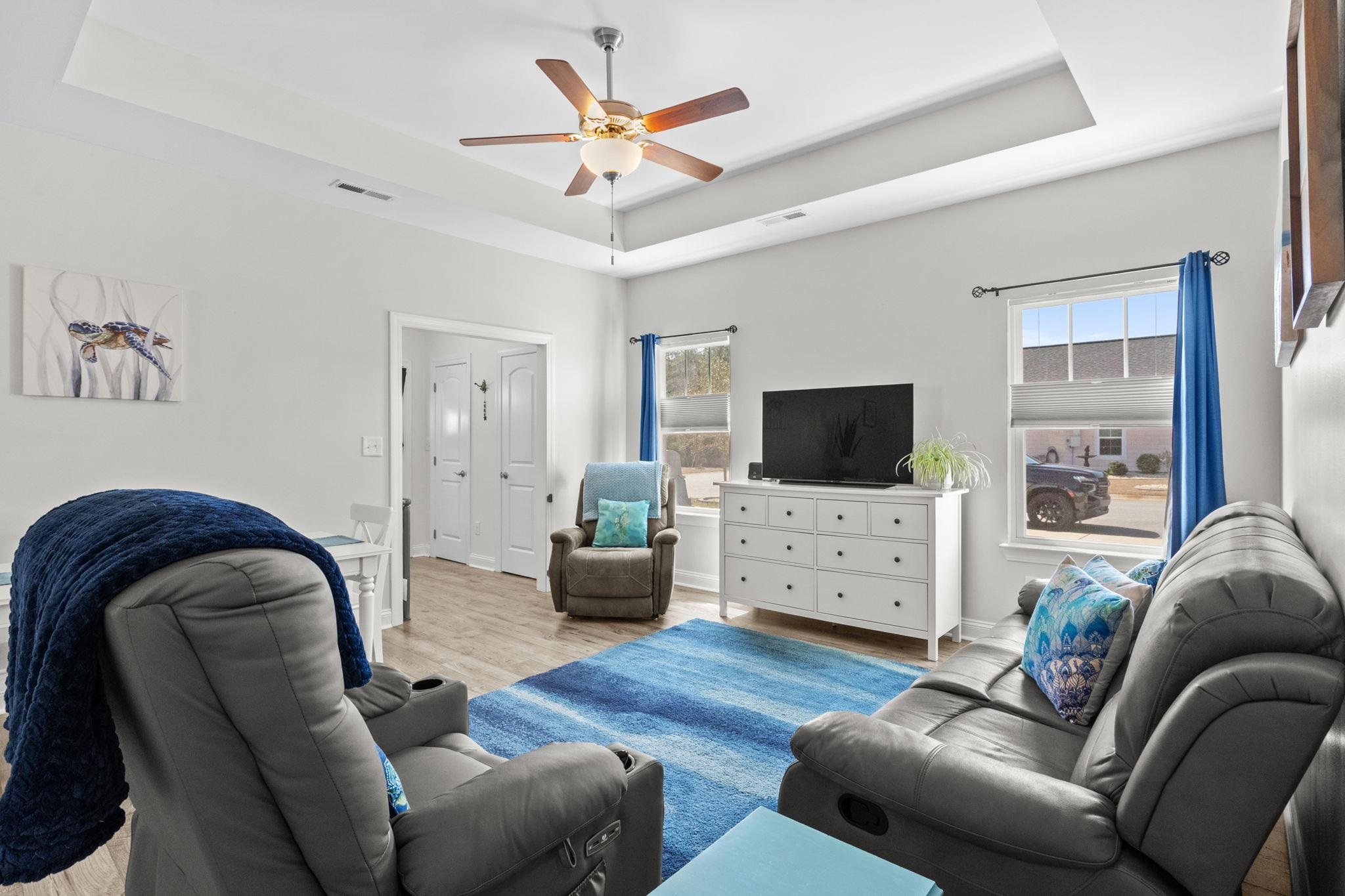 Easy living at Carsens Ferry in the fun-filled town of Conway, South Carolina. This master planned natural gas community brings to you a 5 year old home with HardiPlank exterior and lots of light inside. Don't miss the sunny pool overlooking a scenic lake - or lounge inside the clubhouse for a game or happy hour with friends. This low country cottage offers 3 bedrooms, 2 bathrooms, 2-car garage, a screened porch, patio and fenced backyard overlooking trees. The peaceful feel cannot be beat! Inside you will find custom window blinds, tray ceiling, granite counters, an easy-entry shower, and LVP floors (no carpet here!) Located on a corner lot within a park-like setting that includes sidewalks, beautifully designed streetscapes and front porches. Located near schools, colleges, hospital, medical and about 20 miles to the beach! The expanded River Walk connects to restaurants, park, marina, spectacular planned festivities, farmers market and more. Check out the virtual tour with interactive content and see the difference.