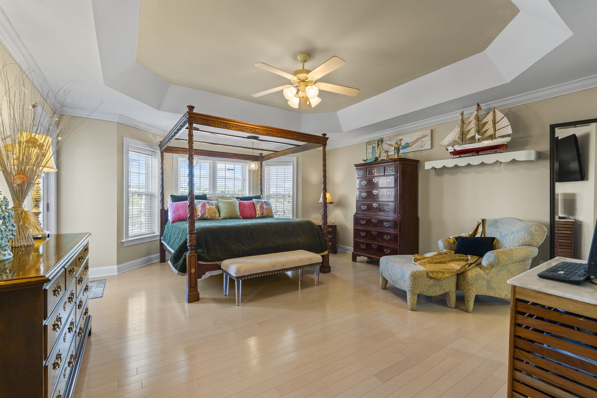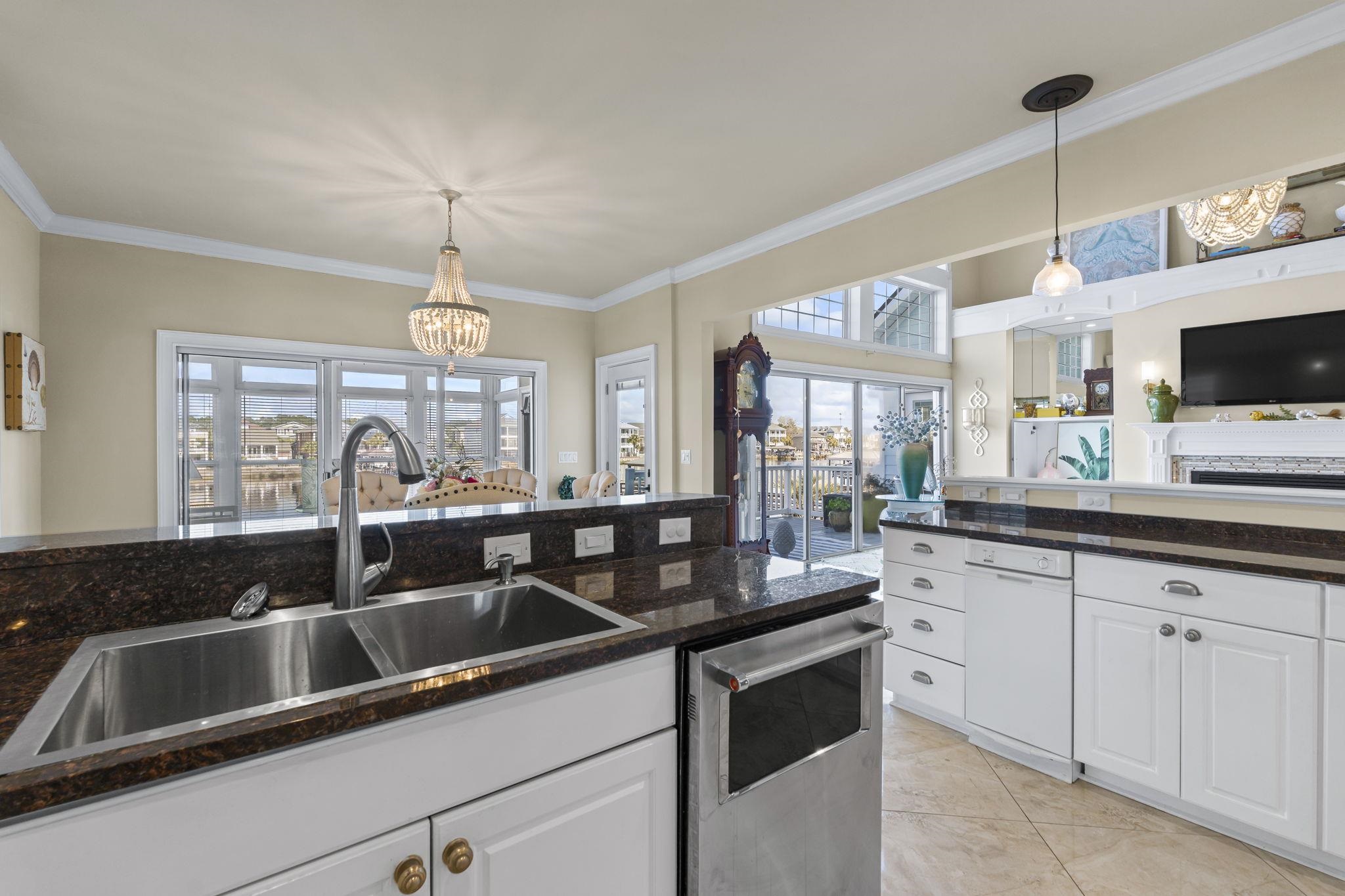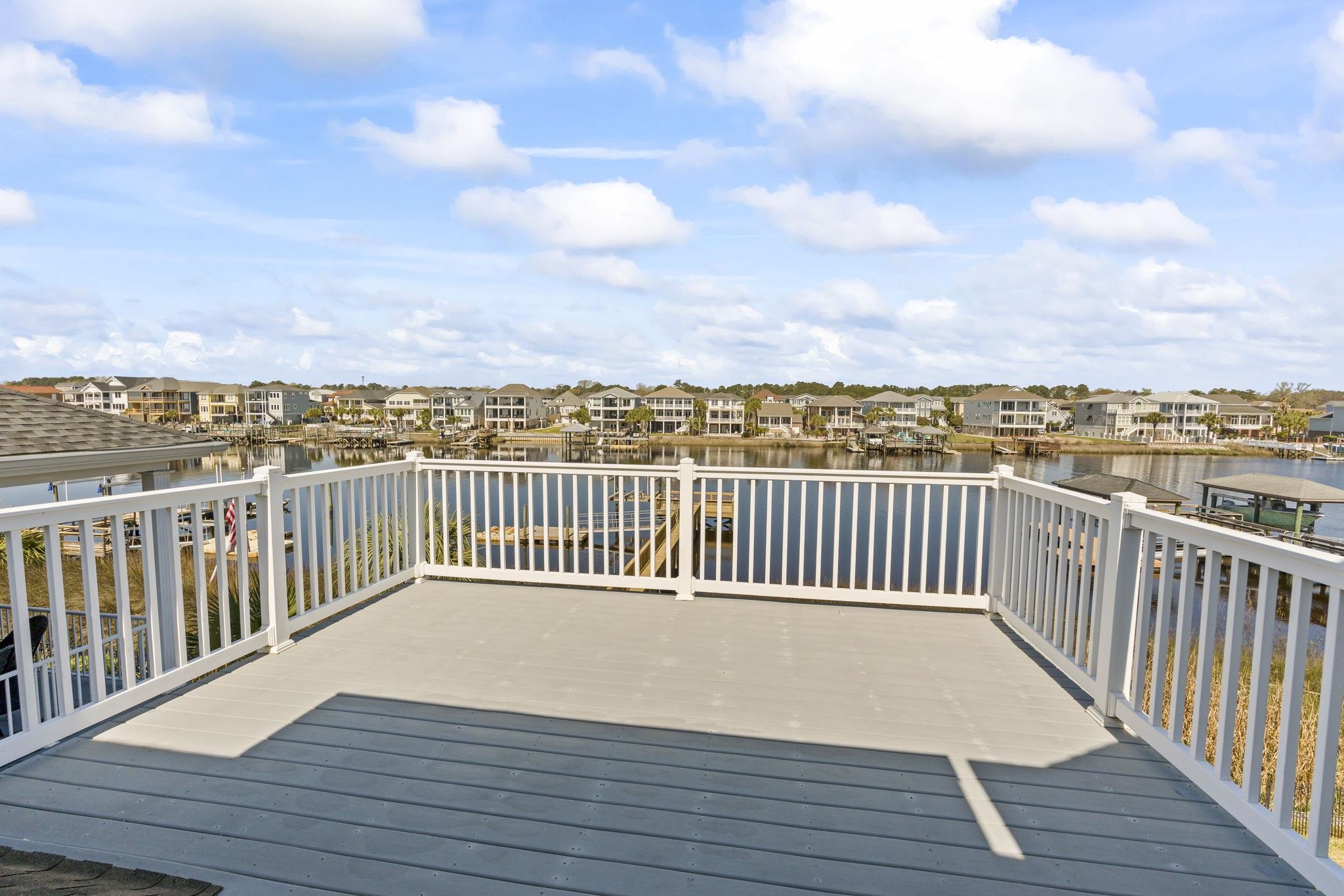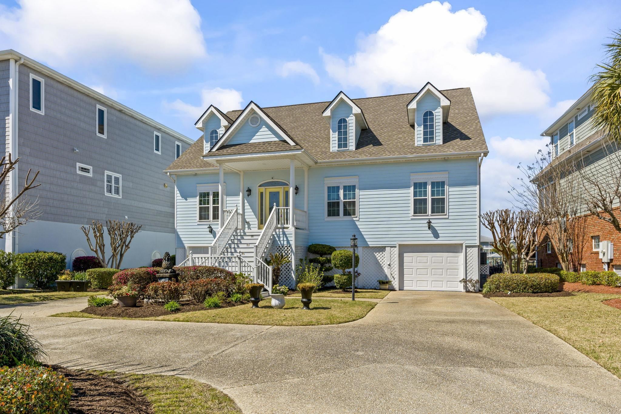 When coastal glam meets southern charm, you will find this stunning estate in Sunset Harbour of North Myrtle Beach. This is your moment to experience the pinnacle of waterfront living as this home is directly on the Intracoastal Waterway, it comes with a shared dock already in place and ready for your boat lift. This is a mariner's dream! Inside, the home radiates sophisticated charm with formal living and dining rooms that greet you upon entering. However, you can't help but be captivated by the views of the Intracoastal Waterway in the wide open classy family room, gourmet kitchen, large breakfast area and cozy Carolina room. This home was truly designed for grand scale entertaining. Also located on the main living floor is one of three primary suites in the home. It is a fabulous space, tremendous in size and so well appointed with high end Alaskan white hardwood floors. Additionally, you will find a 1/2 bath and large laundry service room with tons of storage and space. The marvelous and unique third floor has a catwalk that overlooks the front entry, family room and of course those views of the waterway. You will also find two other large primary suites with attached baths. One of the suites boasts it's own balcony for quiet sunsets, cocktails and yacht watching. There is also a well sized flex space that could easily be converted into a fifth bedroom. We can't forget to mention there is a huge walk in storage area as well. Moving down to the ground level, you have two garages that are large enough to fit all of your toys! A boat, vintage car, motorcycles, golf carts...whatever it is, this home offers that space with ease. You also have a heated and cooled workshop for those who love to be creative and a bonus space fit for a billiard room, guest space, or media room. It's up to you to decide and enjoy. Beyond the workshop is a partially enclosed storage area that could easily be converted into an outdoor kitchen of your dreams. The yard is substantial and your canvas to create your own oasis. And if that dream backyard oasis includes a pool, you won't have to worry about your visitors, because there is a half bath on this ground floor too. So, whether you're heading out for that sunset cruise on the waterway or taking a quick golf cart ride to the beach to watch the sunrise, the best of the coast is at your doorstep with this estate. Being so centrally located in North Myrtle Beach, there are many dining establishments and boutique shopping experiences just a short golf cart ride away. Sunset Harbour offers first class amenities that include a swimming pool, hot tub, day docks, boat launch, gazebo, and recreational vehicle parking. Hurry and call your trusted Realtor partner to schedule your private showing now.