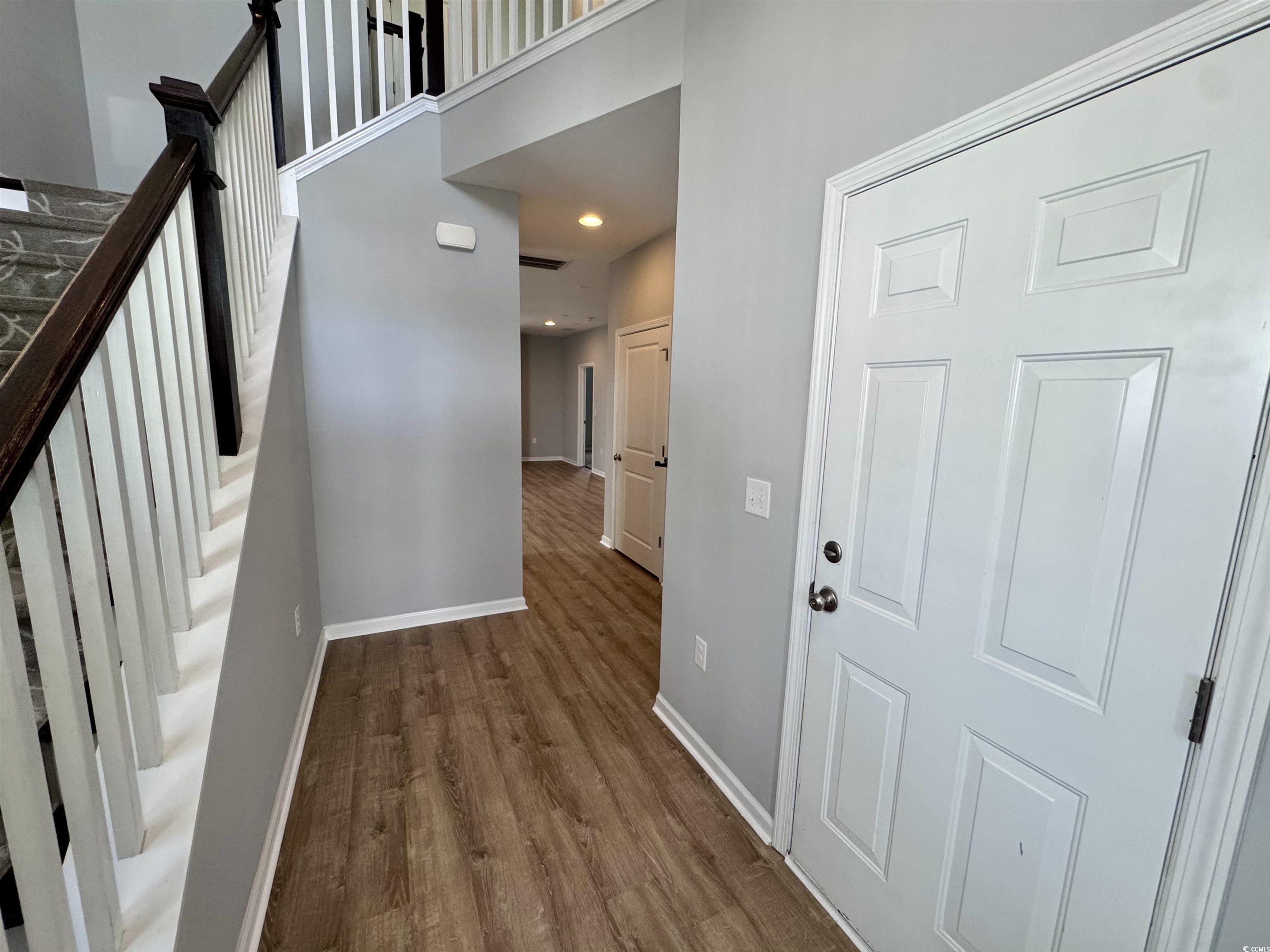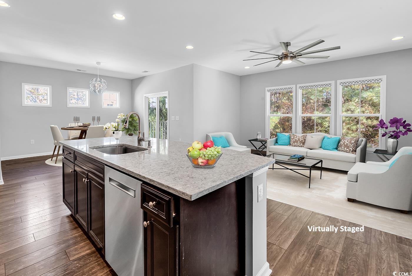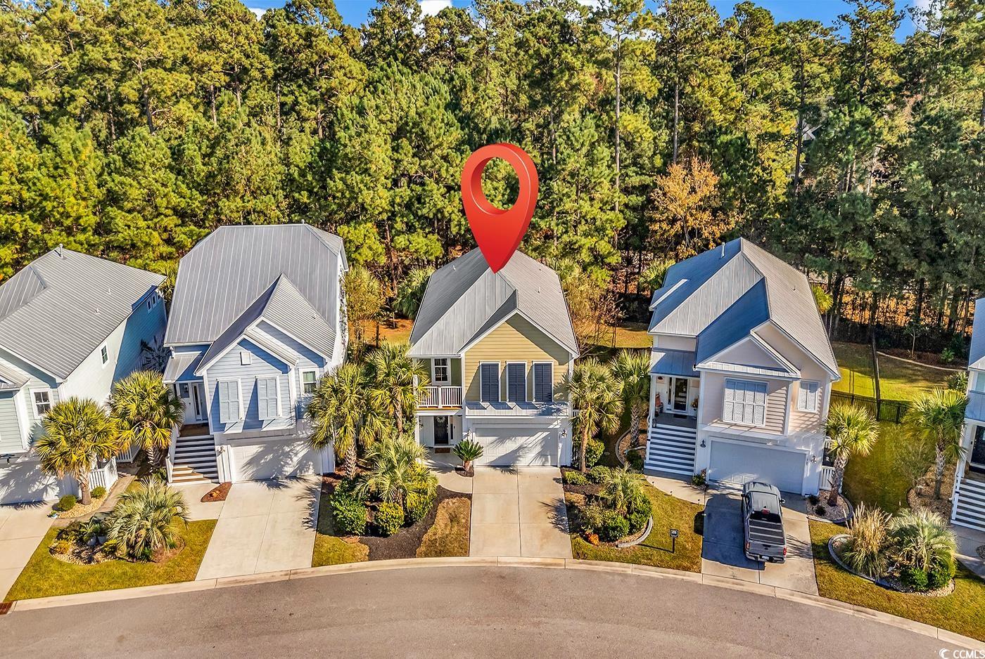 Talk about bang for the buck! This immaculate raised beach style home is located in sought after Wilderness Pointe at Prince Creek. Exterior features Hardi-Plank siding, metal roof, and wind resistant windows throughout. There are two living areas! On the top floor you will find the main living area which leads into a very open kitchen/dining area, laundry room, and primary bedroom suite. Kitchen has quartz counter tops, wood cabinets, gas range and work island with sink & breakfast bar. The primary bedroom suite has a stand up shower with glass door, soaking tub, double vanity, generous walk-in closet and private water closet. There are 2 covered porches on the upper level - one off the primary suite and one off the living/dining areas. The secondary living space (2 bedrooms/1 full bath and large flex room) is on the ground floor along with the 2-car garage. Each room on this level has a ceiling fan. LVP flooring in all living areas. This home is ELEVATOR-READY so you could access both levels using the space built into the interior for this purpose...or utilitize the HUGE closet spaces this built-in area affords. The back patio and balcony have a view of the private wooded backdrop and your fully fenced backyard. Wilderness Pointe is a natural gas community and also has access to The Park at Prince Creek West which has an amazing amenities center offering two pools, 6 pickleball courts, tennis courts, bocceball, horseshoes, basketball court, picnic tables, covered fireplace, playground and walking trails. The community is located close to shopping, dining, entertainment, The Marshwalk, Brookgreen Gardens, Huntington Beach State Park, hospitals and is a quick ride to the beach. St. James Schools. Some photos are virtually staged. Square footage is approximate and not guaranteed. Buyer to verify.