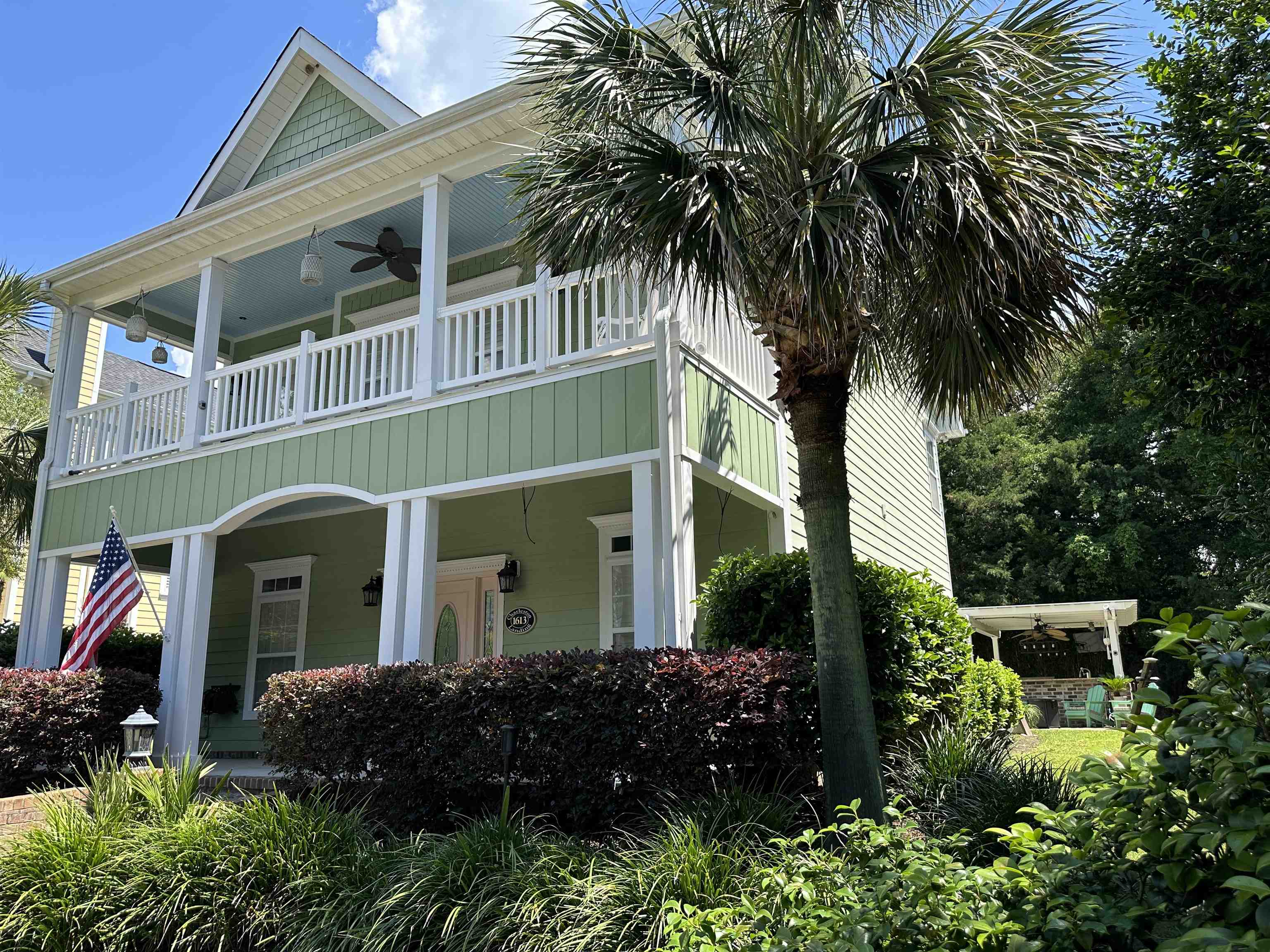 Lowcountry style home featuring double front porches reflecting the bespoke Charleston style architecture. Short golf cart ride to lovely Cherry Grove Beach. The first floor features, hardwood flooring, exceptional millwork with oversized baseboards, wainscoting in the formal dining room, dentil crown moulding and fluted pilaster door casings rarely found in newer construction. Ionic columns and detailed moulding flank the living room fireplace surround. Plantation shutters throughout. The kitchen is designed for both functionality and style, complete with stainless steel appliances, granite countertops, a large breakfast bar, a cozy breakfast nook, and a sizable panty. Bedrooms are located upstairs, including the spacious primary suite with a luxurious bath showcasing double vanities, an oversized tiled shower, and a jetted soaking tub. Step outside to the side yard retreat featuring an outstanding outdoor kitchen/entertainment area under a shady pergola. Charleston Landing enhances your lifestyle with community amenities that include a marsh-front pool, clubhouse, playground, and gazebo. Tucked away in a peaceful North Myrtle Beach neighborhood,this home offers quick access to Cherry Grove Beach, McLeod Seacoast Hospital, and all the shopping, dining, and entertainment of North Myrtle Beach and Little River. Whether you're looking for classic Southern elegance or everyday convenience, this home delivers both!