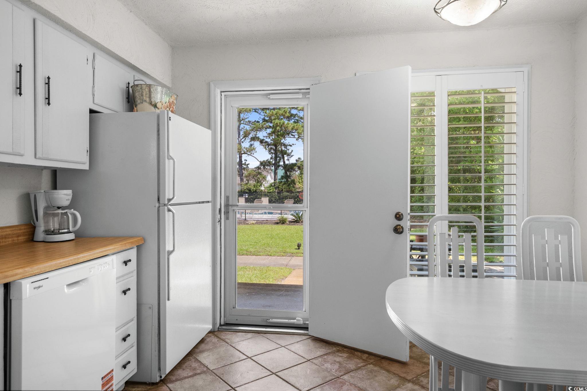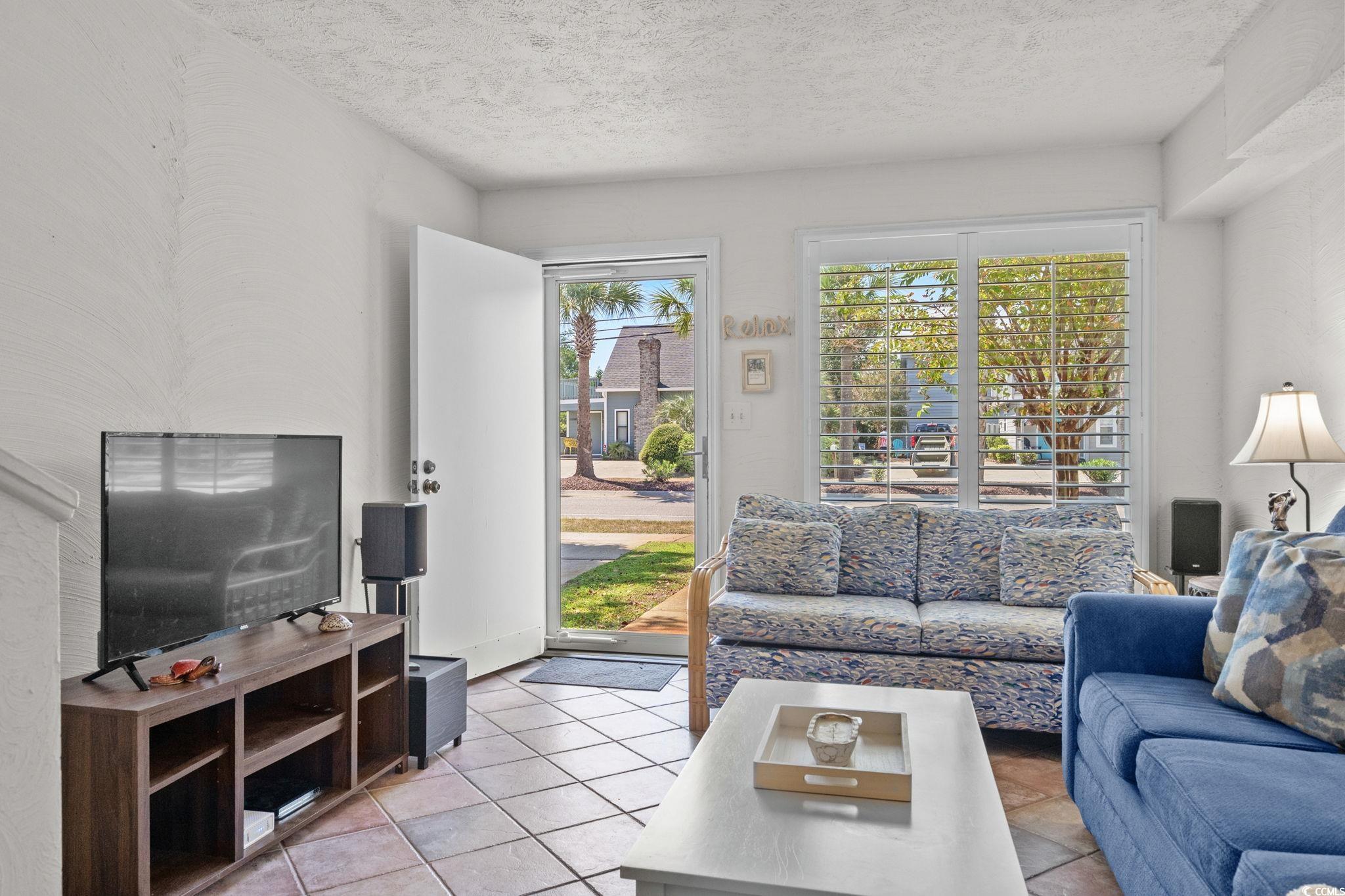Welcome to Sundowner, an exclusive townhome community in North Myrtle Beach featuring just 14 units, a community pool, and a short walk to the beach. This 2-bedroom, 1.5-bath true townhome centers around a bright kitchen with a cozy eat-in nook. The open living area is filled with natural light, creating a welcoming space to relax or gather. Venture upstairs to discover two generously sized bedrooms, each designed with comfort in mind, including ceiling fans and ample closet space. The outdoor space is equally impressive with cozy patio, perfect for grilling, and overlooks the outdoor pool. Additional highlights include newer vinyl siding, windows and doors, and a roof replacement completed in 2018. Sundowner Townhomes boasts a central location that puts you within easy reach of shopping, dining, entertainment, and the beach. With low HOA fees, this turnkey property offers a hassle-free lifestyle. Enjoy the coastal charm of Crescent Beach—schedule a showing today!