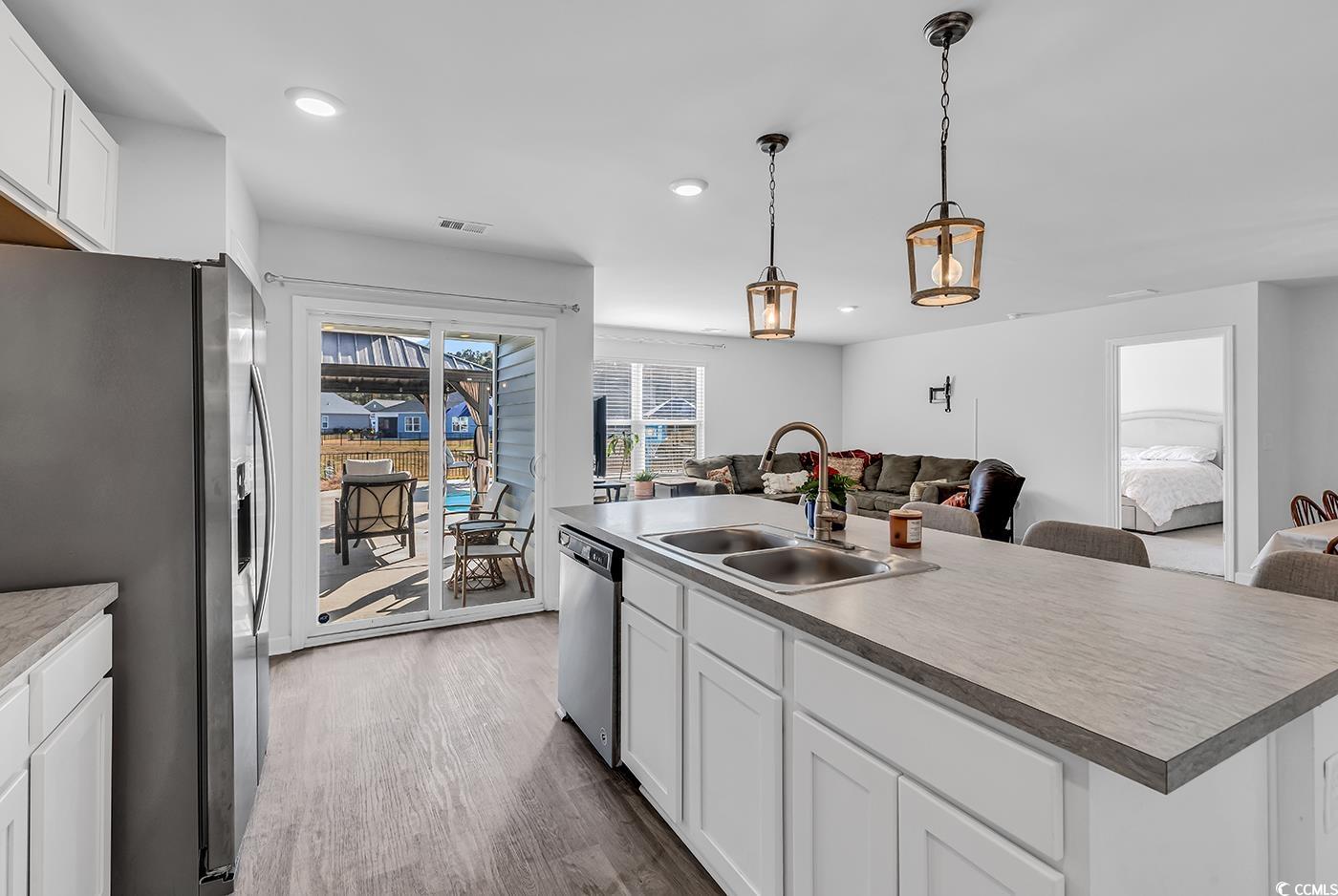Looking for a home with your own heated, saltwater pool and a beautiful pond view' Welcome home! This well-maintained 3-bedroom, 2-bath split floor plan was built in 2021 and is located in the desirable Pine Forest subdivision—just minutes from historic Downtown Conway. The main living area, kitchen, and foyer feature stylish LVP flooring, while the bedrooms offer cozy carpet. The kitchen includes stainless steel appliances, a spacious island perfect for meal prep or entertaining, and abundant cabinet storage. The open floor plan creates a warm, inviting atmosphere that seamlessly connects the kitchen, dining, and living spaces. Step outside to your fenced-in backyard—an ideal spot for gatherings. Enjoy the covered porch, pergola, and your very own private heated, saltwater pool overlooking the pond. Whether you’re hosting friends or relaxing after a long day, this outdoor space is truly a highlight. Located just 30 minutes from Myrtle Beach, this home offers both convenience and tranquility. Move in and start enjoying spring, summer, and fall of 2026 in your own backyard oasis. Don’t let this one pass you by—contact your local agent for a tour today!
