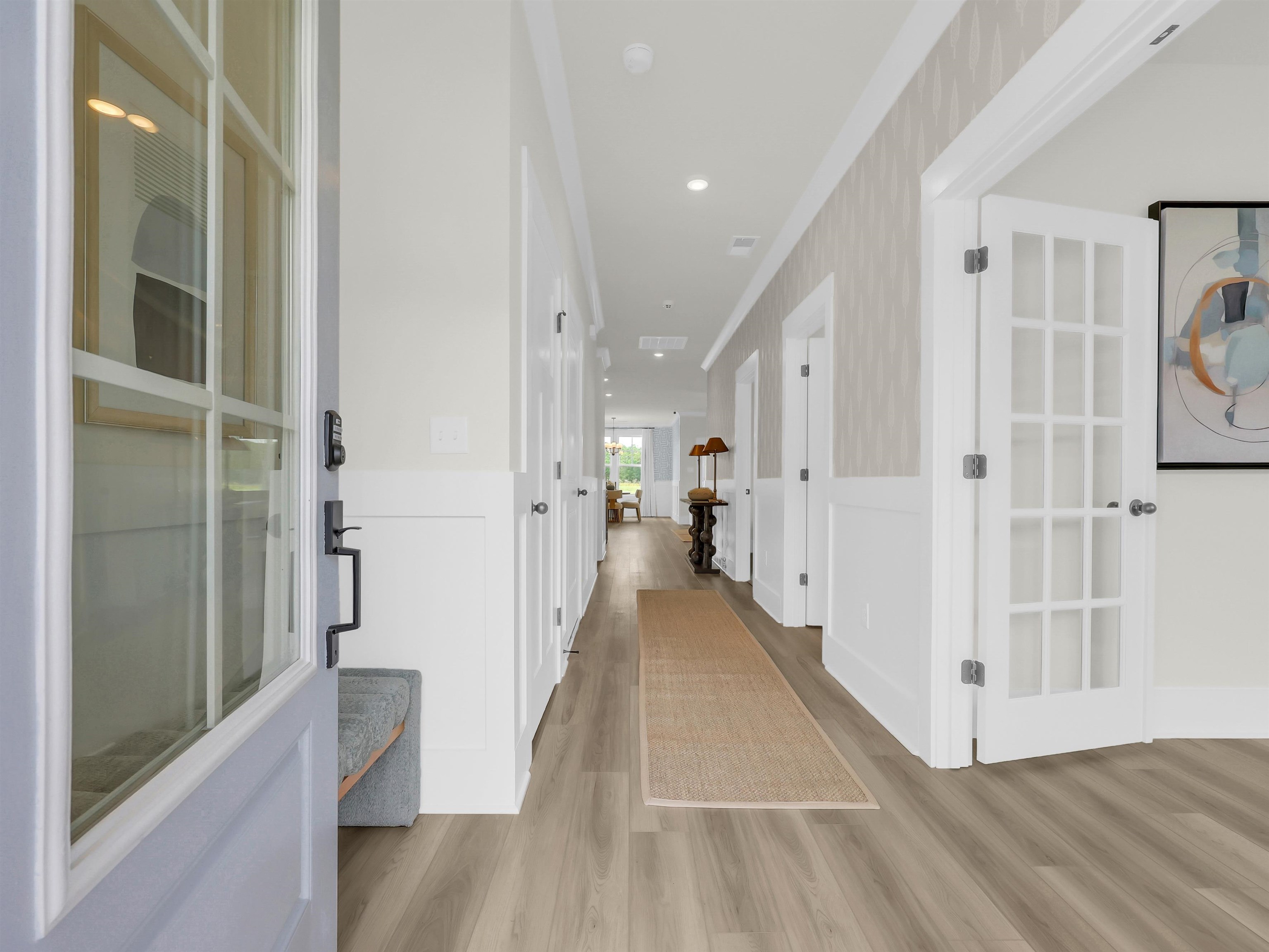 [] Welcome to Westfield. The Courland II plan is a single-level home that blends modern style with perfect functionality. It is a spacious 4-bedroom, 2 full bath home. In this case, the 4th bedroom will be an office/den/meditation room or guest room with beautiful French doors. Enjoy an open floor plan that is perfect for both relaxing and entertaining. The open kitchen with quartz countertops and pendant lighting over the island is perfect for entertaining. Your kitchen/living room overlooks your covered rear porch. The upgraded front door with a transom window adds elegance to this home. An automation package, an optional office/flex room, Craftsman-style trim, and Luxury Vinyl Plank flooring throughout all the main living areas. The Owner's Suite is large and features an oversized closet with separate areas. Tiled shower with a corner bench, raised- height vanity, quartz countertops, and an elegant, framed mirror completes this space. Westfield is a conveniently located, quiet community located just minutes from downtown Conway and Hwy 22. Call us to tour this lovely home.
