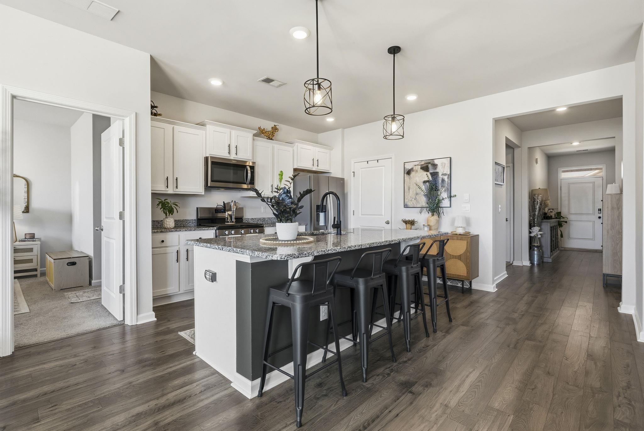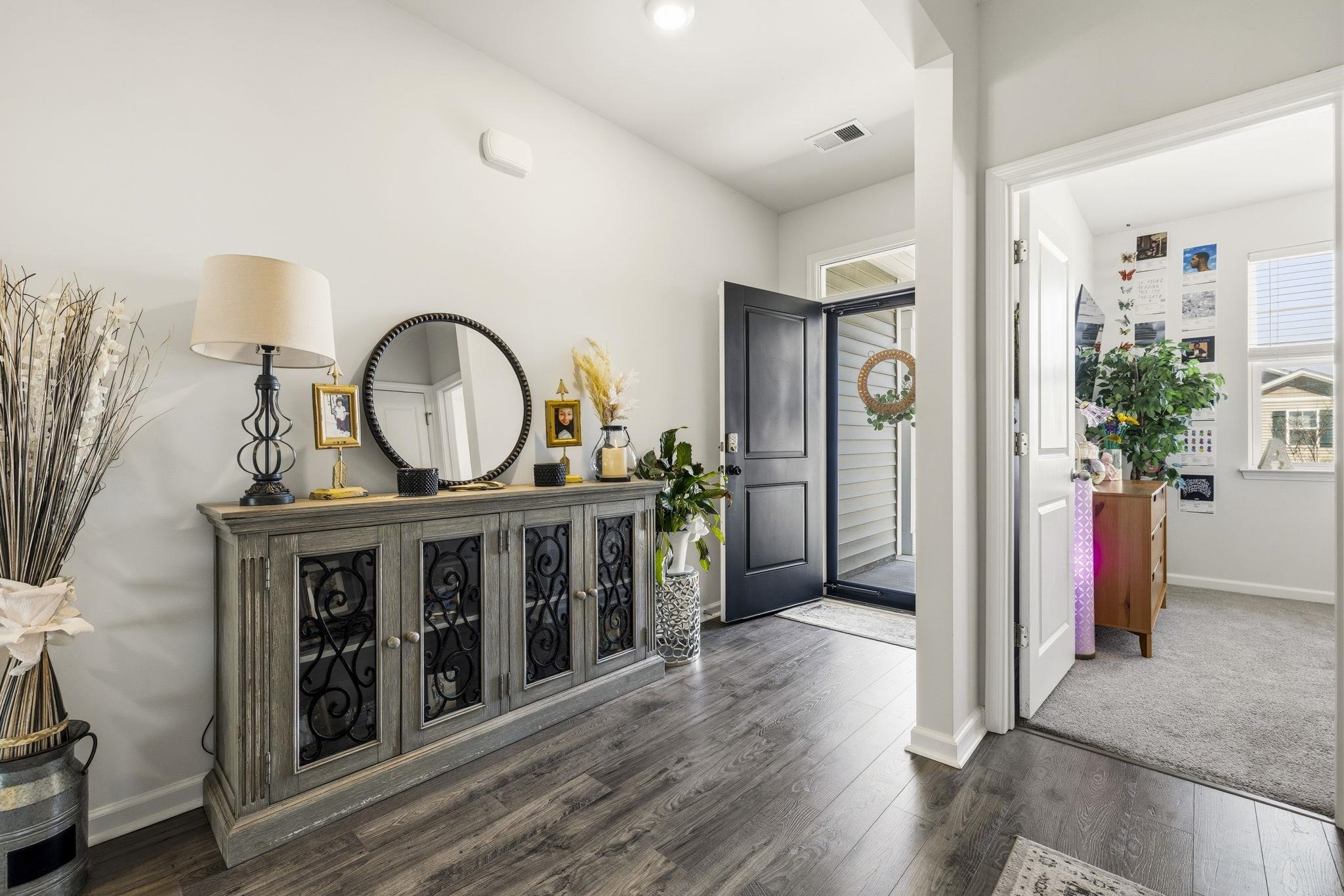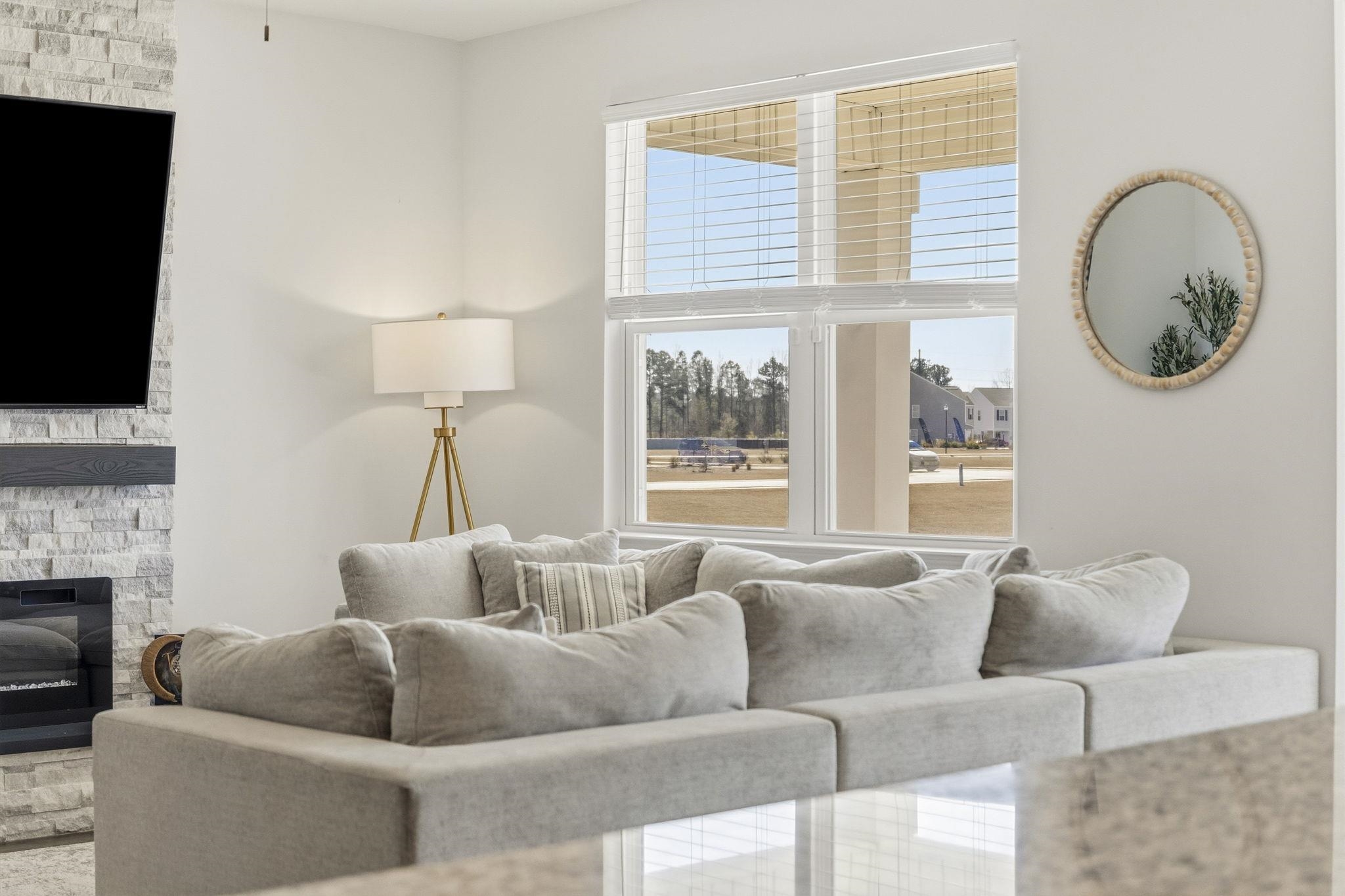 Welcome to this beautifully upgraded 3 bedroom, 2 bath ranch home in the heart of Carolina Forest, located in the Village Oaks community. Situated on a peaceful water lot with a tranquil fountain view and an easement to the left offering additional space and privacy. This popular Aria floor plan offers the perfect combination of modern design, comfort, and thoughtful upgrades. Step inside to an open concept layout featuring 9 foot ceilings and an abundance of windows that flood the home with natural light. The kitchen truly serves as the heart of the home, complete with 36 inch staggered cabinetry, granite countertops, stainless steel appliances, gas cooking, upgraded lighting, and generous prep space. It flows seamlessly into the dining and living areas, creating a warm and inviting space where everyone naturally gathers. This is where memories are made and where you are welcomed home each day. The cozy living area is anchored by a custom electric fireplace, adding warmth and charm. Just off the dining room, the covered rear porch opens to an extended patio overlooking the water, offering peaceful views and effortless indoor-outdoor entertaining. The split bedroom layout provides privacy for the spacious primary suite, while two additional bedrooms offer flexibility for family, guests, or a home office. The secondary bath features a glass shower door for a clean, elevated finish. Additional upgrades include a custom garage door with windows for enhanced curb appeal, upgraded stone landscaping, gutters, a sprinkler system, security system, tankless hot water heater, and an industry leading smart home technology package that allows you to monitor and control your home from anywhere. Located in the center of Carolina Forest, you are just minutes from top rated schools, shopping, dining, and the beach. This home offers not only modern features but a cozy, welcoming layout that has truly been loved and thoughtfully enhanced.