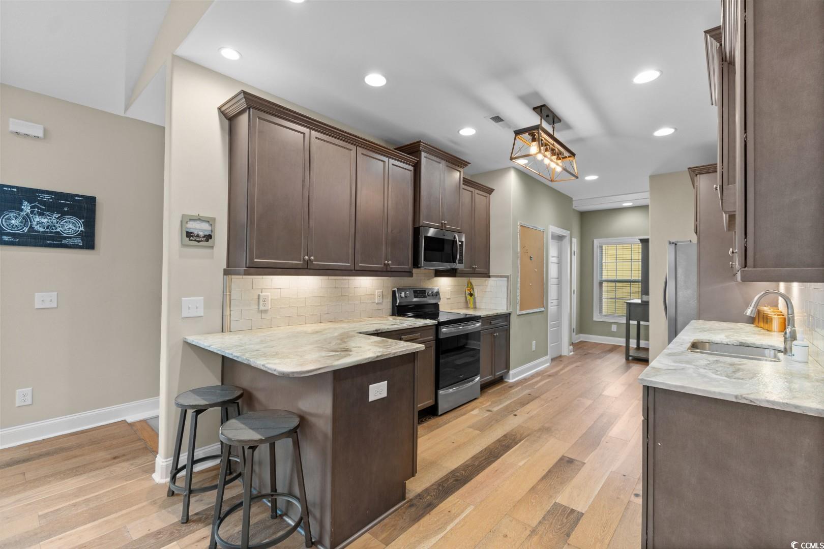 Uncover your dream coastal retreat in the highly desirable Wilderness Cove community! This stunning, raised 3-bedroom, 2.5-bath beach house offers the perfect blend of luxury and leisure with NO HOA. The home boasts an open layout and modern finishes, including beautiful engineered wood flooring and tile throughout. A chef's kitchen featuring elegant granite countertops and stainless steel appliances, complete with a handy breakfast bar. Relax in the luxurious Master Suite, which includes a ceiling fan, a spacious walk-in closet, and a spa-like Master Bath equipped with dual sinks and a gorgeous walk-in tiled shower. Enjoy the ocean breeze from your private balcony, and benefit from a heated and cooled garage with generous storage space. An essential outdoor shower makes rinsing off after a day at the beach a breeze! Best of all, this property offers unparalleled privacy, as it is surrounded by protected wetlands, ensuring no further building can occur beside or behind you. You're just a short golf cart ride to the beach and minutes from local dining and attractions, making this the ultimate move-in-ready property for full-time living or a fantastic rental investment. Don't delay and schedule your showing today!