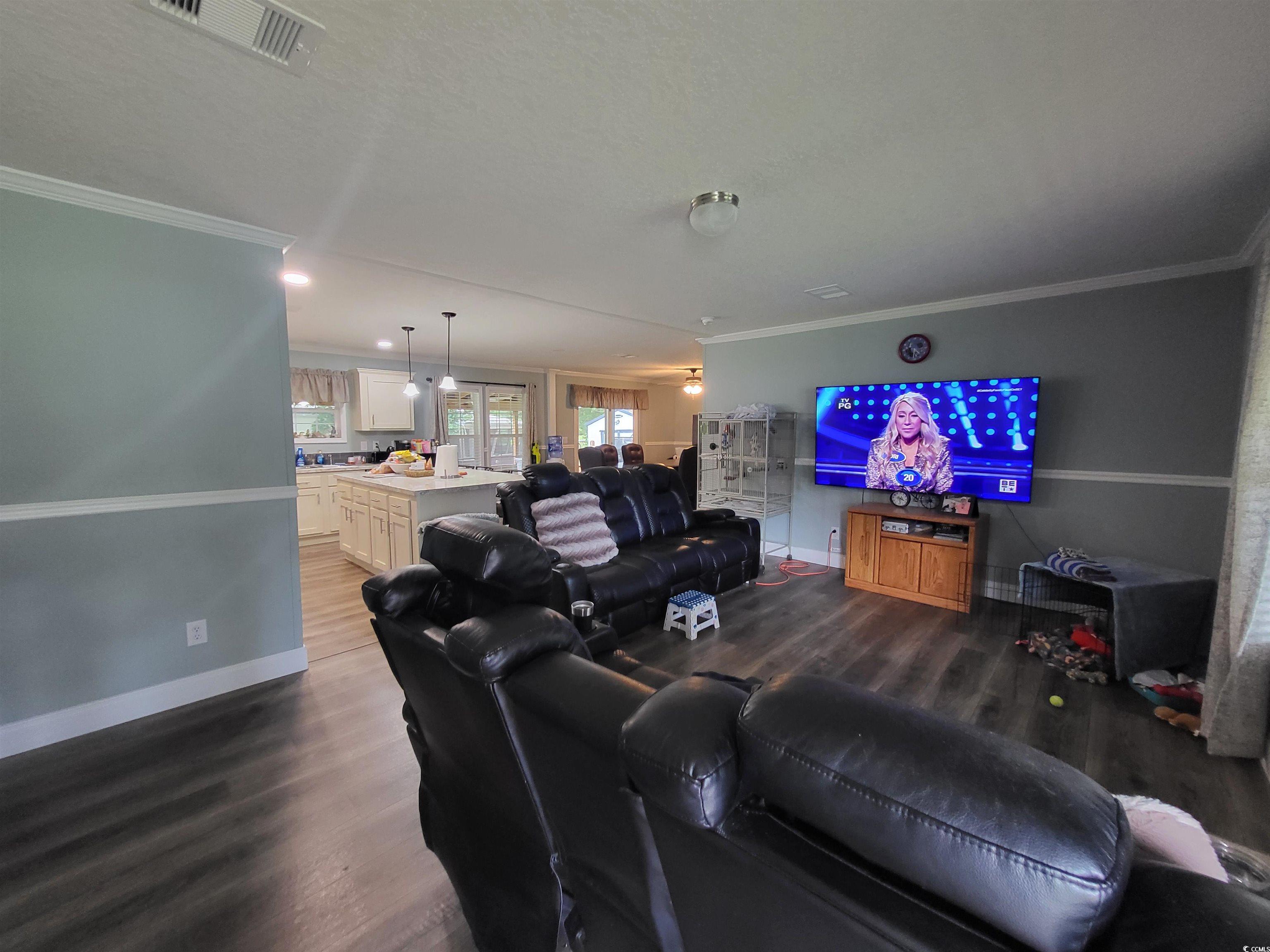 **Through no fault of the sellers or the home, this property is still on the market after sale fell through. Call or text listing agent if you'd like more information.** Motivated sellers will look at reasonable offers for this well cared for 2022 home with 4 full bedrooms and 2 full bathrooms. It has been upgraded with crown molding and chair rail as well as vinyl plank flooring. There's a separate laundry room, a large, back screened porch complete with ceiling fans, a covered front porch, and a detached garage with a key pad and electric door opener. The concrete driveway easily has space for up to 4 vehicles, and there are concrete walkways to the front and rear of the property. Seller has even had square concrete border added all around the home's skirting to protect from landscape trimming. All of this, plus being on a large, corner lot that's walking distance to the neighborhood clubhouse & pool, and only a golf cart ride away from the beach, restaurants, grocery store, and more! Great property for a primary residence or your 2nd home escape, so schedule your showing today.