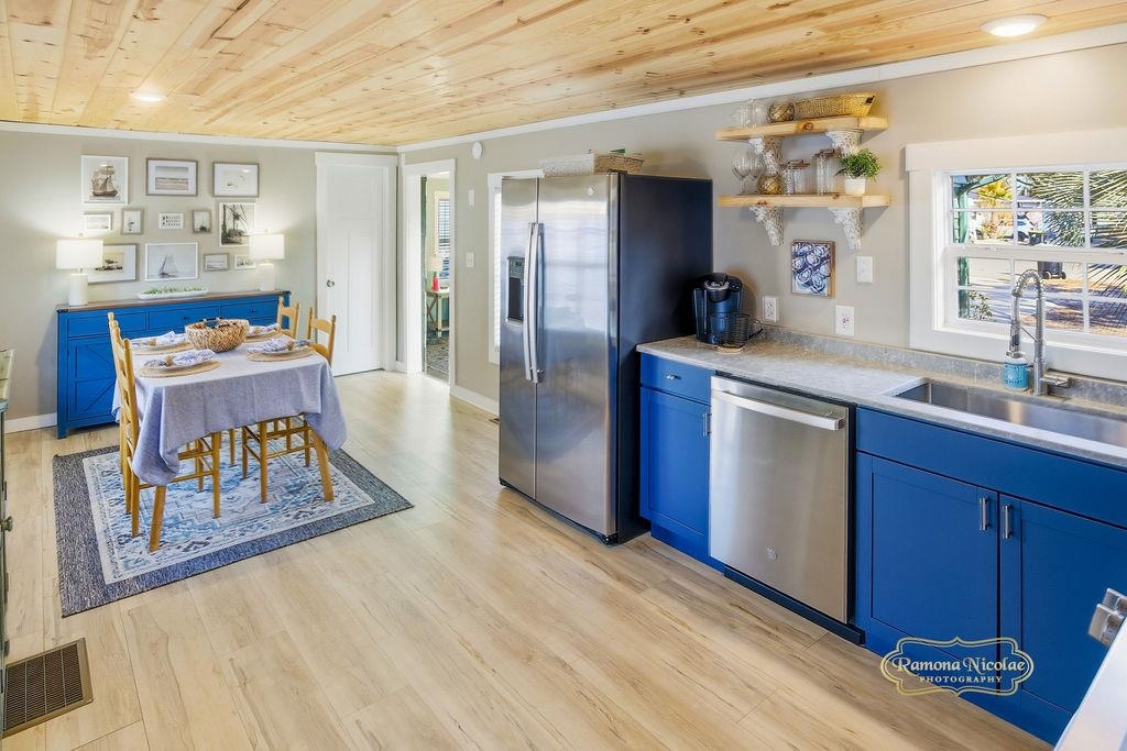 GREAT LOCATION, OCEAN SIDE VILLAGE. THE BEACH LIFE, YOU CAN HEAR THE OCEAN, BLOCK TO BEACH ; ALL UPDATED , NEW WOOD FLOORS , NEW WOOD CIELINGS , 3 bed, 2 bath, GREAT Beach home is situated in the gated community of Oceanside Village. NEW Large living room, NEW DINING ROOM , NEW KITCHEN, GRANITE COUNTER TOPS . NEWER HEAT PUMP HVAC NEW COLD AIR CONDITIONER. East of 17, walking distance to the beach with private beach access! Well-established, located in the very desirable gated golf cart community of Oceanside Village. This home is just a ONE -minute WALK to the ocean! This beautiful community offers a relaxed and laid-back lifestyle, perfect for those looking to escape the hustle and bustle of city living and enjoy the ocean breeze. The community is situated on 180 acres of pristine land and boasts a variety of amenities that cater to every resident's needs. From the beautiful beaches just a short walk away to the private fishing lakes, there is Never a shortage of things to do in Oceanside Village. For those who enjoy outdoor activities, Oceanside Village offers an array of amenities for everyone, including indoor/outdoor swimming pools, a kids' splashpad, tennis, bocce ball, playground, bark park, private beachfront parking, and much more. Golf enthusiasts will appreciate the community's proximity to several premier golf courses, including Tupelo Bay. **************************************** - New heat pump in Livingroom -All new duct work with HVAC system in rest of the house -Termite treatment and 10 yr bond -New roof -New gutters -Newly painted exterior -Front composite deck -New concrete patio w. guarantee against any cracks -New sheet rock and trim throughout -New insulation -New tongue and groove ceiling throughout -New laminate flooring throughout -New tile in back bathroom/laundry room -New carpets in bedrooms -New interior doors and slider -New interior paint throughout -New light fixtures throughout -Plumbing converted to PEX -New electric instantaneous water heater -All new kitchen appliances & washer/dryer -New bathroom vanities -New kitchen cabinets w. new quartz countertops