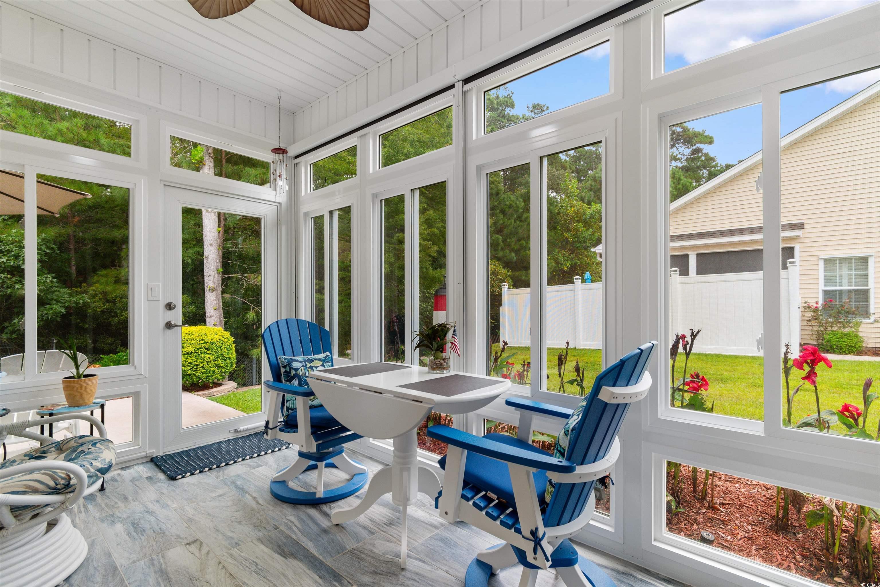 Fantastic opportunity in the desirable Riverbend community! This prestigious semi-detached three-bedroom, two-bath home with a two-car side-load garage offers easy living in a quiet, well-maintained neighborhood along the Intracoastal Waterway. Inside, you’ll find cathedral ceilings, and plantation shutters throughout. The kitchen features stainless steel appliances, a double oven range, granite countertops, and soft-close cabinetry, all open to the dining area, making it perfect for entertaining. The sellers enclosed the screened porch to create a versatile sunroom with porcelain tile floors and peaceful wooded views. The HVAC system has been upgraded with a UV air scrubber for cleaner air. The primary suite includes a tray ceiling, walk-in closet, double vanities, and a large walk-in shower. The split floor plan provides privacy for guests with two additional bedrooms, one with a Murphy bed. A long list of upgrades adds to the appeal, including attic storage with pull-down stairs, an electrical panel wired for a generator, and beautiful landscaping with curbing around the flowerbeds. The laundry room is equipped with a washer and dryer, which convey with the home. The HOA covers water, sewer, trash pickup, yard mowing, landscaping with mulch and irrigation, exterior home maintenance, pressure washing, gutter and dryer vent cleaning, termite and pest control, insurance, and common area maintenance. Community amenities include a pool, covered gazebo, picnic area, floating day dock, and a scenic boardwalk along the waterway. Don’t miss this one—call today to schedule your showing!