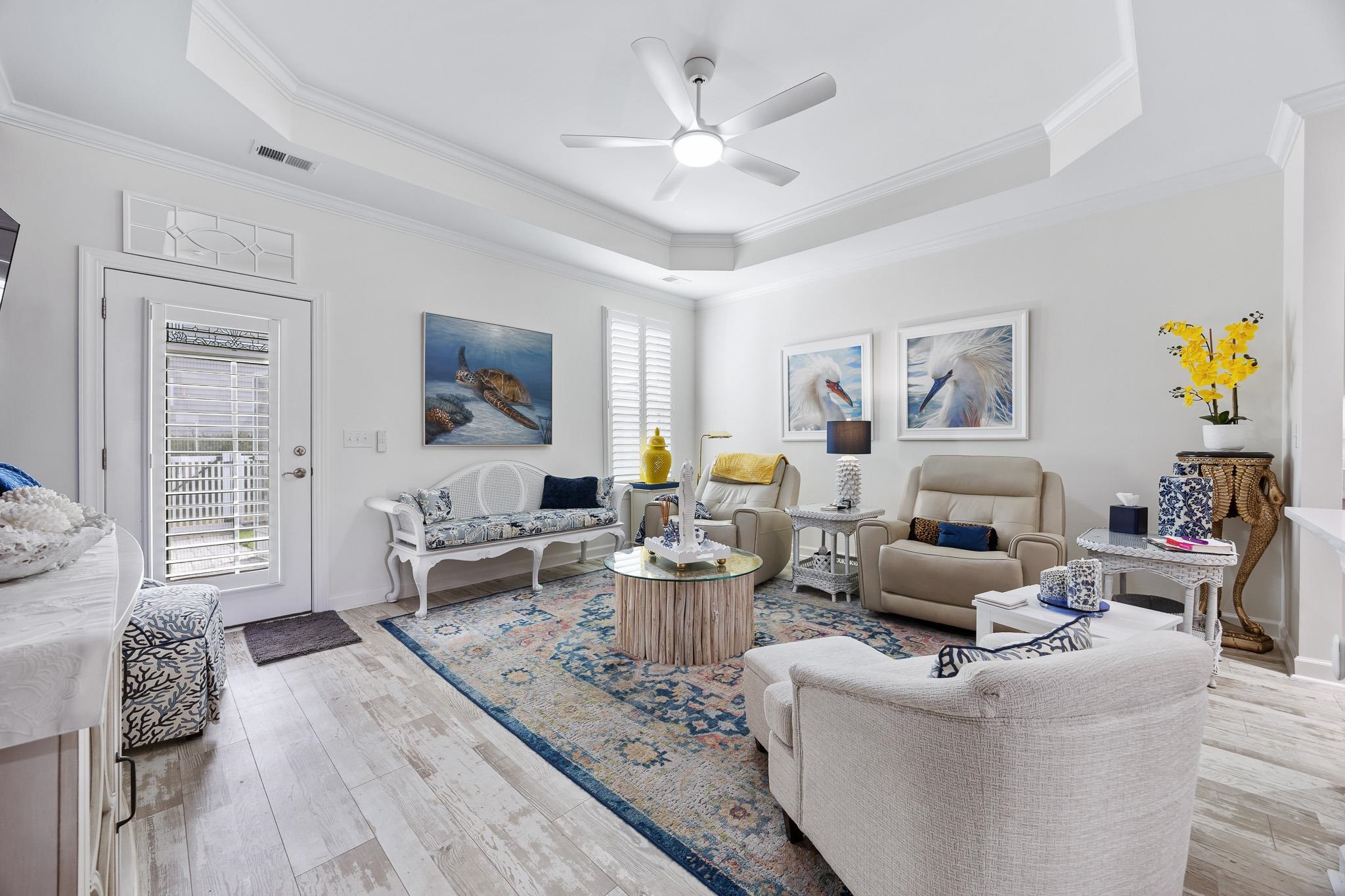 Welcome to “The Good Life” at Bridgewater, a Chesapeake Homes community in Little River, SC! Experience a peaceful setting surrounded by ponds, lakes, and abundant waterfowl. Enjoy top-notch amenities and a lively social calendar filled with monthly events. Conveniently located just over the ICW bridge from North Myrtle Beach and across from McLeod Sea Coast Medical Center, the Cherry Grove villa model offers single-level living and a 1-car garage. Upgrades include quartz countertops, a spacious kitchen island with seating and a footrail, a screened porch for relaxing evenings, a fenced and professionally landscaped yard, pavers extending the patio and walkway, along with landscape lighting and river rock. Inside, you’ll find a separate dining room, laundry room with a desk area, plantation shutters on all windows, and LVP flooring in both bedrooms and closets—no carpet! With so many upgrades and a move-in ready design, you’ll enjoy resort-style living just minutes from Hwy 31, medical offices, shopping, dining, and beaches. Schedule your tour before it’s gone!
