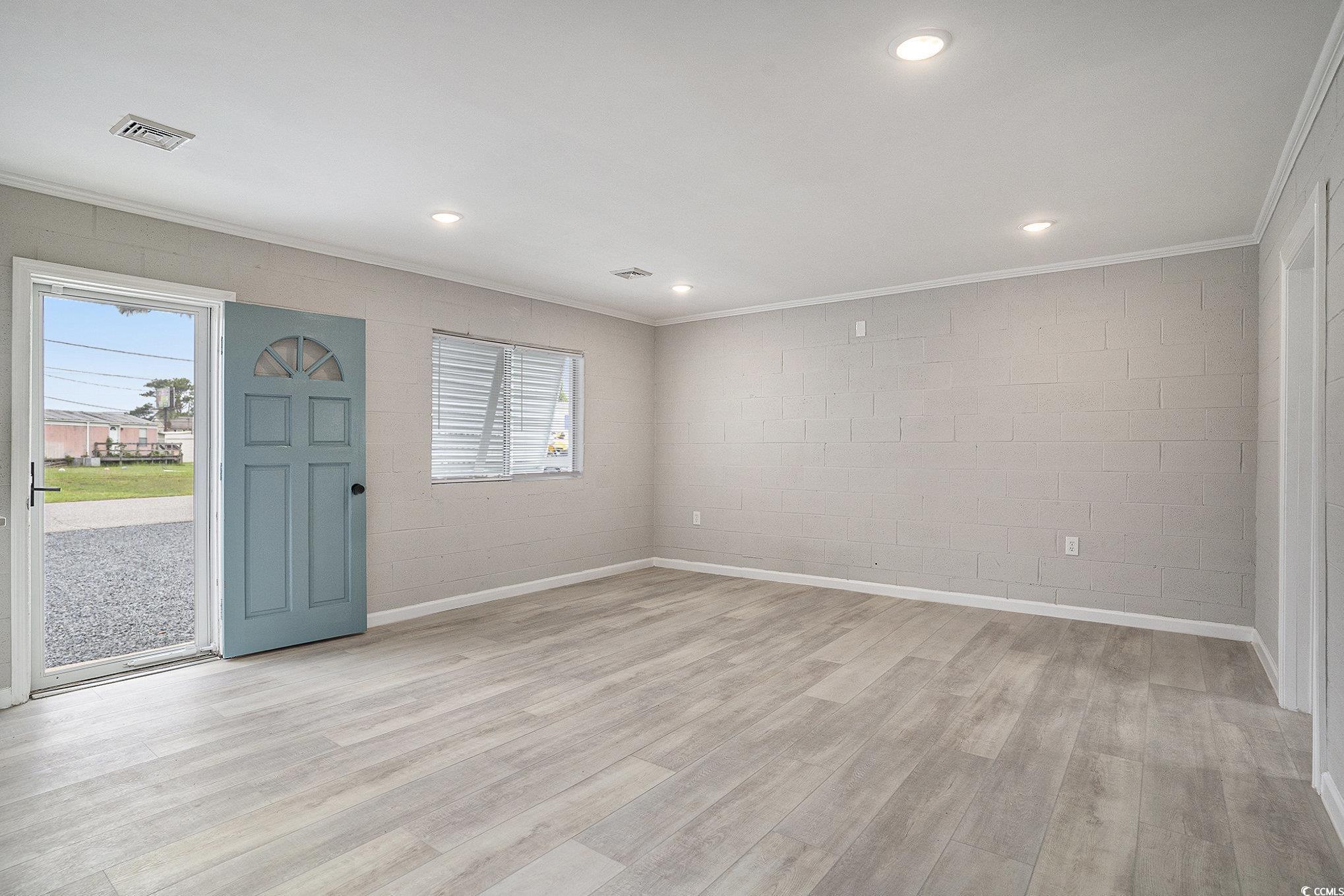 Incredible opportunity to own a newly renovated (short term rentable) duplex just steps to the beautiful Atlantic Ocean. This property features two 2br 1bath units that have just received full remodel including new roof, facia, soffits. Interior and exterior paint. New Luxury LVP flooring, new kitchen cabinets, quartz counters, stainless appliances. Newly remodeled bathrooms, paint inside and out. New landscaping, new irrigation, sod and deco rock driveway. This property is very flexible in that it can be rented short term, long term, or with its zoning as NC (neighborhood Commercial) it even has some commercial uses. Its not often that properties with this flexible zoning become available on the ocean side of Hwy 17 Make this one yours today!!!