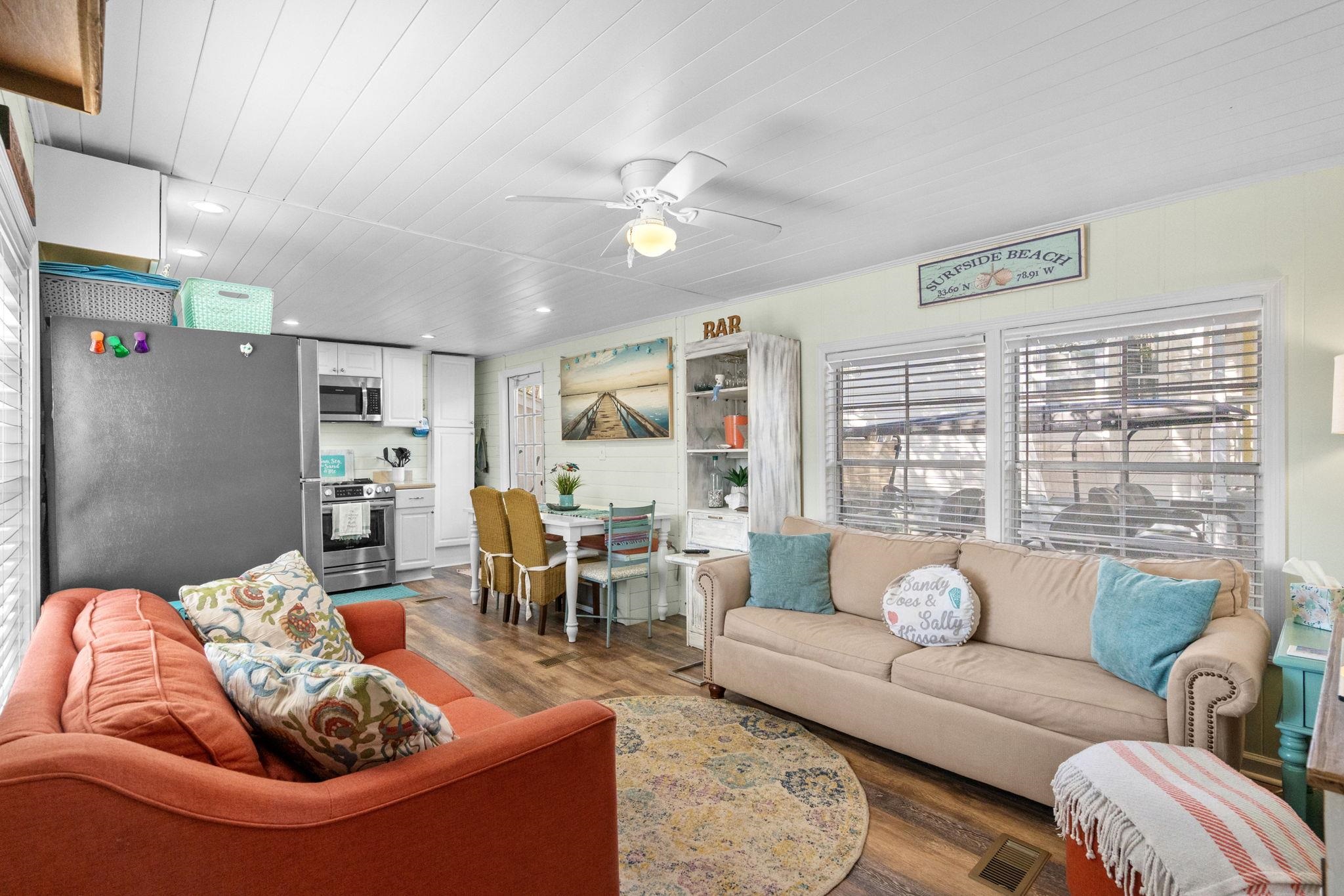 Welcome to this charming coastal home two blocks from the beach and located in the heart of Oceanside Village in Surfside Beach, where relaxed beach living and community lifestyle come together. This thoughtfully updated home features an inviting open living area, a bright and functional kitchen, and coastal finishes throughout that give it warmth and personality. The bedrooms are comfortable and well laid out, and the updated bathrooms showcase custom touches and a beach inspired feel. The expansive wraparound deck shaded by mature trees creates the perfect outdoor living space for entertaining, relaxing, or enjoying the coastal breeze. An outdoor shower adds extra convenience after beach days or time spent outdoors. Living in Oceanside Village can also mean enjoying an impressive lineup of community amenities (for a fee) that truly extend your lifestyle beyond the home. Residents have access to private beach entry with gated beachfront parking, outdoor showers, and restrooms, multiple outdoor pools, a heated indoor pool, fitness center, tennis and pickleball courts, basketball and volleyball courts, playground, dog park, bocce and horseshoe pits, lake fishing and surf fishing where permitted, and a community center that hosts year round events and activities. Lawn care, trash service, and on site management are also included in the community structure. Your Surfside Beach address grants you close proximity to all the attractions and amenities of the Grand Strand including fine dining, world-class entertainment, and ample shopping experiences. Rest easy knowing you are only a short drive from medical centers, doctors' offices, pharmacies, banks, post offices, and grocery stores. Square footage is approximate and not guaranteed.