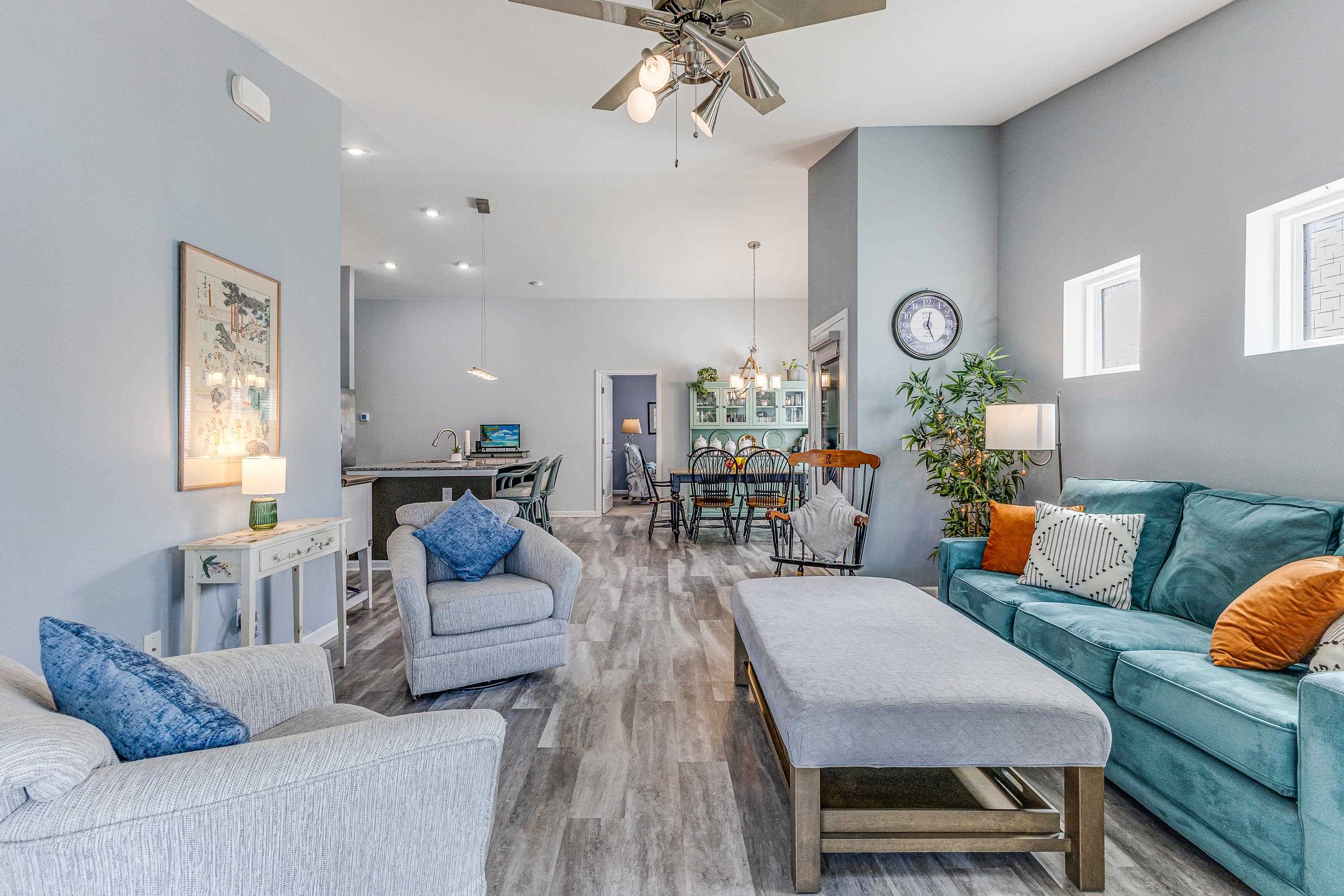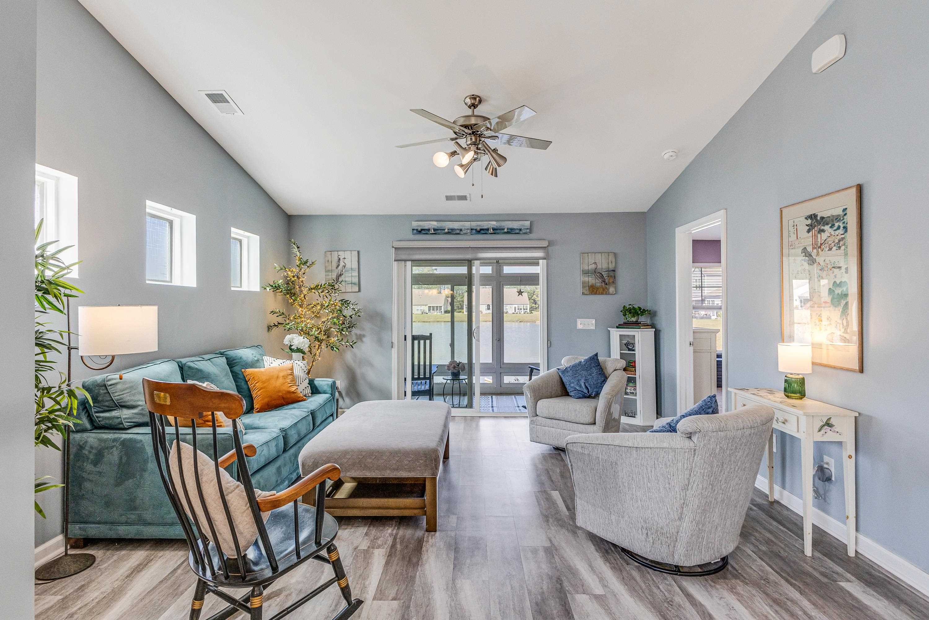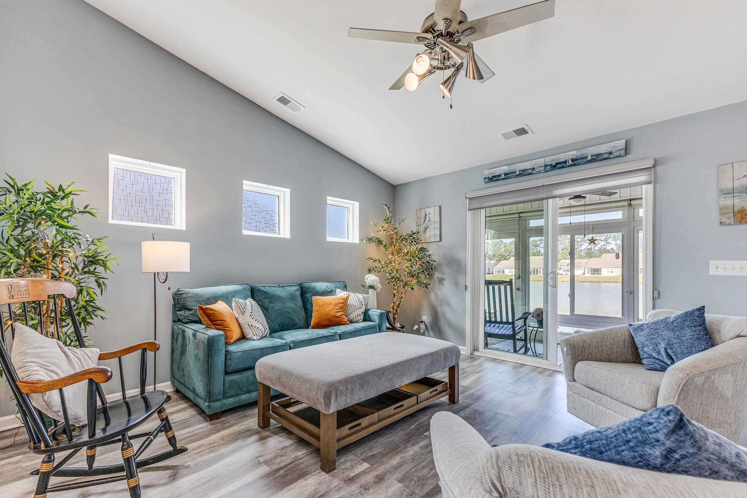 Beautifully maintained 3-bedroom, 2 bath duet style home featuring a desirable split-bedroom floor plan and numerous upgrades throughout. The open and inviting living area flows seamlessly into the dining space and kitchen, creating a great layout for both everyday living and entertaining. The kitchen includes ample cabinetry, solid surface counters, breakfast bar seating, large work island, tile backsplash, pantry and a new microwave. Large primary bedroom offers a vaulted ceiling, a great walk-in closet and a private bathroom with a double sink vanity and full-size shower. Comfortable guest bedrooms with great closet space. Upgraded light fixtures throughout the home add a modern touch, while thoughtful features such as lever door handles, comfort-height toilets, all closets offer motion censored lighting and a whole-house water filtration system with reverse osmosis drinking water provide everyday convenience and comfort. You'll find low maintenance LVP flooring throughout the living areas and carpet in the bedrooms. One of the standout features of this home is the glass-enclosed patio overlooking an incredible pond view, creating a peaceful setting that is perfect for relaxing or bird watching. Residents enjoy wonderful community amenities including a beautiful clubhouse with fitness room and meeting space, along with a fantastic community saltwater pool. Conveniently located near the area's beautiful beaches and close to an endless variety of shopping, dining, and golf courses. This home offers the perfect combination of comfort, upgrades, scenic views, and great amenities.