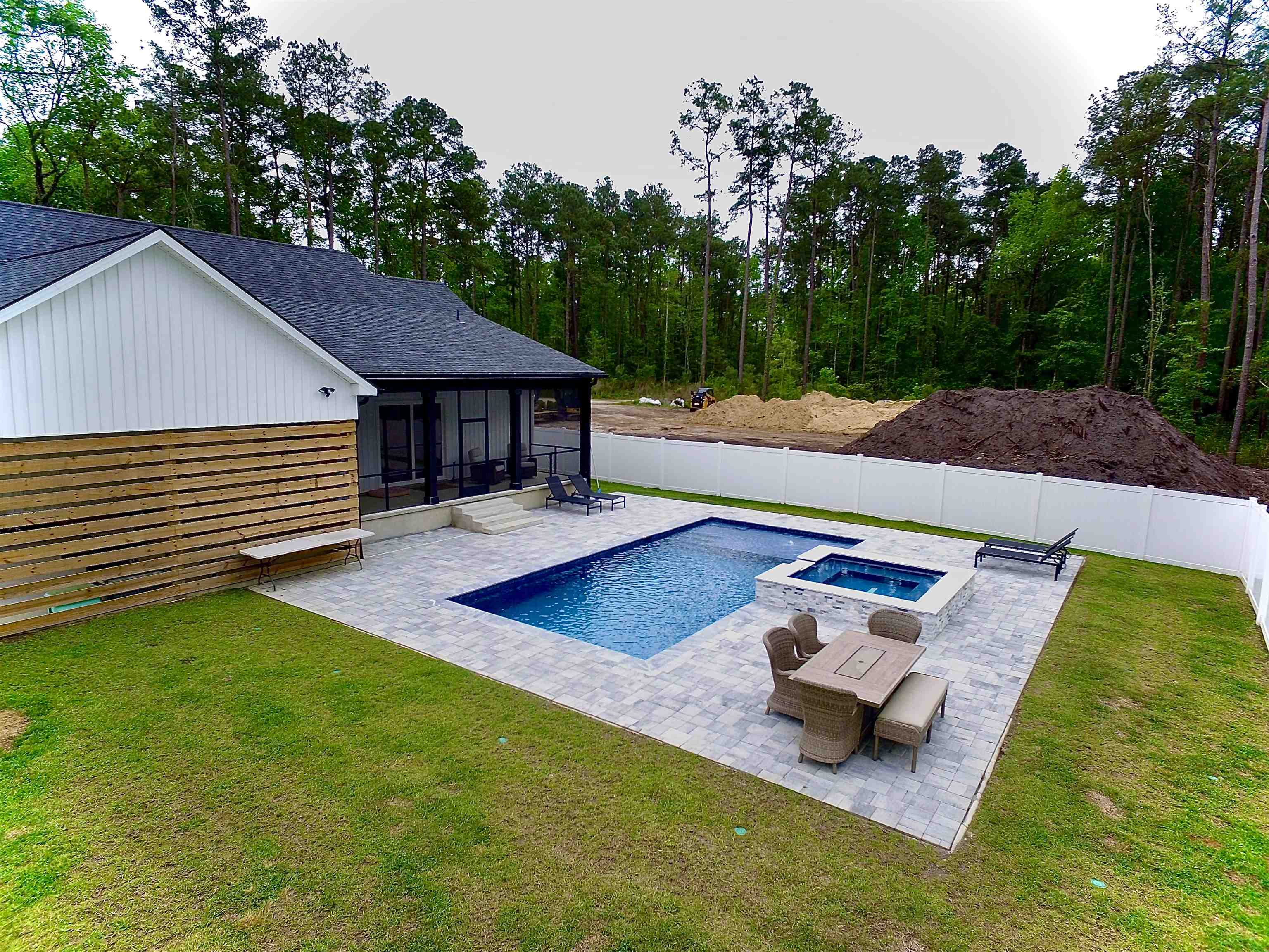 Enjoy the summer with your new home and custom pool! NO HOA! Room to park your boat or RV! Large front and rear screened in porch overlooking beautiful custom pool and hot tub and private backyard with view of wetlands. Upgrades throughout! Beautiful double front door leads to open floor plan with upgraded chef's kitchen featuring upgraded gas range, breakfast bar, in counter microwave, stainless steel range hood, custom backsplash and upgraded cabinetry. Large master bedroom and luxury en suite with large tiled walk in shower with stand alone garden tub. Guest bath features tub/shower with tiled surround. Laundry room features custom cabintry and laundry sink including drop zone area. Gas HWH. Live on a quiet road yet close to all that the Grand Strand has to offer. All measurements and square footage estimated. Buyer and/or buyers agent responsible for verification. Must see and Easy to see!