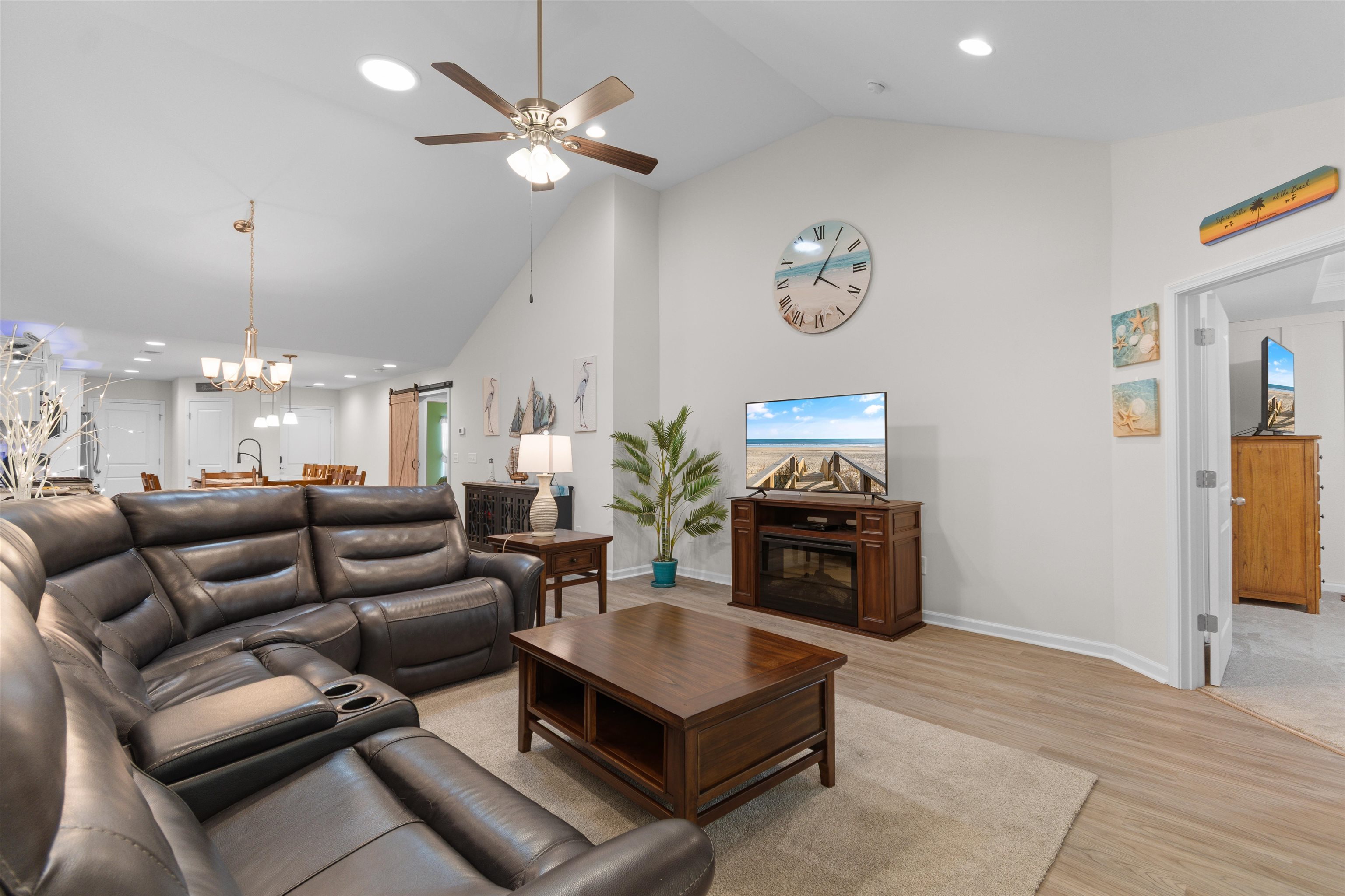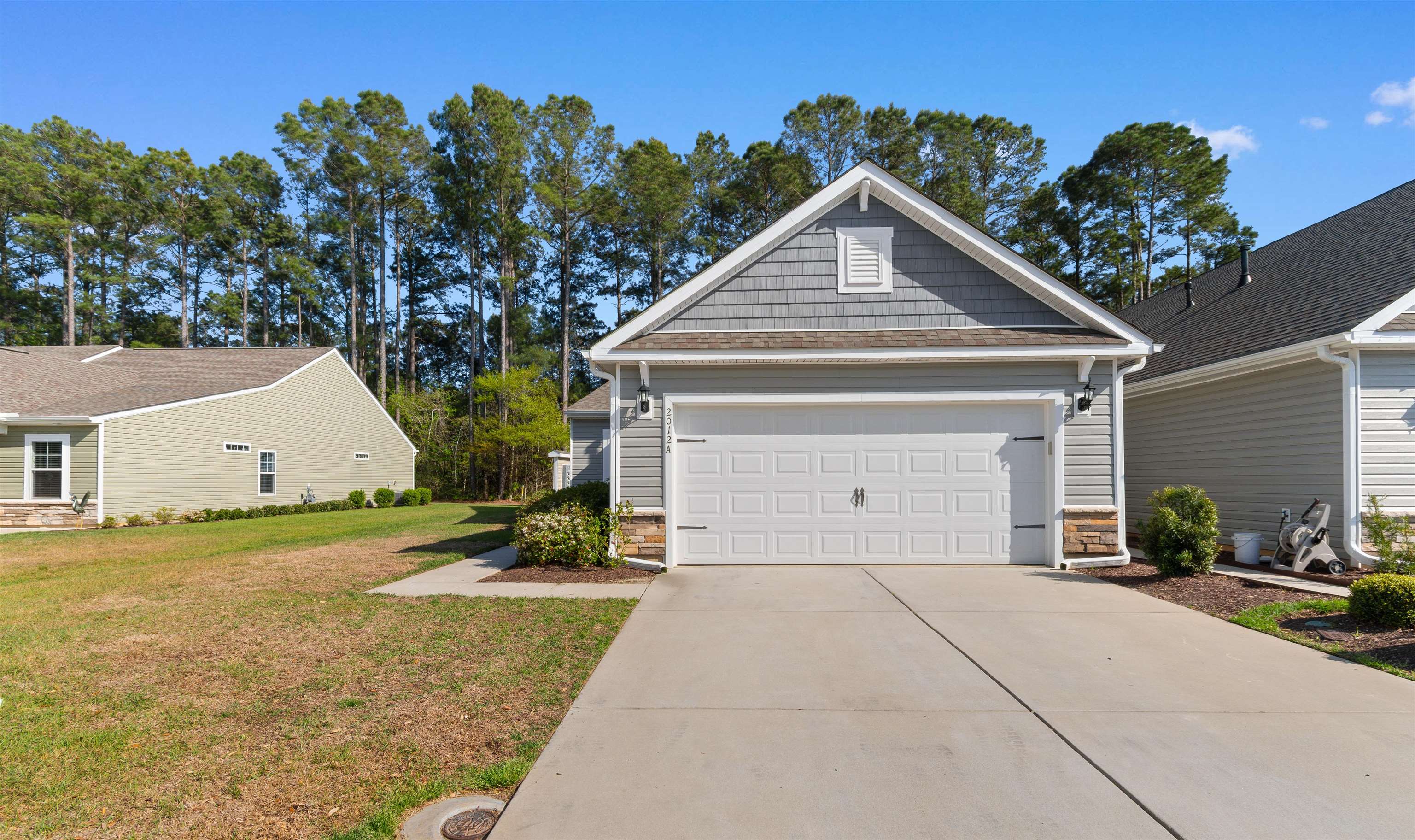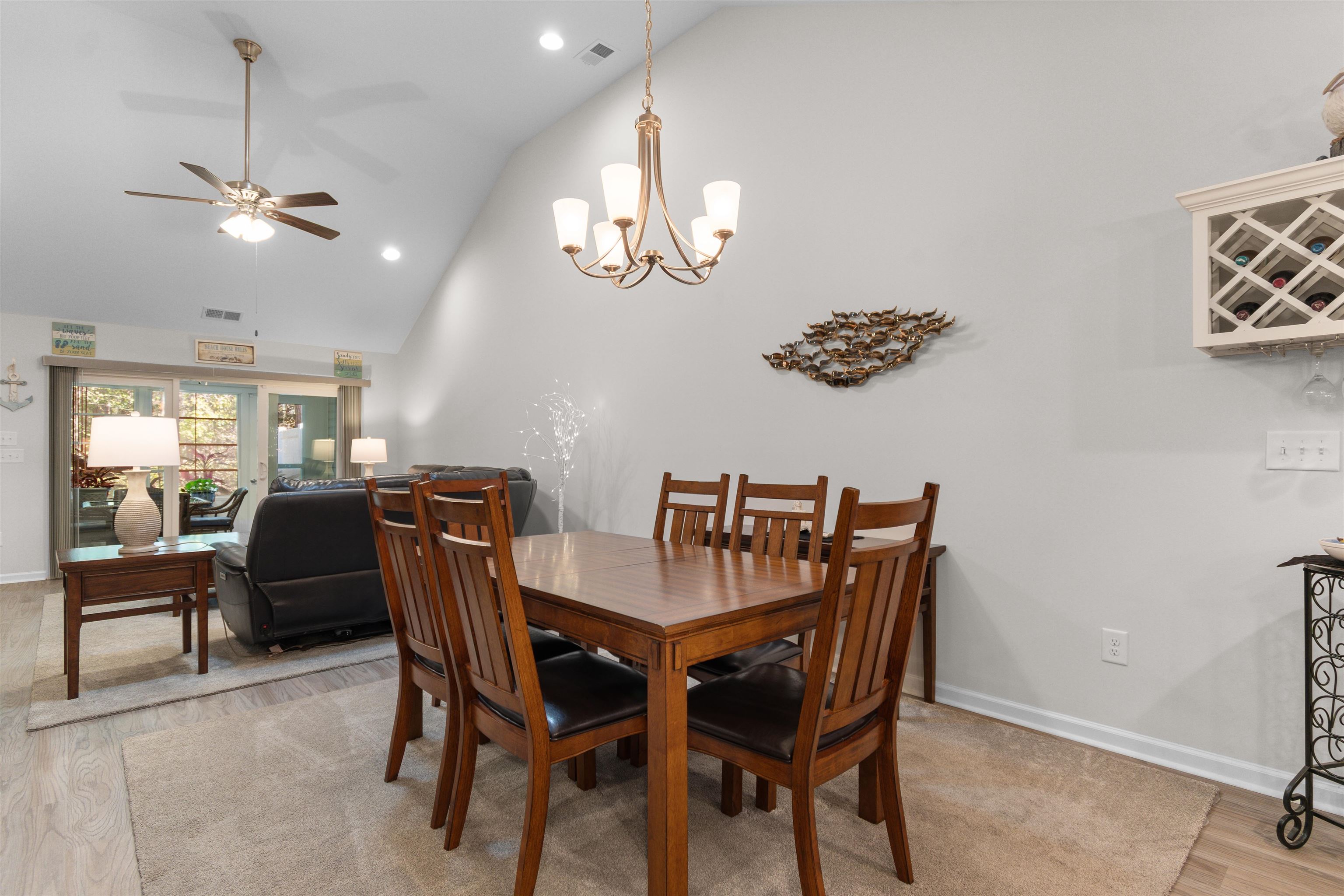 This beautifully maintained 3-bedroom, 2-bath ranch style end-unit townhome in Palm Lakes Garden Homes feels much larger than its square footage suggests! The open floor plan features vaulted ceilings,a suntube, ceiling fans, luxury vinyl plank flooring, and brand-new carpet throughout. The kitchen is designed for both style and function with granite countertops, stainless steel appliances, a gas range, new pendant lighting, a sink in the oversized island, island stools, a pantry, and a built-in wine shelf. Just off the attached 2-car garage, the mud room includes the washer and dryer for added convenience. A charming barn door separates the guest bedrooms and second bath from the main living area, offering extra privacy. The spacious primary suite features a tray ceiling, decorative accent wall, and large picture window. The primary bath includes your closet, dual sinks, a linen closet and a large walk-in shower with etched glass doors. The home includes an enclosed Carolina Room and also a concrete patio out back. Being an end unit, you can enjoy the larger side yard! Residents enjoy access to the community pool and play area shared with Palm Lakes. Conveniently located just off Mt. Zion Road between Highways 57 and 90, this home is only minutes from North Myrtle Beach dining, shopping, entertainment, and the beach ''