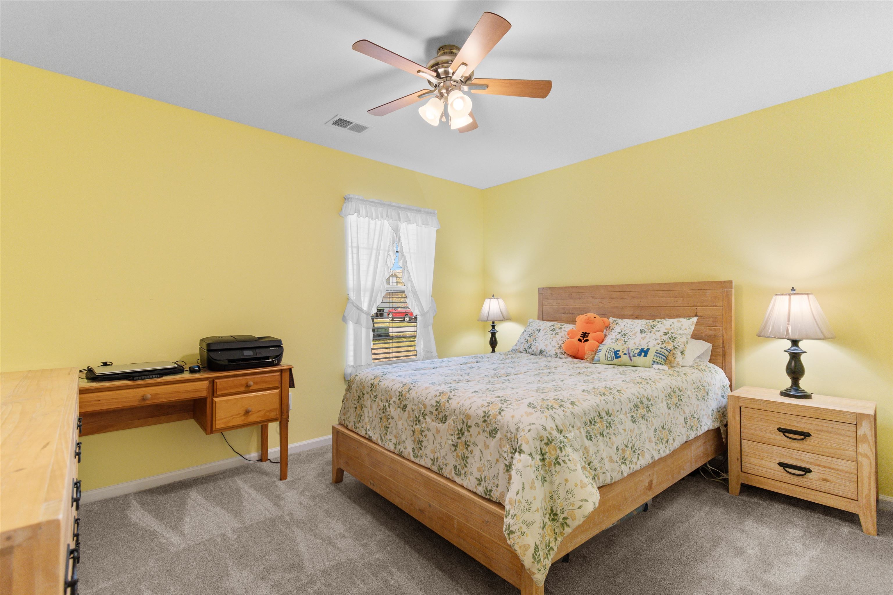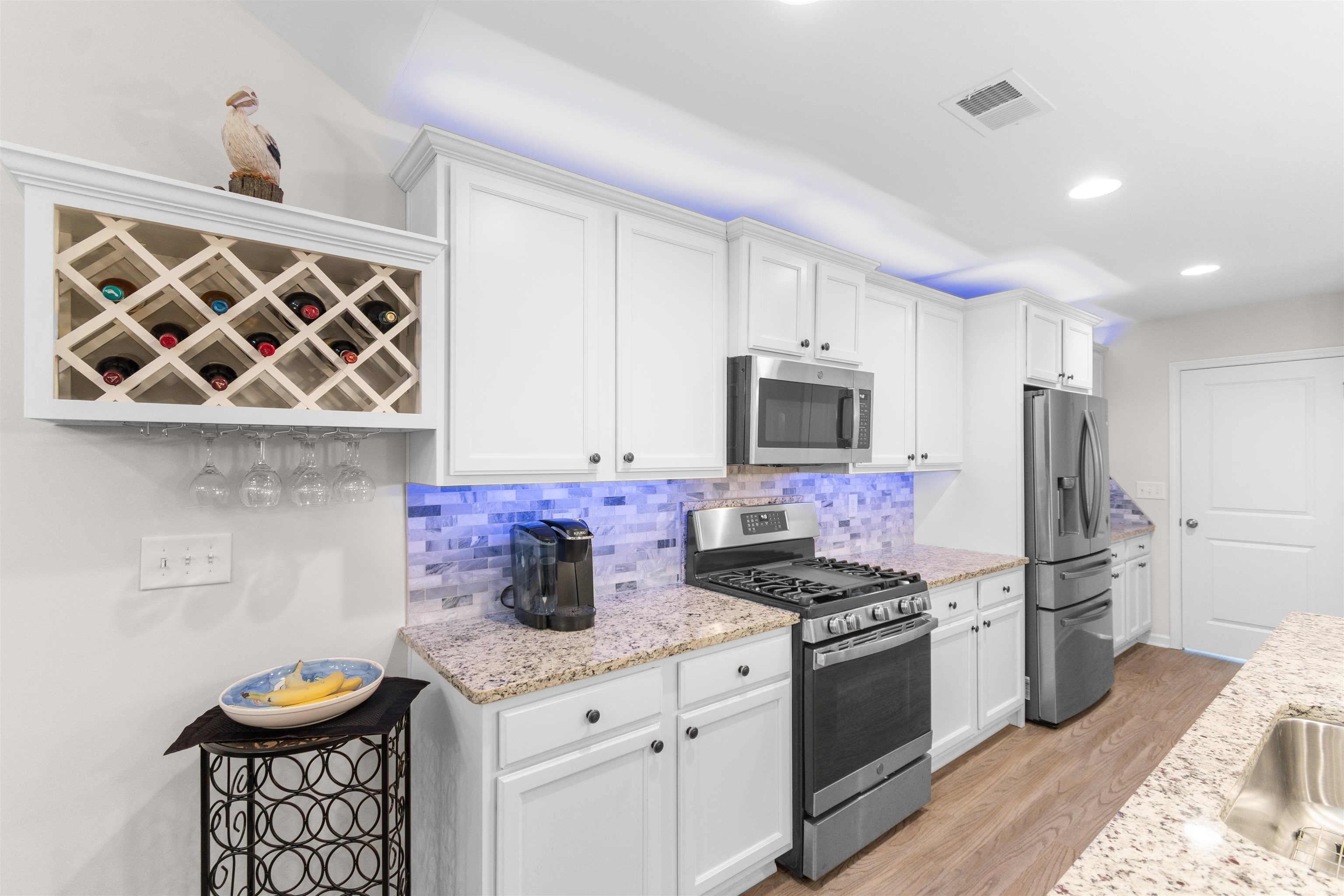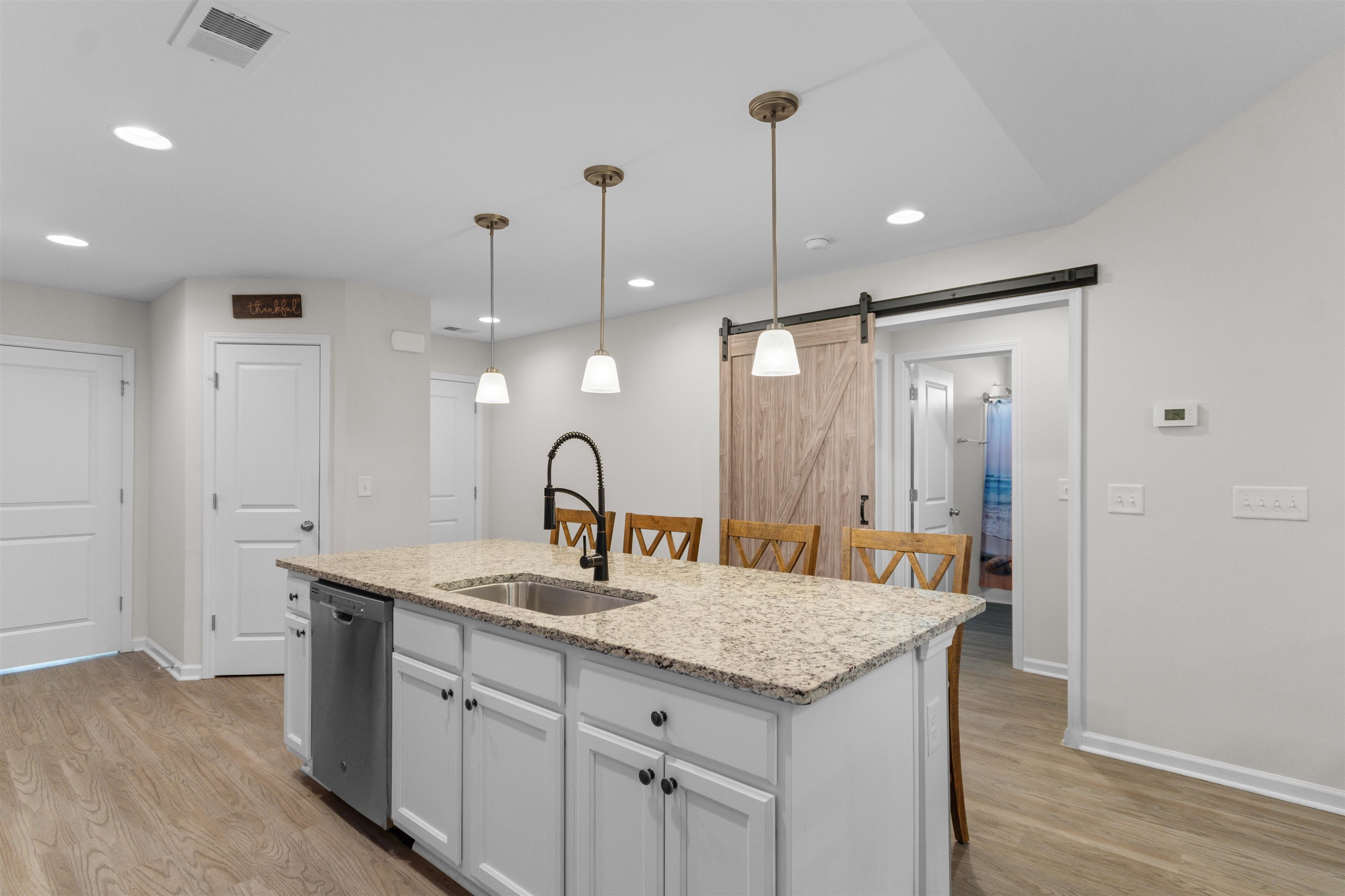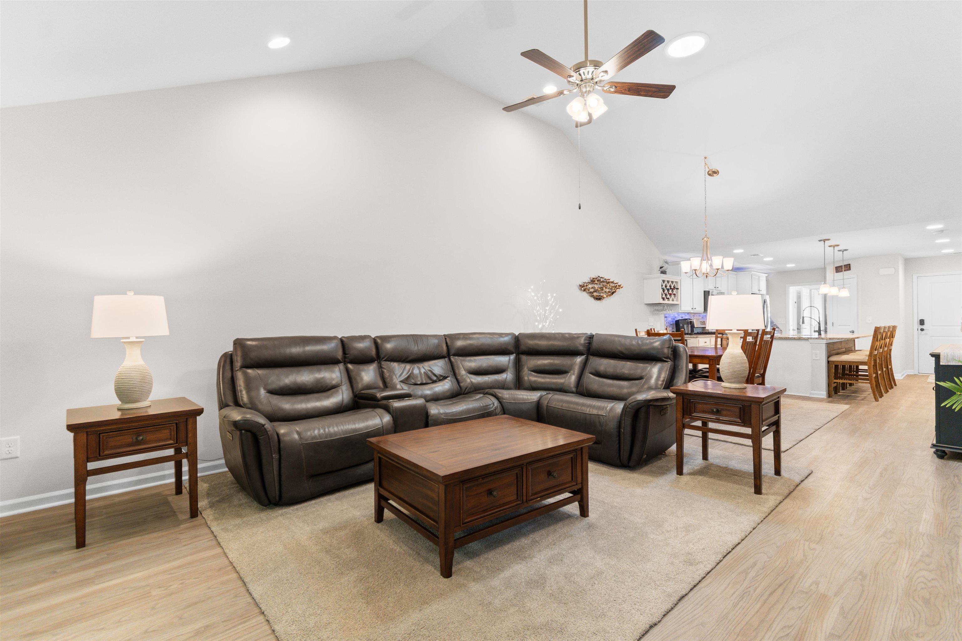 This beautifully maintained 3-bedroom, 2-bath ranch style end-unit townhome in Palm Lakes Garden Homes feels much larger than its square footage suggests! The open floor plan features vaulted ceilings,a suntube, ceiling fans, luxury vinyl plank flooring, and brand-new carpet throughout. The kitchen is designed for both style and function with granite countertops, stainless steel appliances, a gas range, new pendant lighting, a sink in the oversized island, island stools, a pantry, and a built-in wine shelf. Just off the attached 2-car garage, the mud room includes the washer and dryer for added convenience. A charming barn door separates the guest bedrooms and second bath from the main living area, offering extra privacy. The spacious primary suite features a tray ceiling, decorative accent wall, and large picture window. The primary bath includes your closet, dual sinks, a linen closet and a large walk-in shower with etched glass doors. The home includes an enclosed Carolina Room and also a concrete patio out back. Being an end unit, you can enjoy the larger side yard! Residents enjoy access to the community pool and play area shared with Palm Lakes. Conveniently located just off Mt. Zion Road between Highways 57 and 90, this home is only minutes from North Myrtle Beach dining, shopping, entertainment, and the beach ''