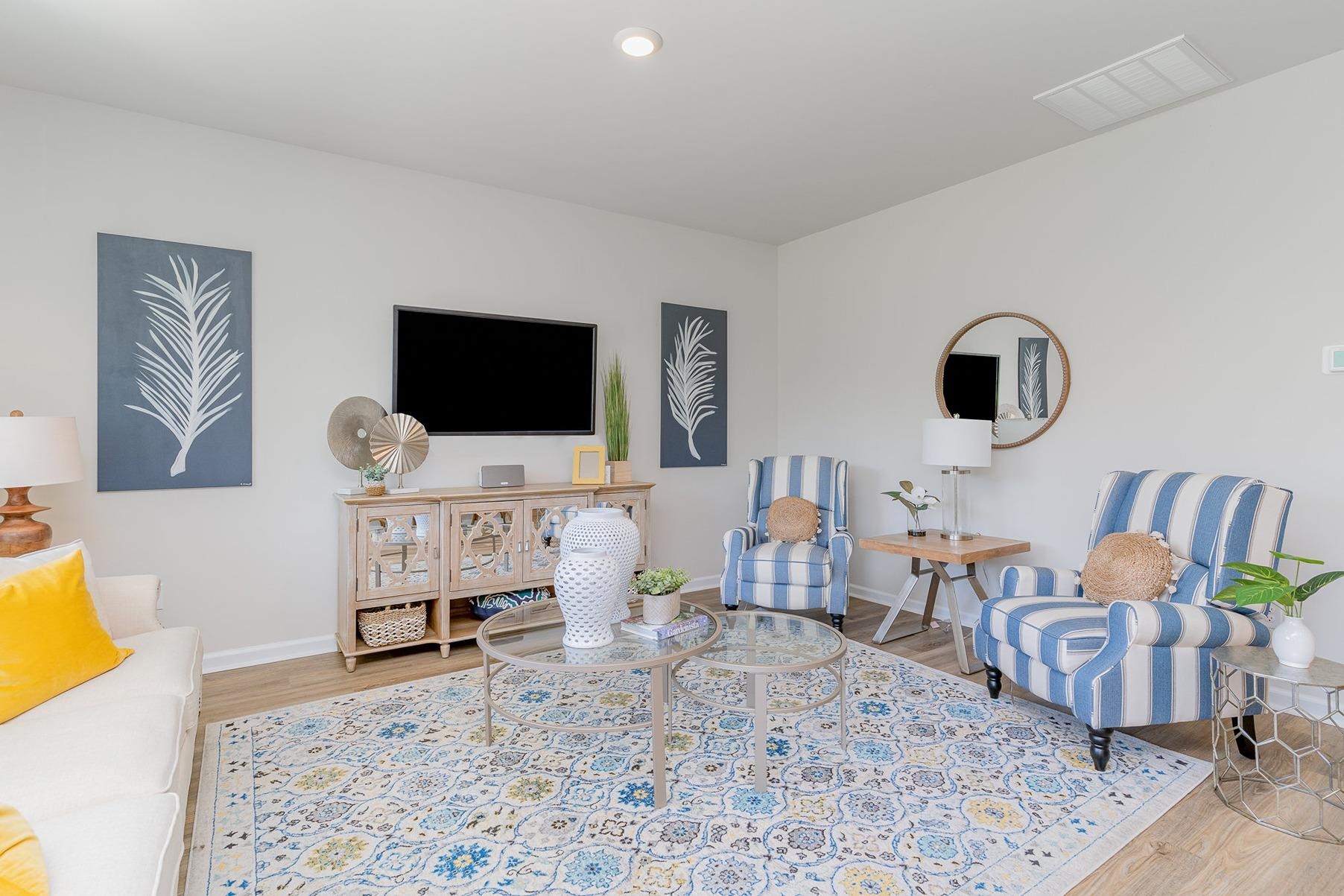 This thoughtfully designed one level home is one of our most popular floor plans! With an open concept living room, dining room and kitchen, this home is bright, spacious, and designed for entertaining guest or comfortably interacting with family. The kitchen features granite countertops, 36" cabinets, a spacious pantry, stainless steel appliances including a gas range, and island with breakfast bar! Your primary suite awaits off the back of the home with a spacious walk-in closet and master bath with double sinks, a linen closet and 5' shower. Two secondary bedrooms are at the front of the home providing separation from the primary suite. Enjoy the coastal air from the back porch as you wind down in the evening! 2 car garage with garage door opener. This is America's Smart Home! Each of our homes comes with an industry leading smart home technology package that will allow you to control the thermostat, front door light and lock, and video doorbell from your smartphone. *Photos are of a similar Aria home. Pictures, photographs, colors, features, and sizes are for illustration purposes only and will vary from the homes as built. Home and community information, including pricing, included features, terms, availability and amenities, are subject to change and prior sale at any time without notice or obligation. Square footage dimensions are approximate. Equal housing opportunity builder.