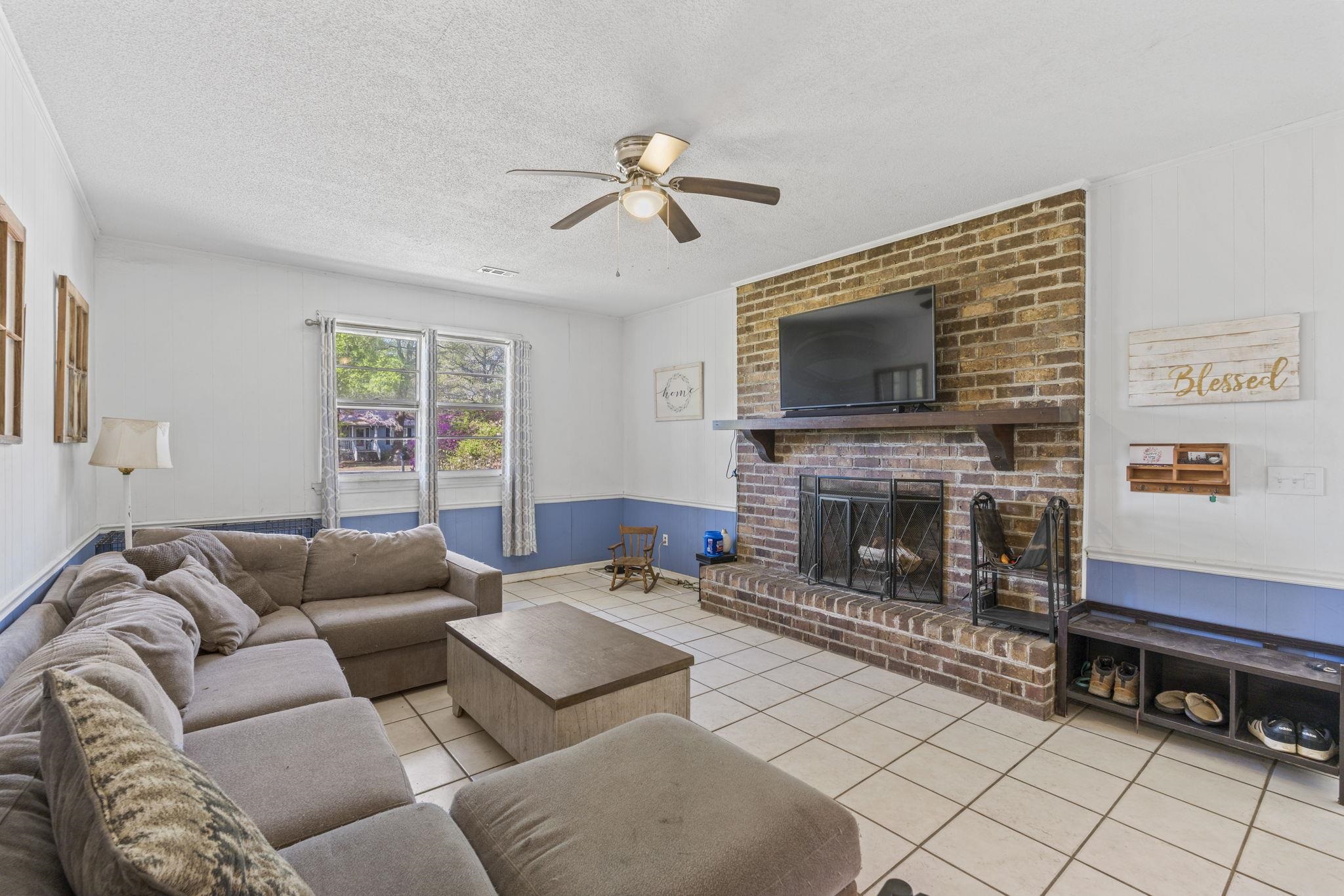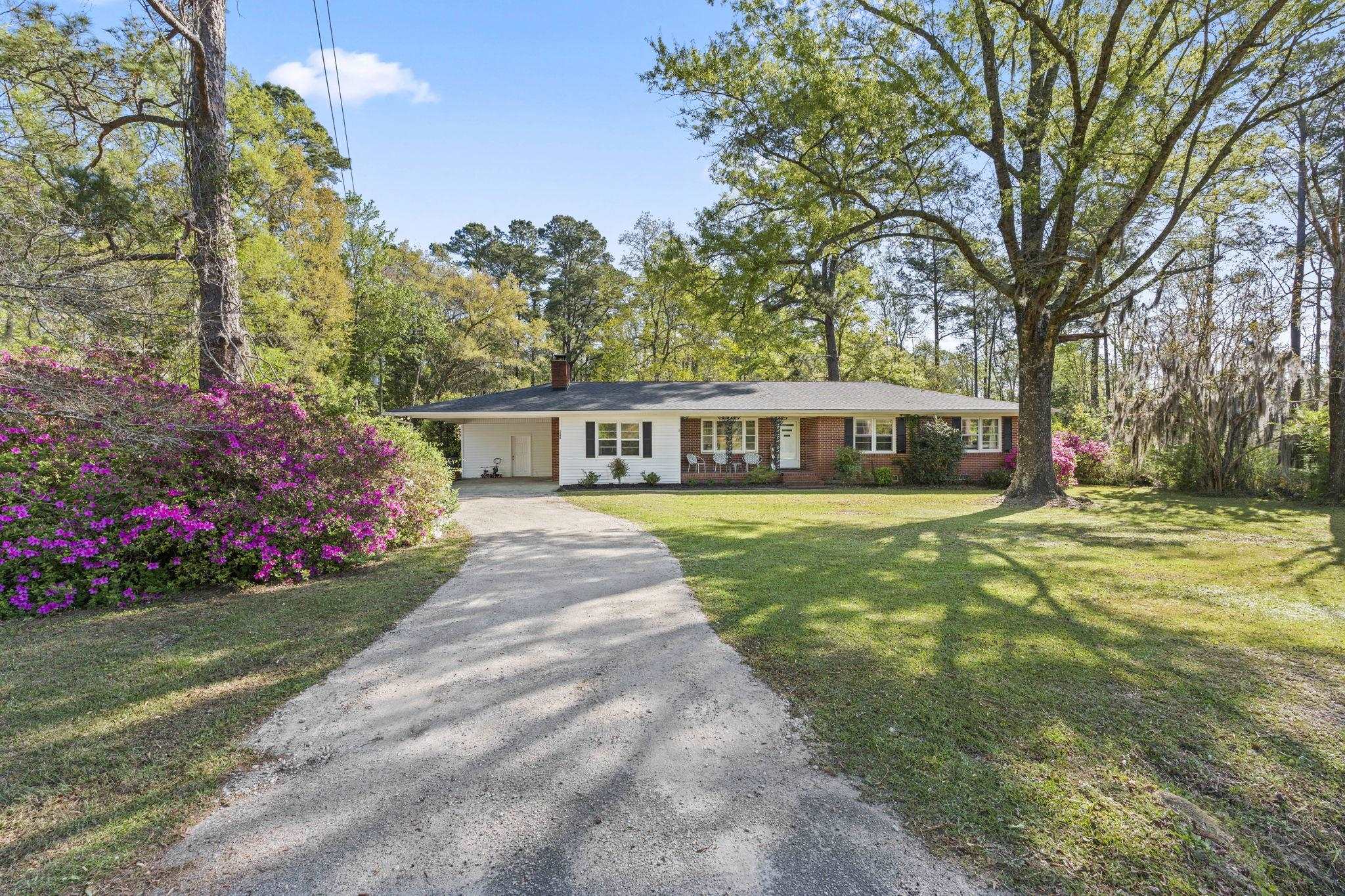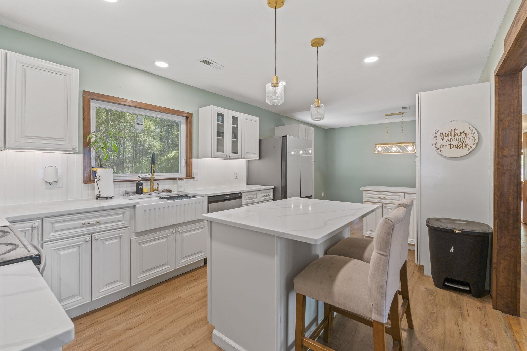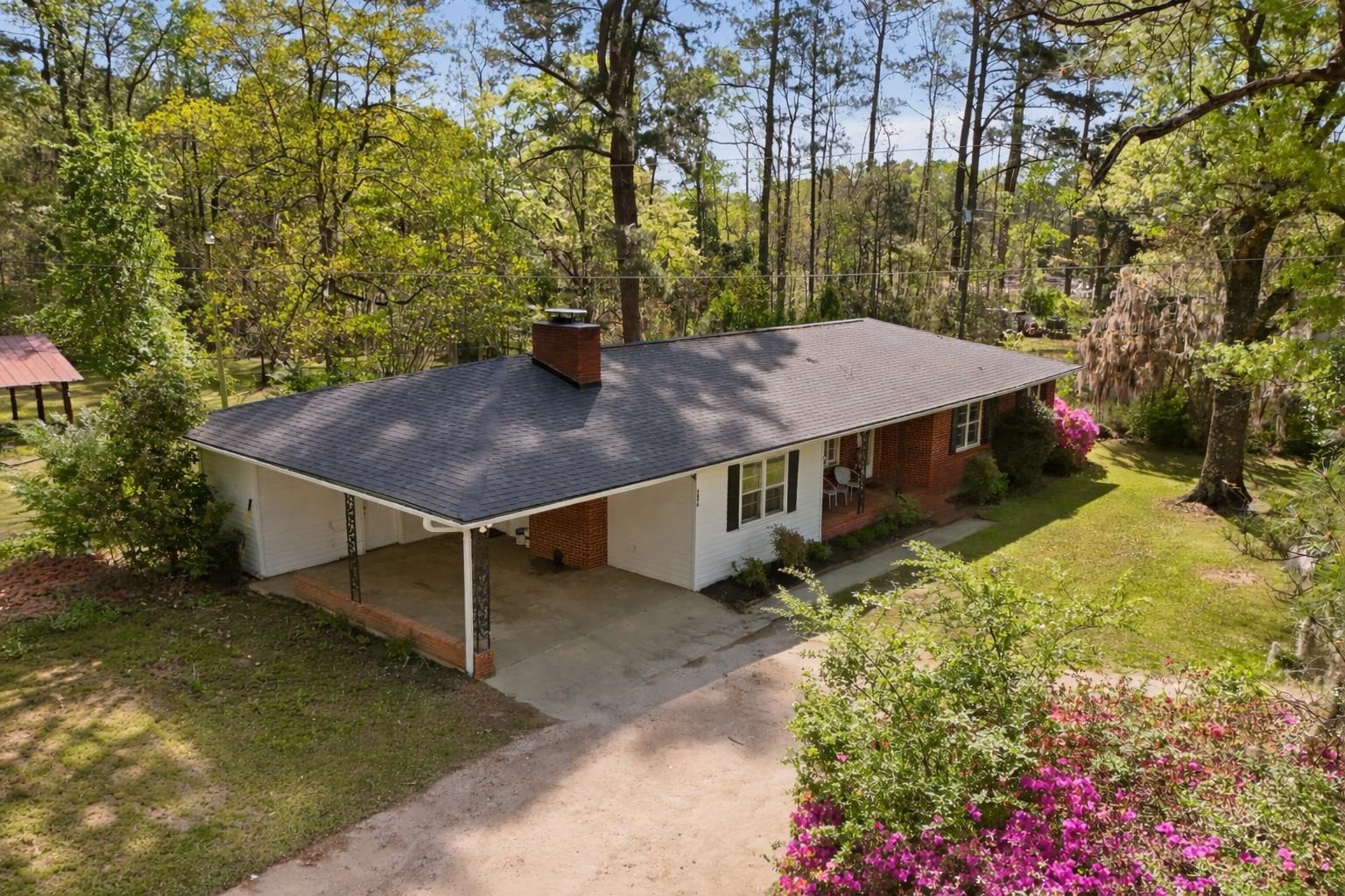 Discover the perfect blend of space and comfort with this charming country home set on over 1.5 acres along a quiet, paved road with no HOA and no restrictions. Inside, you will find a beautifully remodeled kitchen designed to impress, featuring quartz countertops, white cabinetry, a porcelain farmhouse sink, stainless steel appliances, a stylish vent hood, and a spacious island with bar seating, which is perfect for entertaining or everyday living. Natural wood flooring flows throughout the living room and bedrooms, adding warmth and character. A large family room provides additional living space, complete with ceramic tile flooring and a cozy wood-burning fireplace. Outside, this mostly brick home offers an attached carport plus an additional large, covered carport in the backyard making it ideal for extra vehicles, boats, or equipment. A workshop/shed off the primary carport adds valuable storage or workspace. Enjoy the fully fenced, expansive backyard, and take comfort in knowing the roof has been recently replaced along with new gutters. If you are looking for privacy and room to spread out without restrictions, this property checks all the boxes.