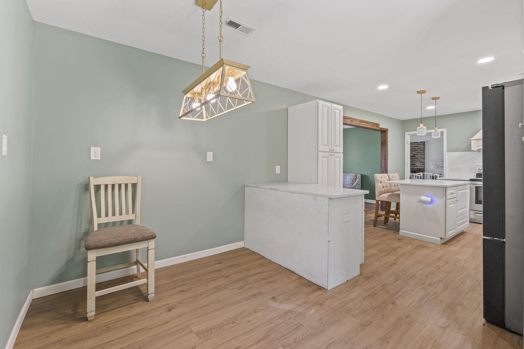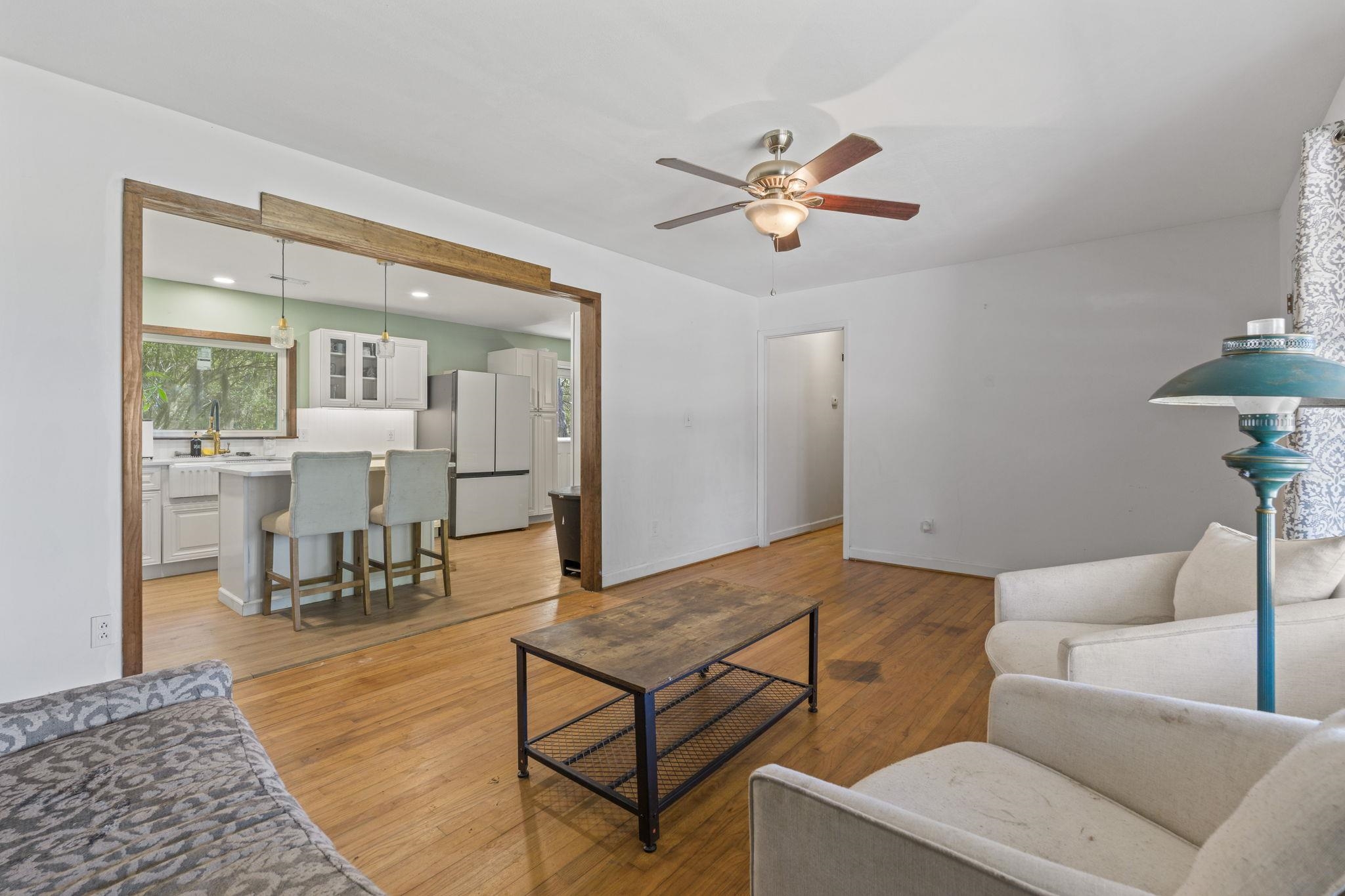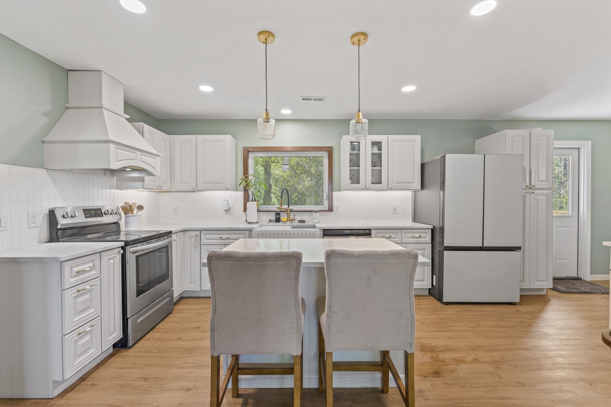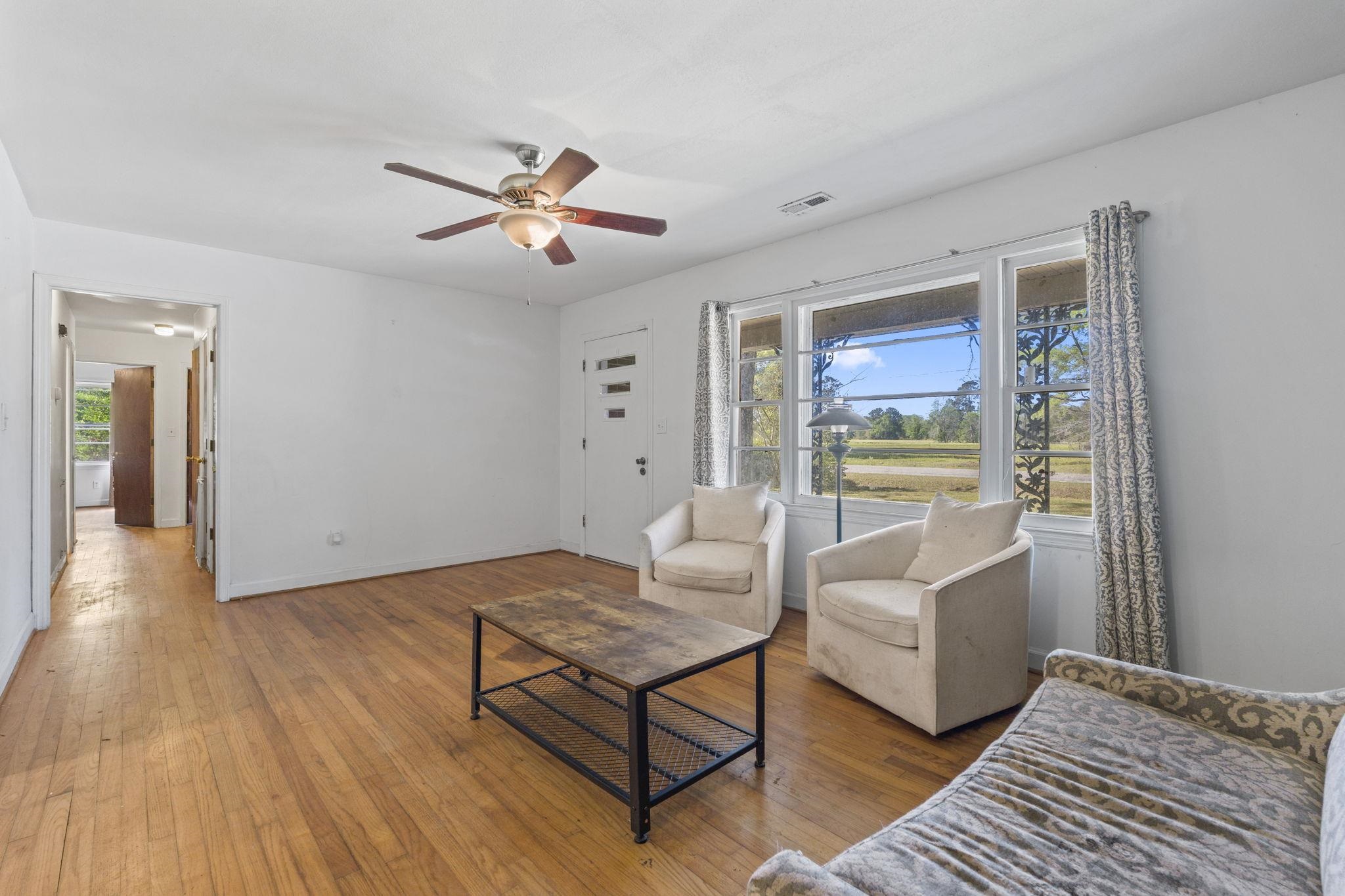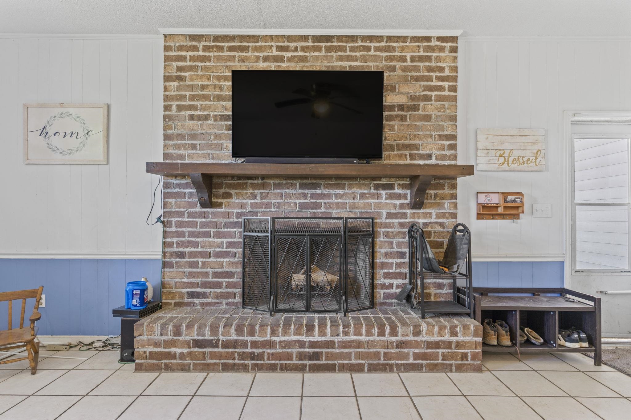 Discover the perfect blend of space and comfort with this charming country home set on over 1.5 acres along a quiet, paved road with no HOA and no restrictions. Inside, you will find a beautifully remodeled kitchen designed to impress, featuring quartz countertops, white cabinetry, a porcelain farmhouse sink, stainless steel appliances, a stylish vent hood, and a spacious island with bar seating, which is perfect for entertaining or everyday living. Natural wood flooring flows throughout the living room and bedrooms, adding warmth and character. A large family room provides additional living space, complete with ceramic tile flooring and a cozy wood-burning fireplace. Outside, this mostly brick home offers an attached carport plus an additional large, covered carport in the backyard making it ideal for extra vehicles, boats, or equipment. A workshop/shed off the primary carport adds valuable storage or workspace. Enjoy the fully fenced, expansive backyard, and take comfort in knowing the roof has been recently replaced along with new gutters. If you are looking for privacy and room to spread out without restrictions, this property checks all the boxes.