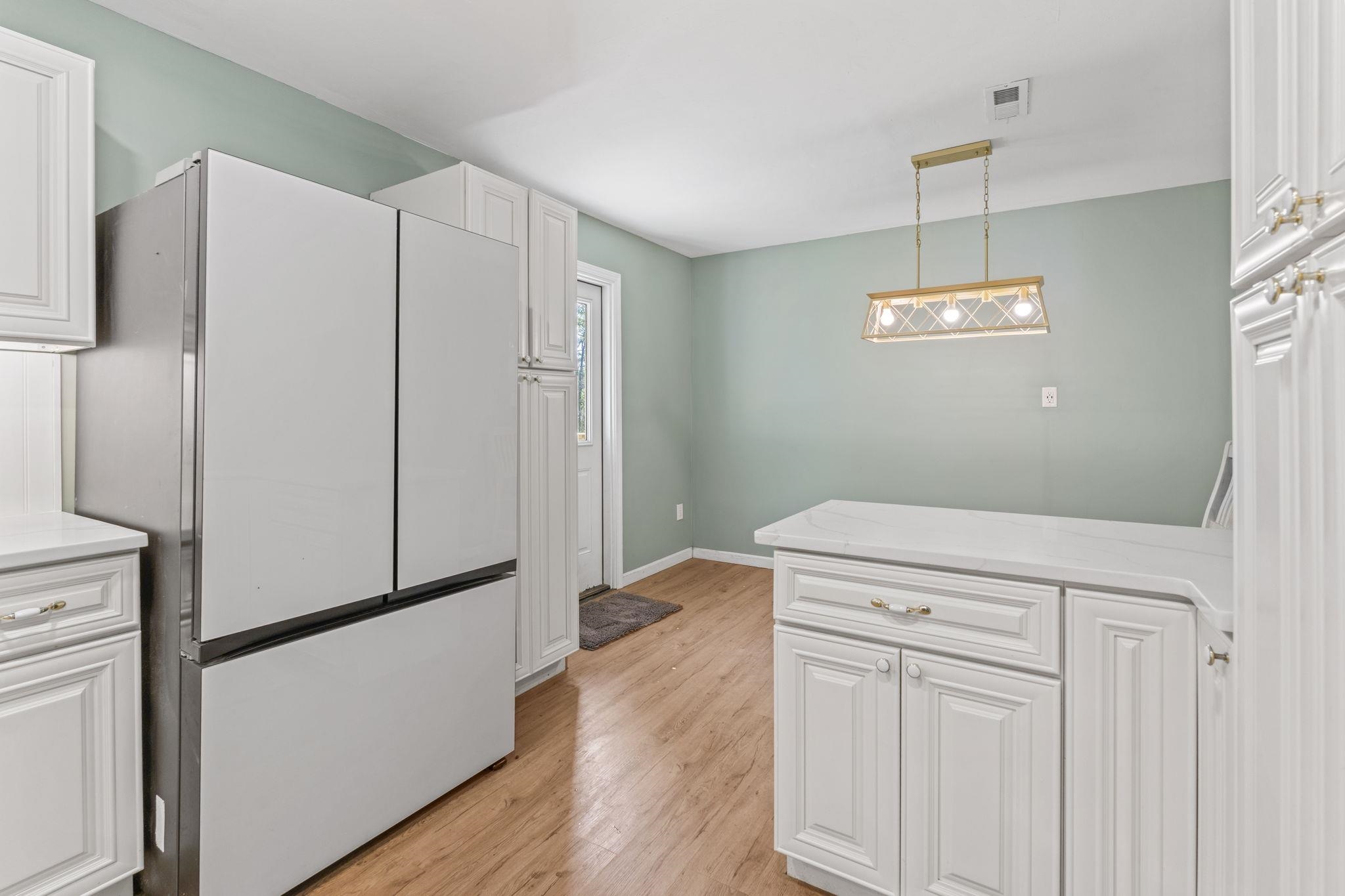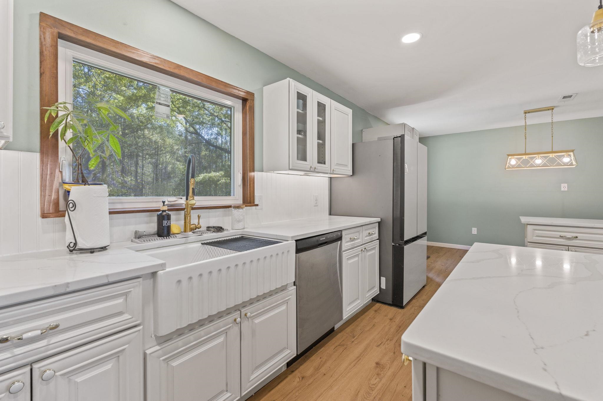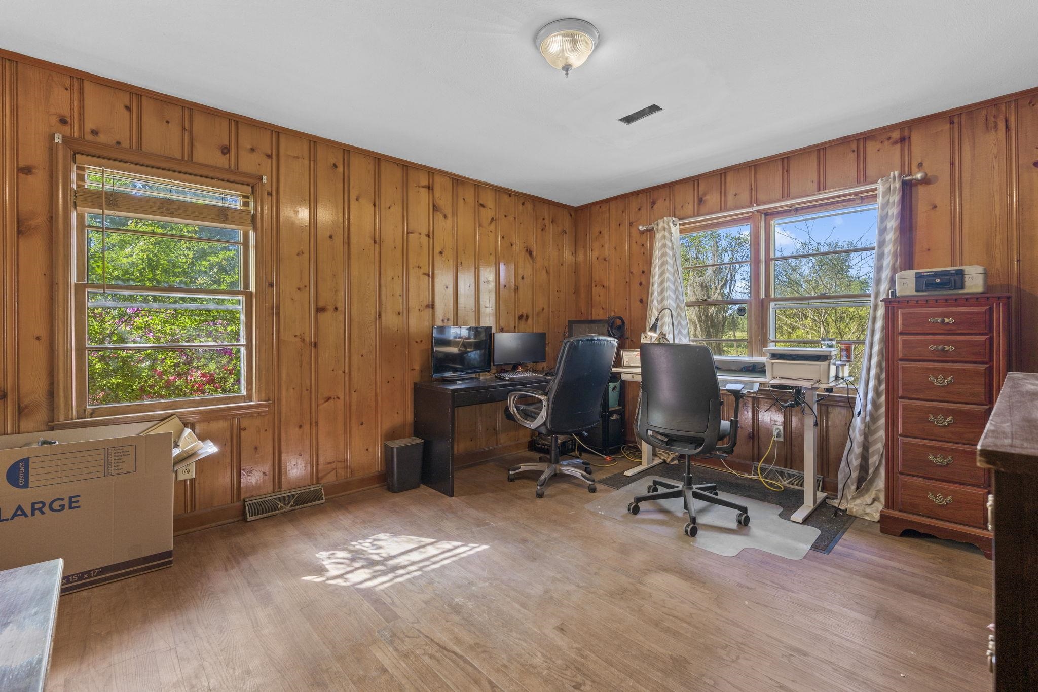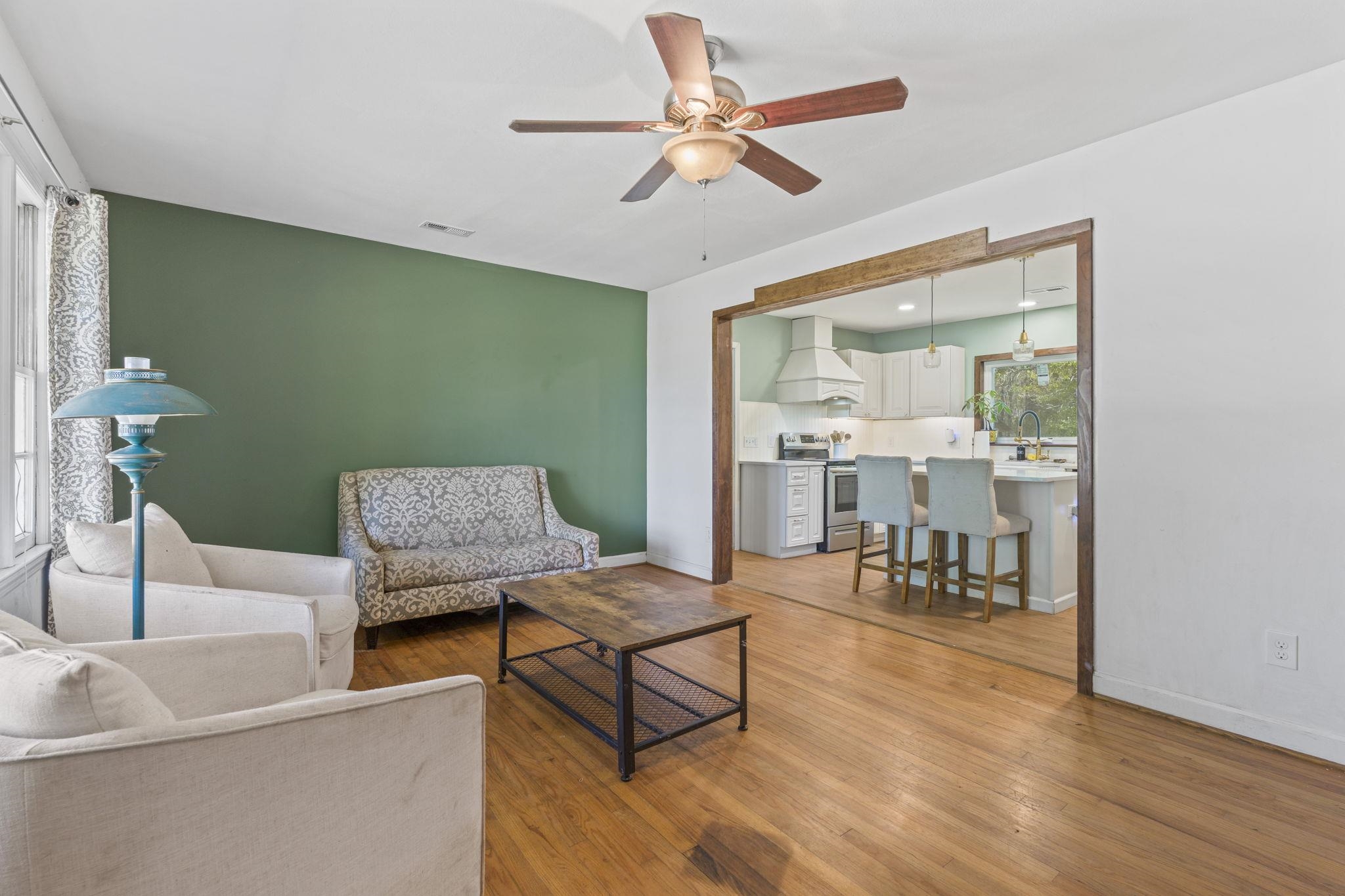 Discover the perfect blend of space and comfort with this charming country home set on over 1.5 acres along a quiet, paved road with no HOA and no restrictions. Inside, you will find a beautifully remodeled kitchen designed to impress, featuring quartz countertops, white cabinetry, a porcelain farmhouse sink, stainless steel appliances, a stylish vent hood, and a spacious island with bar seating, which is perfect for entertaining or everyday living. Natural wood flooring flows throughout the living room and bedrooms, adding warmth and character. A large family room provides additional living space, complete with ceramic tile flooring and a cozy wood-burning fireplace. Outside, this mostly brick home offers an attached carport plus an additional large, covered carport in the backyard making it ideal for extra vehicles, boats, or equipment. A workshop/shed off the primary carport adds valuable storage or workspace. Enjoy the fully fenced, expansive backyard, and take comfort in knowing the roof has been recently replaced along with new gutters. If you are looking for privacy and room to spread out without restrictions, this property checks all the boxes.