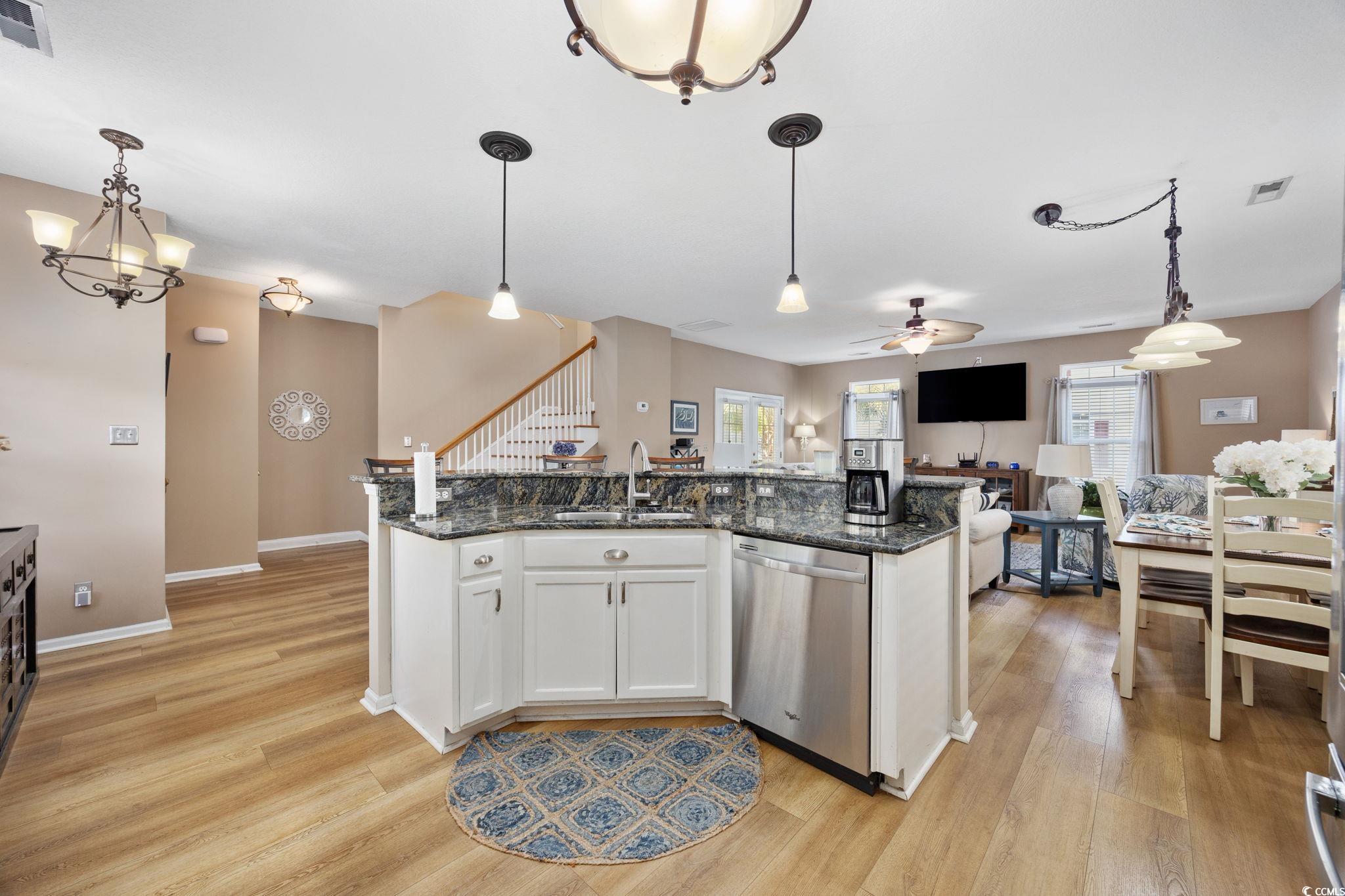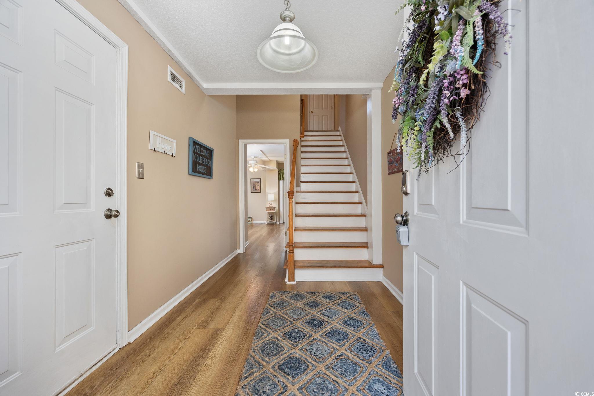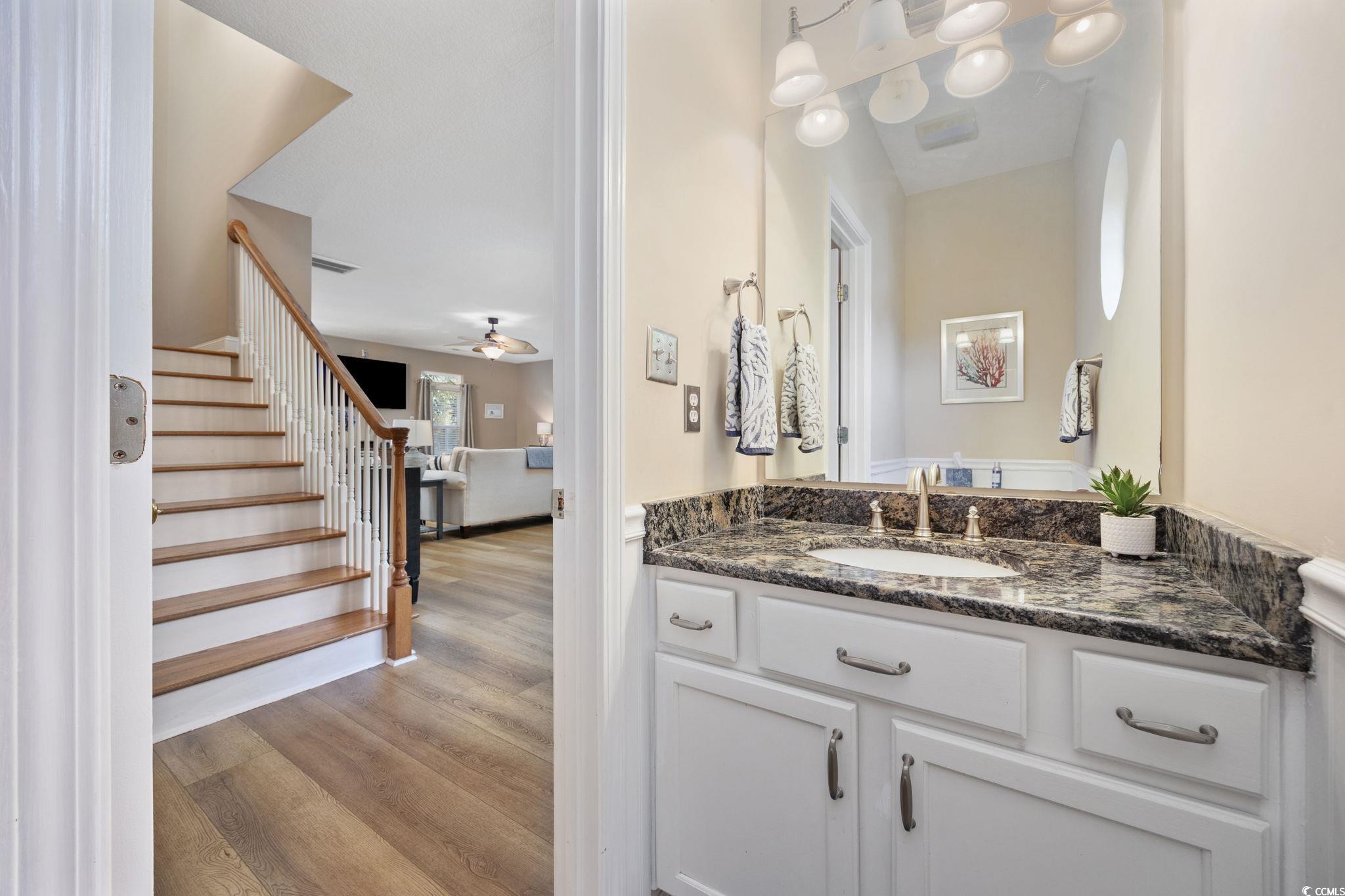 Desirable, East of 17, Surfside Beach community with pool, Just 5 Blocks from the Ocean! Welcome home to this beautifully appointed 4 bedroom, 3.5 bath coastal retreat, perfectly located in one of Surfside Beach’s most desirable neighborhoods, only five blocks from the Atlantic Ocean! The open-concept main level features a spacious living area, a welcoming dining space, and direct access to the charming front porch. The upgraded kitchen impresses with granite countertops, a subway tile backsplash, stainless steel appliances, and a large dining bar... perfect for entertaining. A convenient half bath completes the main floor. Upstairs, you’ll find three bedrooms and two full baths, including a generous primary bedroom with an ensuite bath. The ground level offers a versatile in-law suite with a full bath, plenty of space for bedroom and sitting area with private access to the back patio. This by design is ideal for guests or extended family. The entry foyer connects to both the interior, entrance stairway and to the oversized two-car garage, which includes a small workshop area. The garage refrigerator and all main kitchen appliances, plus washer/ dryer convey with the home. New roof 2023. Enjoy outdoor living with the community pool located just two doors down, or take a short walk or golf cart ride to the beach to experience the best of coastal living! This home checks all the boxes... perfect as a primary residence or a second home by the sea. Home is occupied... please do not disturb. Show by appointment only. Some furniture may be negotiable.