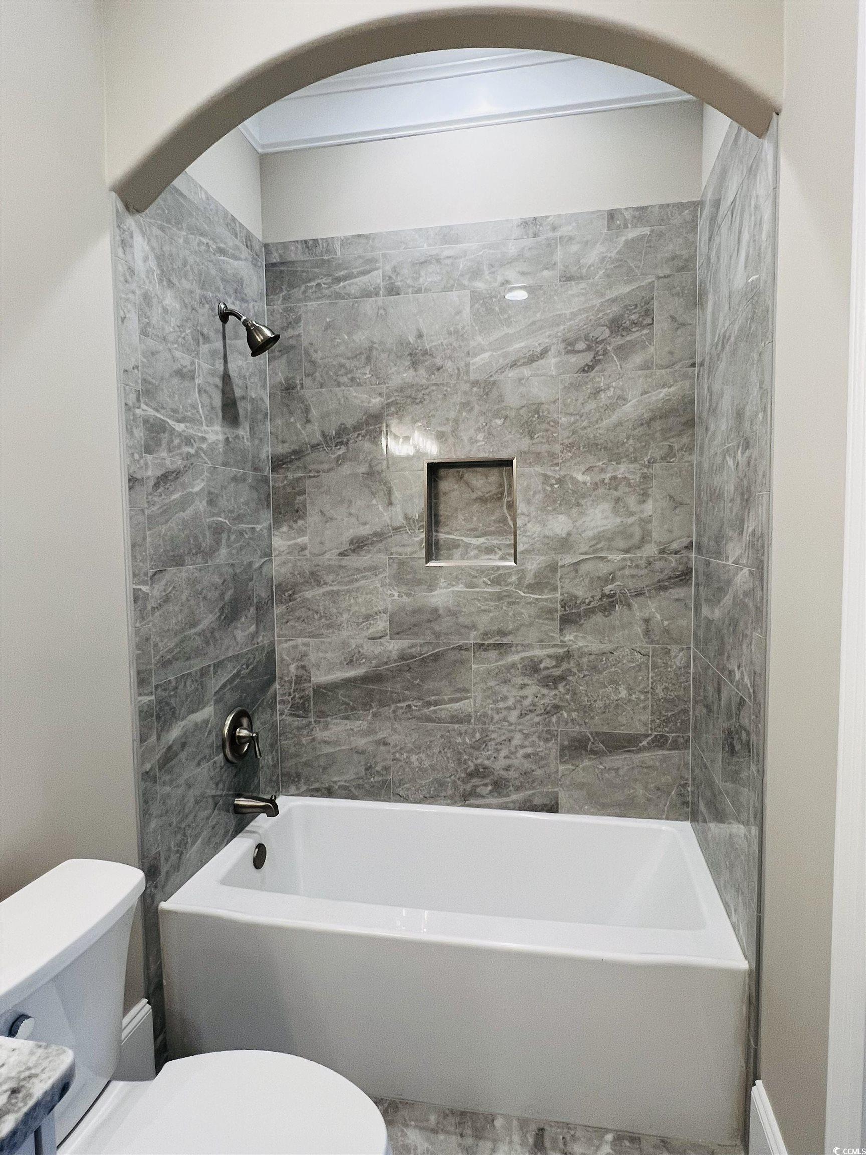 Exceptional new construction on a quiet cul-de-sac lot in Waterbridge, just a short walk to the community’s world-class amenity center. This custom-designed home offers 2,755 heated square feet and over 4,200 square feet under roof, including a nearly 900 square feet full two-car garage plus a golf cart bay. With 12 feet high ceilings and over 32 feet depth (44 deep at the golf cart bay), this enormous garage can fit even extended full size SUVs with ease. Additionally, the garage floor is finished with a beautiful and durable polyaspartic chip coating. Inside, the home features 10 feet high ceilings and a layout built for function and luxury. All bedrooms are located on the first floor as this entire home is single-level - no need to worry about climbing any stairs. The Master Bedroom and Guest Rooms are separated for privacy. The Master Bedroom is gargantuan and includes a spacious Master Bath with custom cabinet vanities and a large walk-in closet. Both guest bedrooms include en suite bathrooms with full tile surrounds. Finally, this home also includes a commodious Carolina Room with six windows for your viewing pleasure. A few other interior details of note: 24x24 inch porcelain tile throughout main areas and Master Suite, custom Kitchen/Laundry Room/Bathroom cabinets with smooth finish and soft-close hardware, coffered ceilings and tray ceilings abound virtually every space, rounded bullnose corners compliment large baseboard, crown, and two-piece crown molding, all doors are 8 feet high and solid core. Mechanical features include - fully upgraded GE Profile appliances (Refrigerator, Microwave/Oven Combo, Dishwasher), two variable speed HVAC systems (3.0 Ton & 2.5 Ton) - one for the Master + Guest Rooms and one for the main living space, and an 9 gallon per minute Rinnai tankless water heater so you never run out of hot water. As for the exterior, this house is one of the very rare stucco homes in Waterbridge - the strongest, most durable, and prettiest exterior wall finish available. The stucco is complimented with stone accents on the front, a paver-lined driveway & rear patio, a pavered entry-way, and a fully pavered front porch. The roof includes Miami-Dade approved shingles, metal roof sections, a fully metal Tower Roof section, and hardiplank siding accent for both roof gables. The professionally landscaped yard features over 12 separate uplights beautifying the home in the evening, six separate irrigation zones with rain sensors for auto watering, hardy centipede sod, palm trees, crepe myrtles, a beautiful caliper maple in the front yard, and seventy evergreen shrubs. As a Waterbridge homeowner, enjoy unmatched amenities: a resort-style pool, clubhouse, fitness center, tennis courts, fire pit, and walking trails, all just minutes from the beach, golf, schools, shopping, and dining. This one is a must-see.