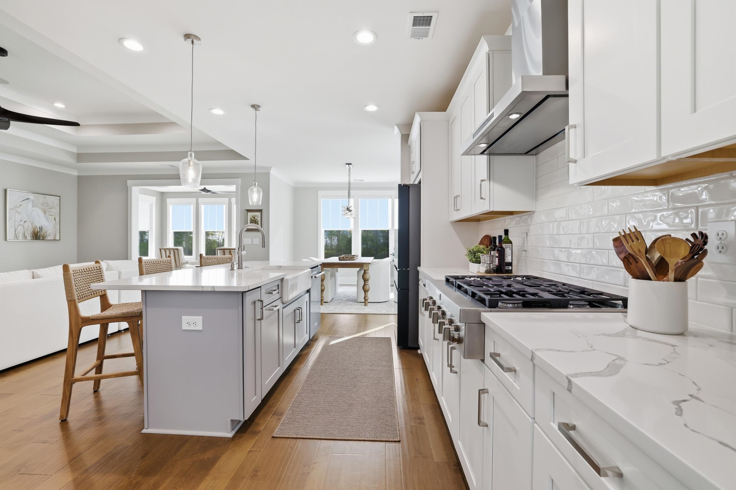Experience Lowcountry living in this beautifully appointed four-bedroom, two- bath home designed for comfort and effortless entertaining. The open-concept layout showcases engineered hardwood flooring, refined finishes, and a gourmet kitchen with stainless steel appliances, quartz countertops, and a spacious island that flows seamlessly into the great room filled with natural light. The main-level primary suite offers a new designed layout with a spa-inspired bath and generous walk-in closet, while the upstairs bedroom and bonus room provides flexible living space. Step outside to enjoy the expansive landscaped backyard, perfect for outdoor gatherings and embracing the coastal lifestyle. The extended paver patio with outdoor kitchen creates a serene setting with ample room to relax and entertain. Ideally located just minutes from local beaches, golf and waterfront dining at the Marshwalk. This home combines modern upgrades with charm and ease of Lowcountry living in South Carolina.