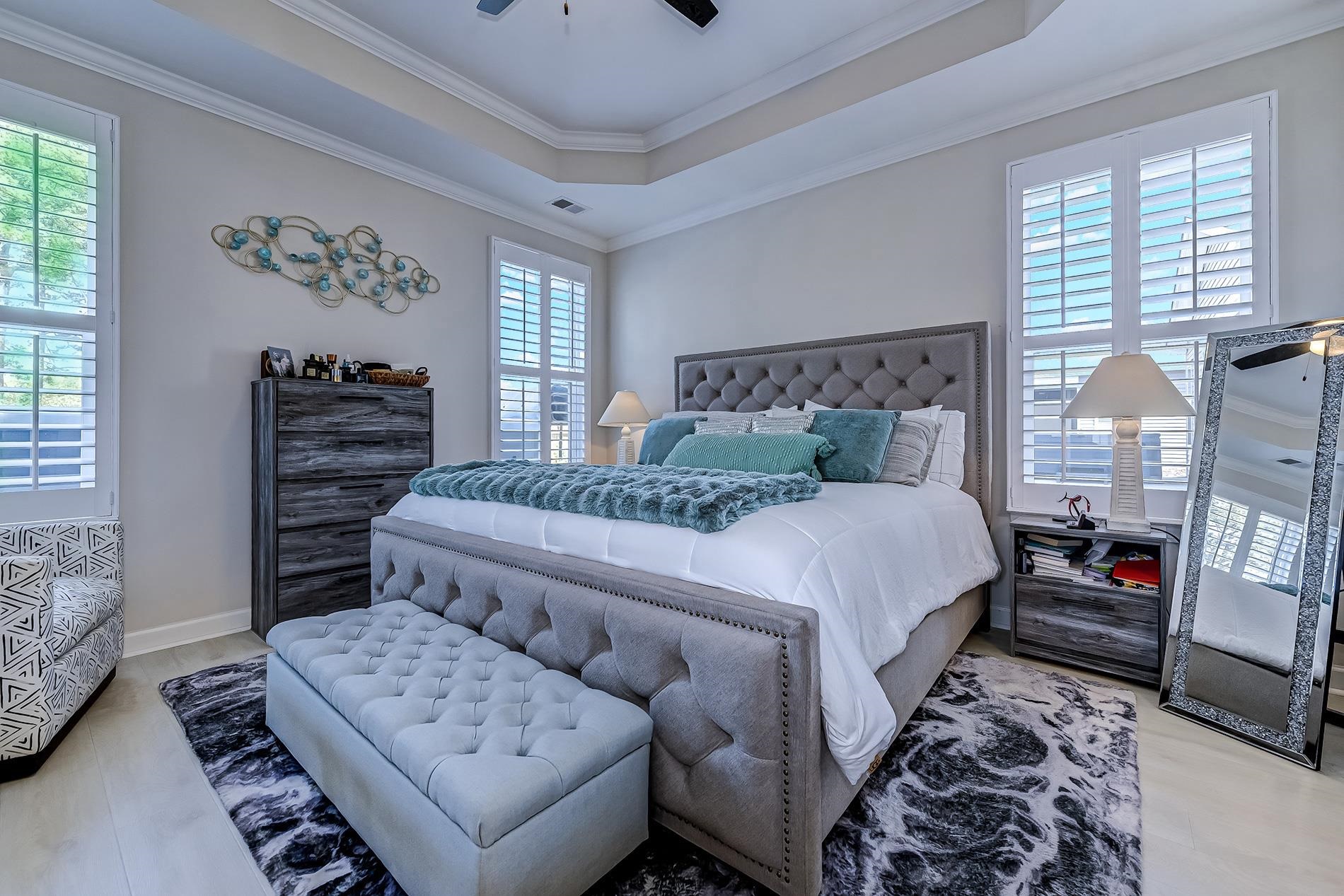 A must see home located in the highly rated community of Bridgewater in Little River, SC. It is a community convenient to dining, shopping, beaches and medical. This home offers many upgrades. The gourmet kitchen with double ovens, gas cook top and over sized quartz counter top island is a chefs delight. A kitchen where the guest will surely congregate. A large walk in pantry also add to the desire of the kitchen space. The large, stylish laundry room is a beautifully designed part of the home with space for washing, drying and folding. Included is an additional shop sink. The open concept living space is ideal for todays lifestyle living. The living room has a gas fireplace upgrade. The owners suite is found on the main level that includes a large bath and walk in closet Additionally, there is another bedroom and full bath on the first floor. Upstairs is a loft area for TV, or office space along with a third bedroom and full bath. Off of the living room, is a sunroom with heat and A/C from it's own mini-split for year around comfort and use. Off the sunroom is a large patio space with a 12' swim spa/hot tub combo. Perfect to swim against the jets or relax in the hot tub. Additional features include a Tesla Solar System with Tesla Battery back up for the house if you were to loose power. See the MLS Additional Features Data in the MLS for details on the Solar and the Swim Spa. As part of Portside II Village in Bridgewater your low HOA fee covers lawncare, termite treatments, house power wash once a year and mulch. Bridgewater offers an amenity center with many activities, a gym area, a large pool area, pickleball courts and paved paths for walking/running enjoyment. A true win for active owners.