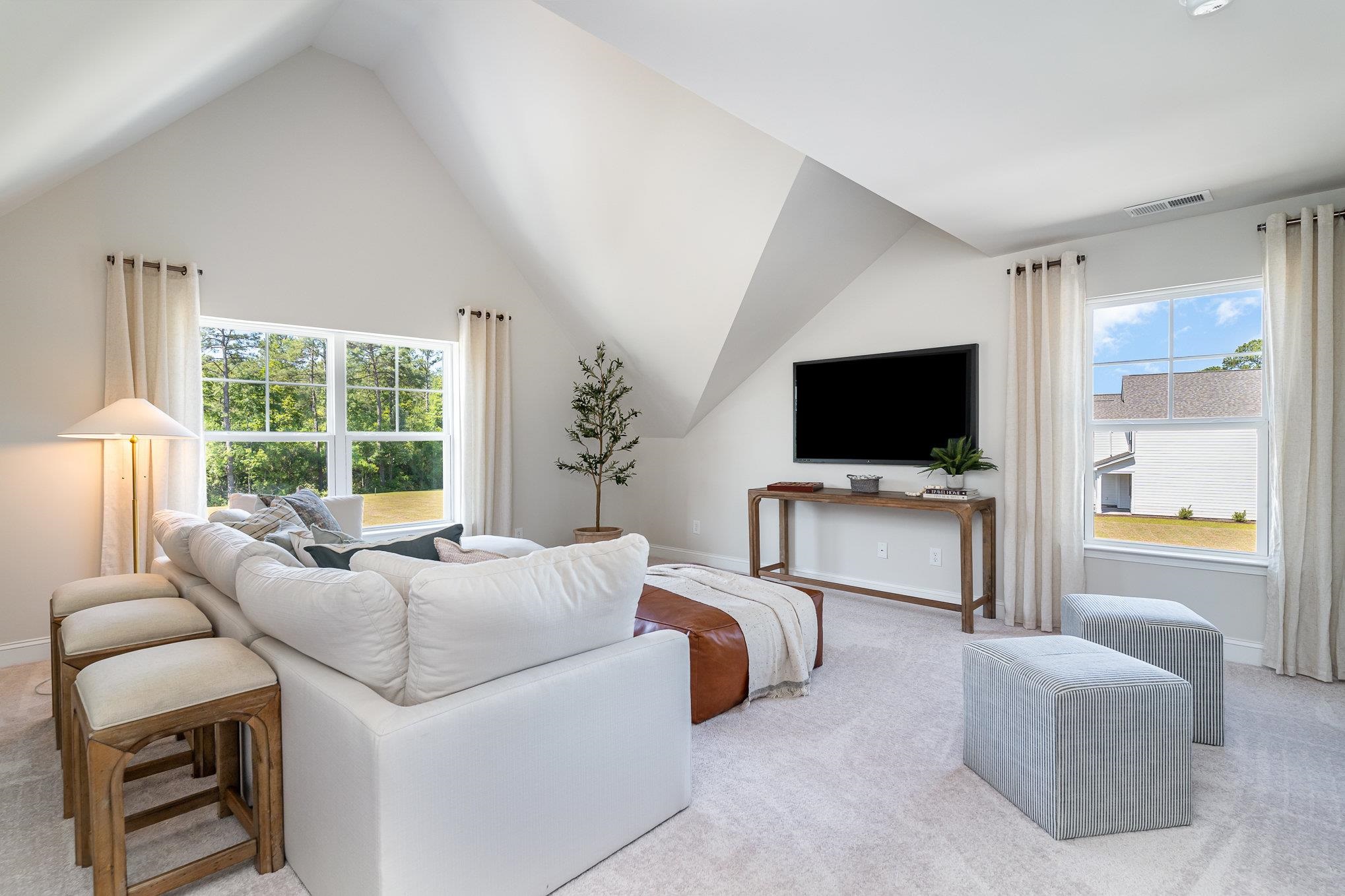 The Forrester is one of our most popular floor plans! When you first enter the home there is a gorgeous 2-story foyer with a catwalk overlooking the entry! You will pass by the elegant formal dining room with a tray ceiling as you head into your great room and oversized kitchen. The kitchen features one of our largest islands measuring in at nearly 10' long! It also boasts a ton of storage with 36" painted cabinets and quartz countertops. Lastly, on the first floor is a bedroom and full bath that is great for guests or can double as an office space. Head upstairs to your master suite with tray ceiling which features a sitting room, large walk-in closet and ensuite bathroom with a tile 5' shower, linen closet and spacious double vanity. An additional bedroom with a full bathroom are across the catwalk. One of the best features of this home is the huge bonus room with a closet that can be used as the 4th bedroom over the garage! Enjoy the coastal air from the screened back porch as you wind down in the evening! This is America's Smart Home! Each of our homes comes with an industry leading smart home technology package that will allow you to control the thermostat, front door light and lock, and video doorbell from your smartphone. *Photos are of a similar Forrester home. Home and community information, including pricing, included features, terms, availability and amenities, are subject to change and prior sale at any time without notice or obligation. Square footages are approximate. Pictures, photographs, colors, features, and sizes are for illustration purposes only and will vary from the homes as built. Equal housing opportunity builder.